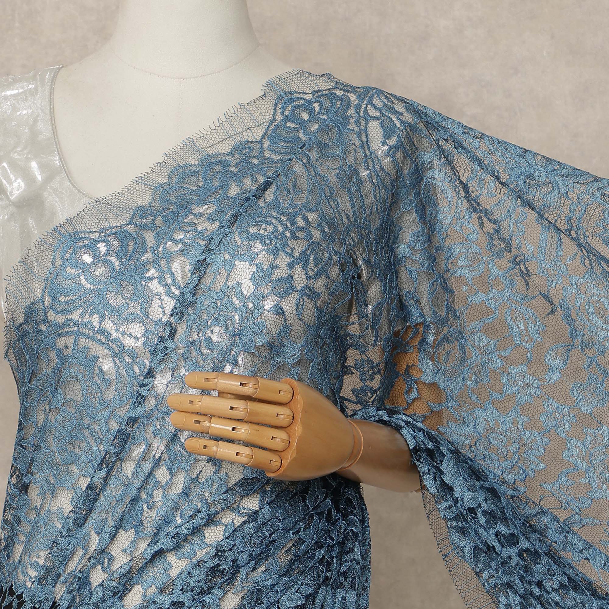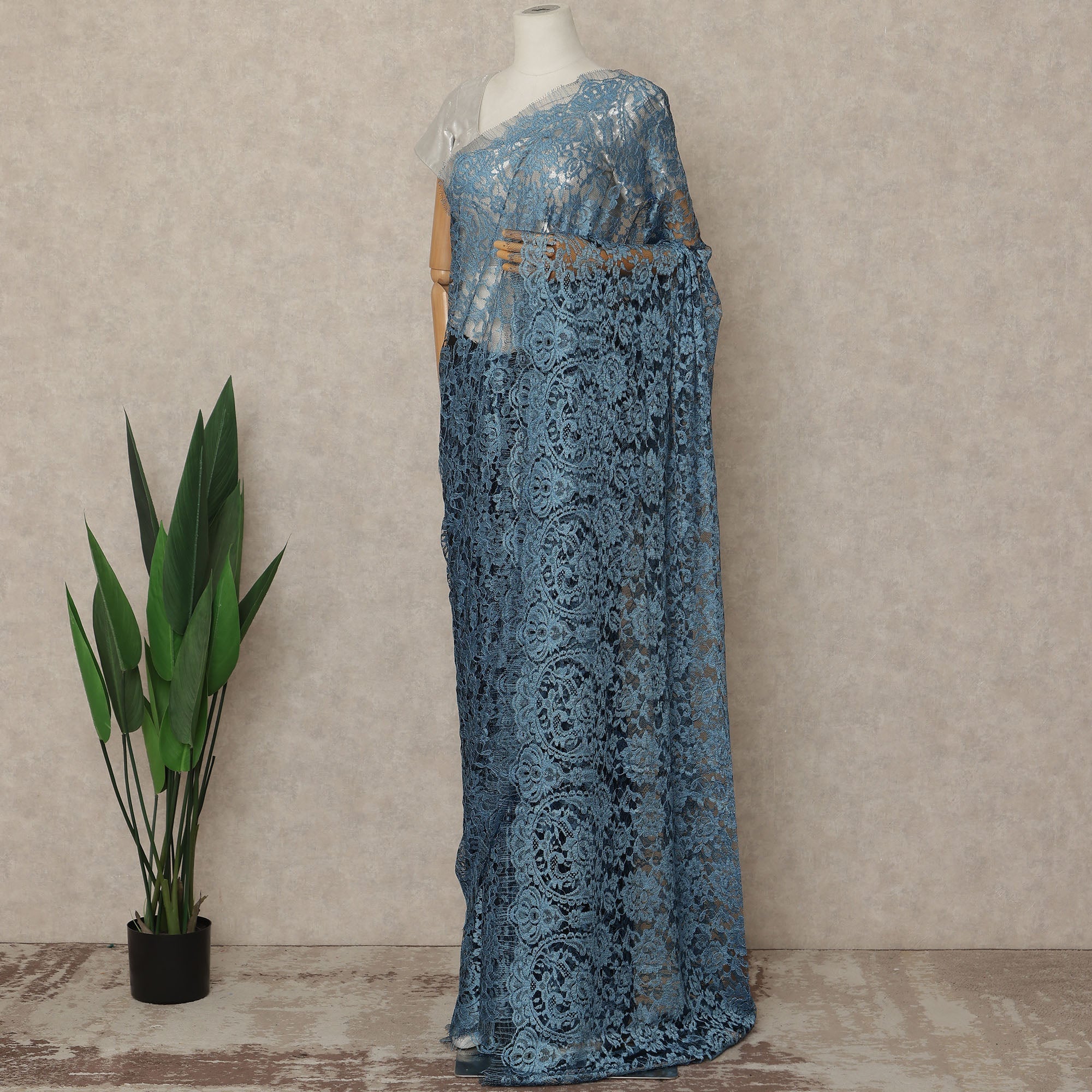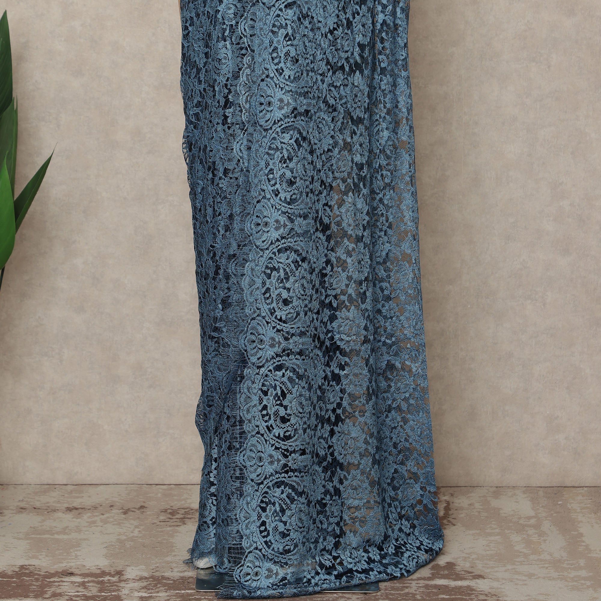 Dusty Blue Black Premium French 2 Tone Chantilly Saree Lace Fabric 5.5 Meters x 110 Cms Width Elegant Floral Net Material From France Unstitched Blouse Not Included-D28156
