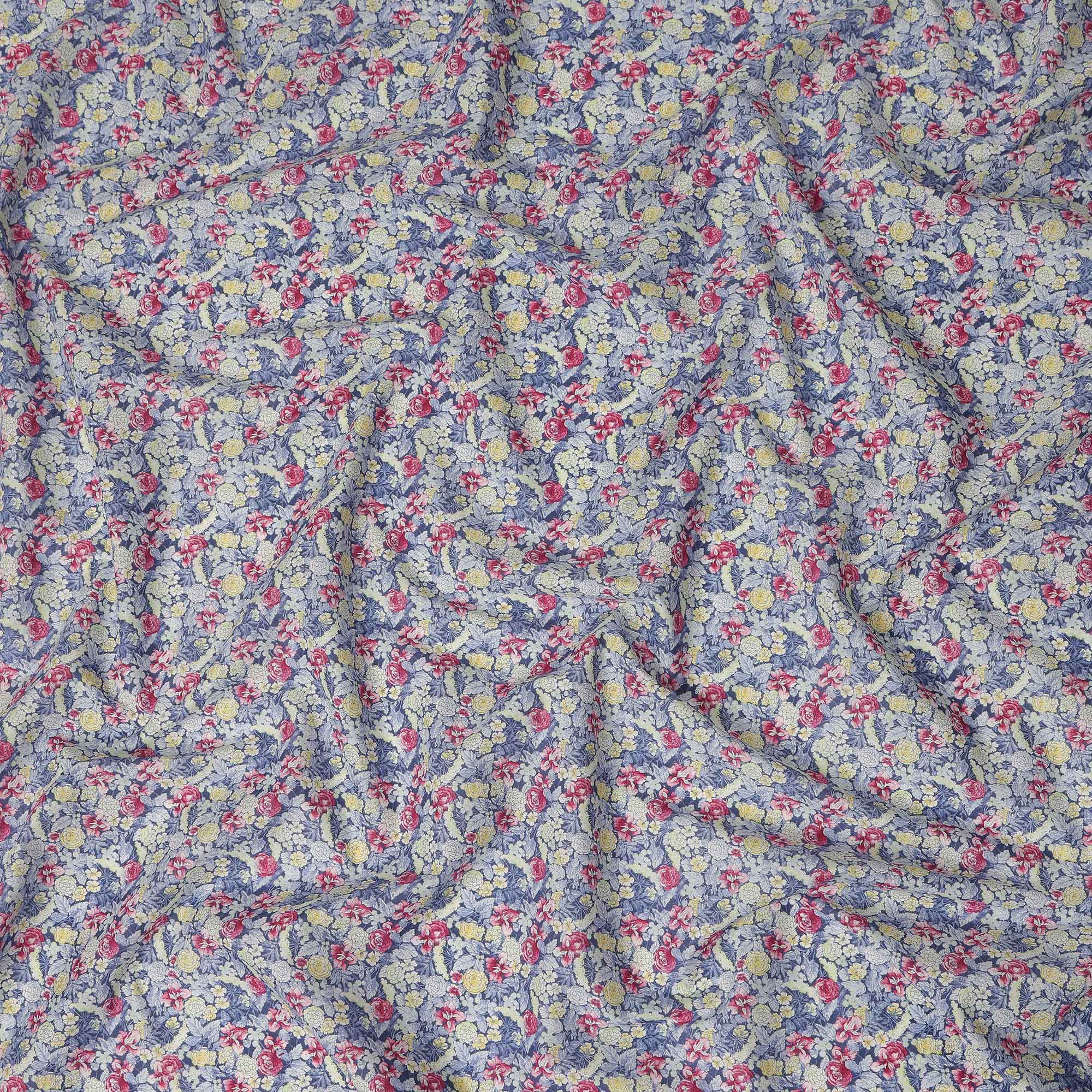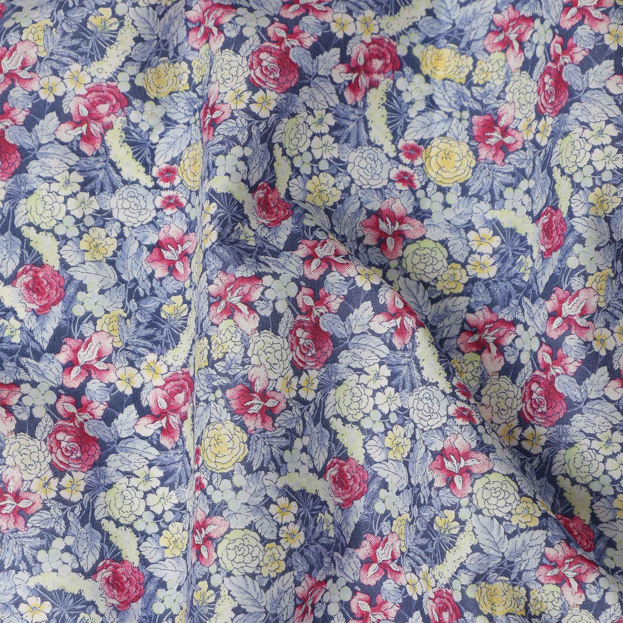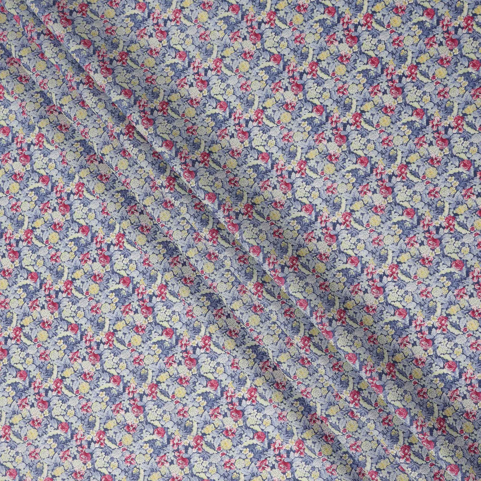 Dusty Blue Floral Printed Cotton Lawn Fabric Soft Lightweight Breathable Dressmaking Sewing Material 4.0 Meters Length 110 Cms Width India-D27622