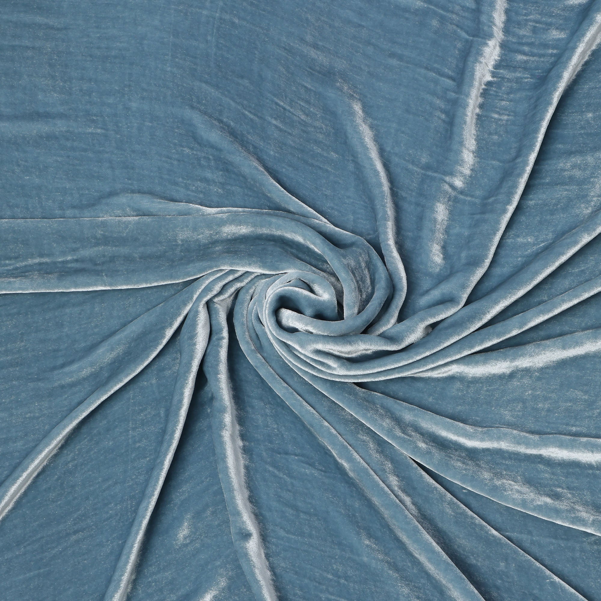 Dusty Blue Silk Blended Velvet Fabric, 140 Cms Width, South Korea-D24650
