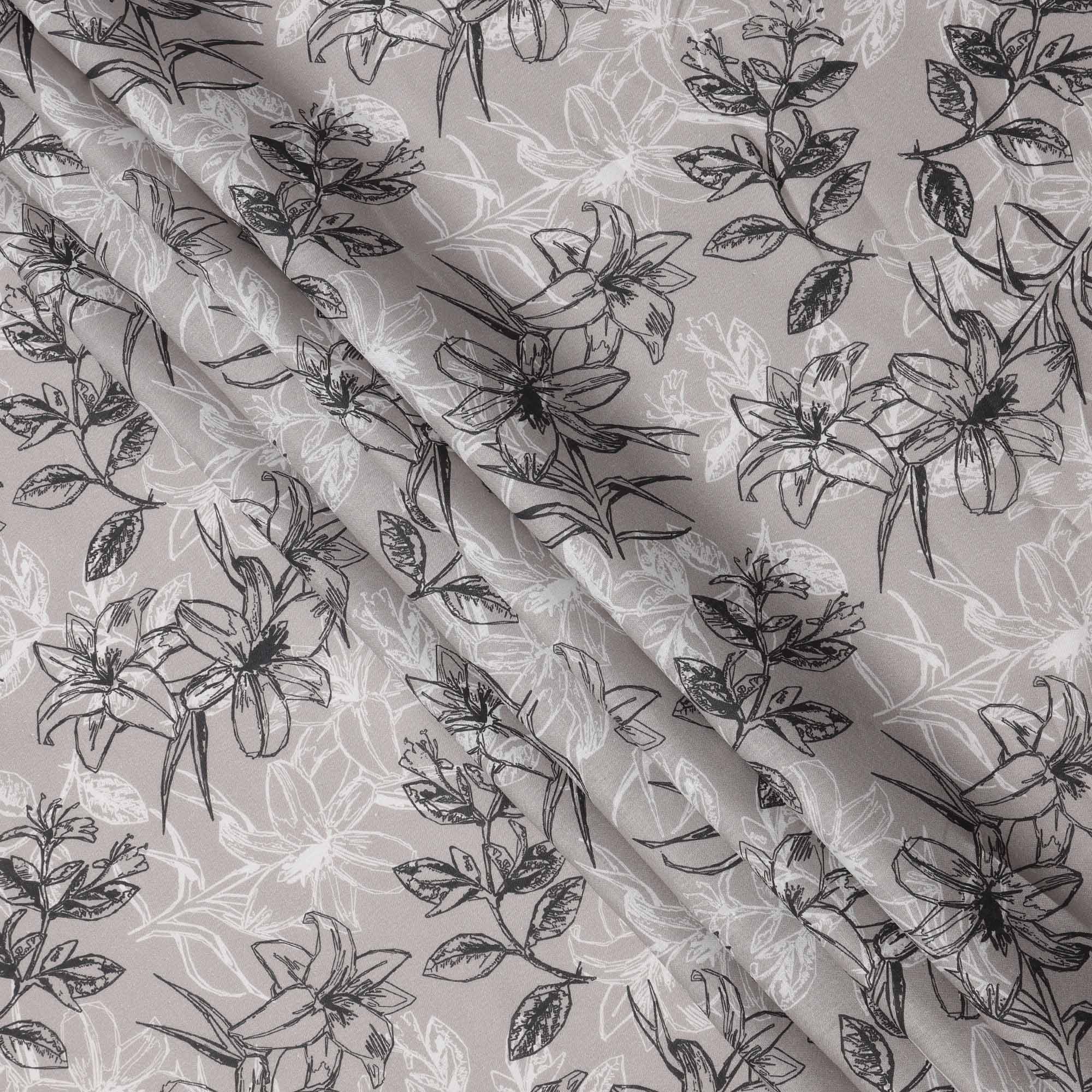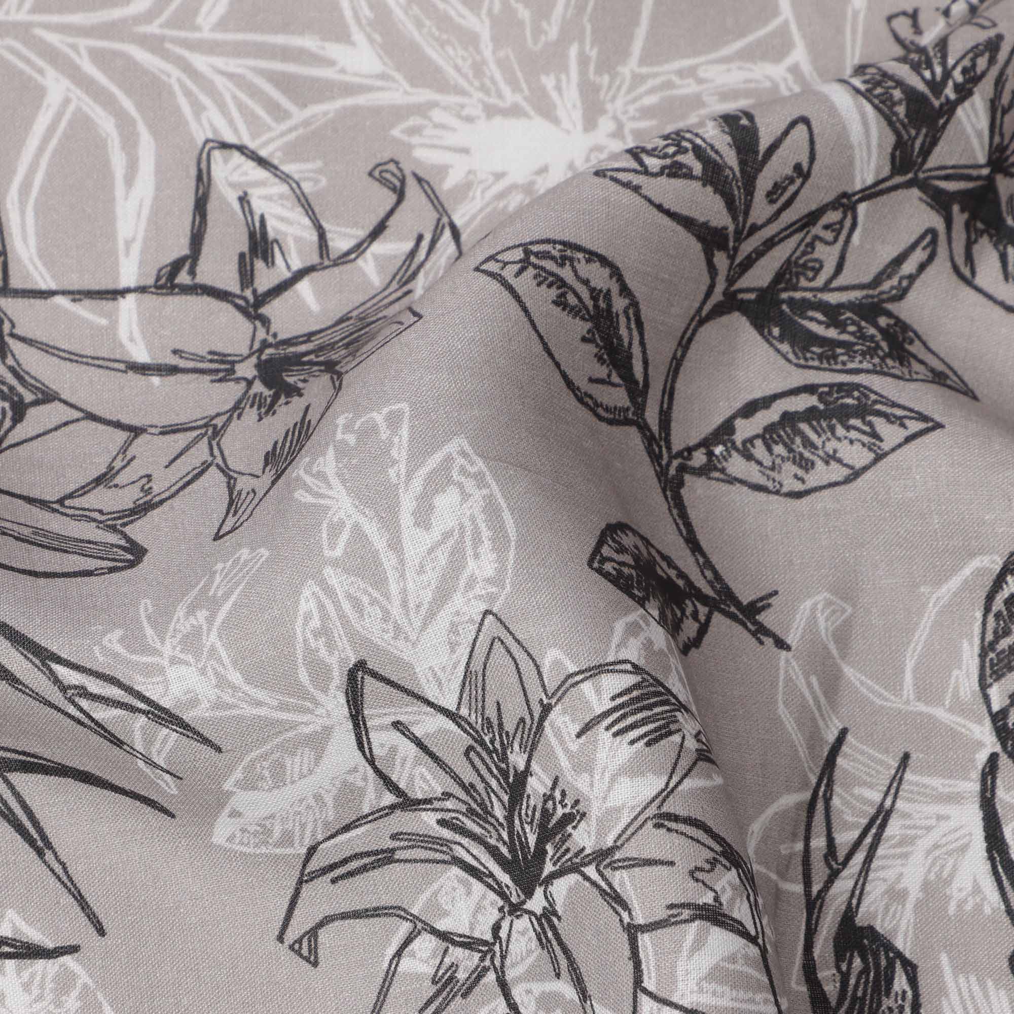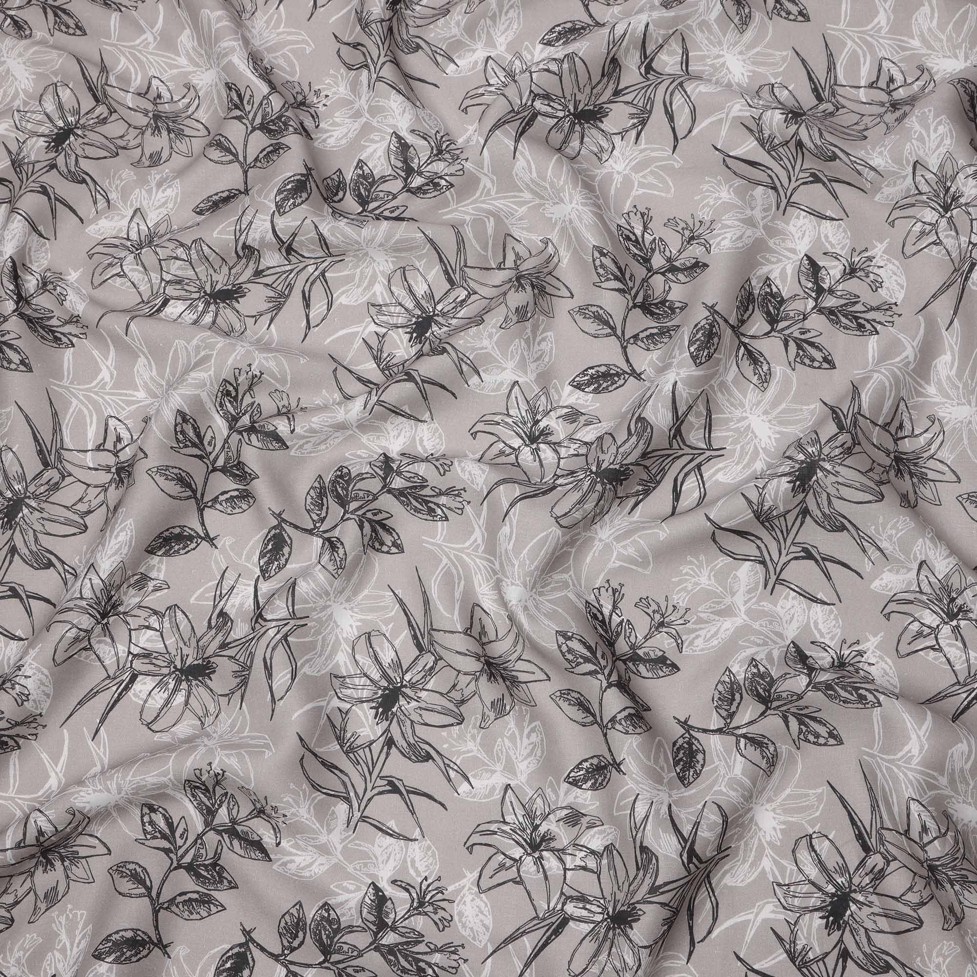 Dusty Grey Black White Floral Line Art Printed Linen Fabric, 140 Cms Width, Made in India-D23719