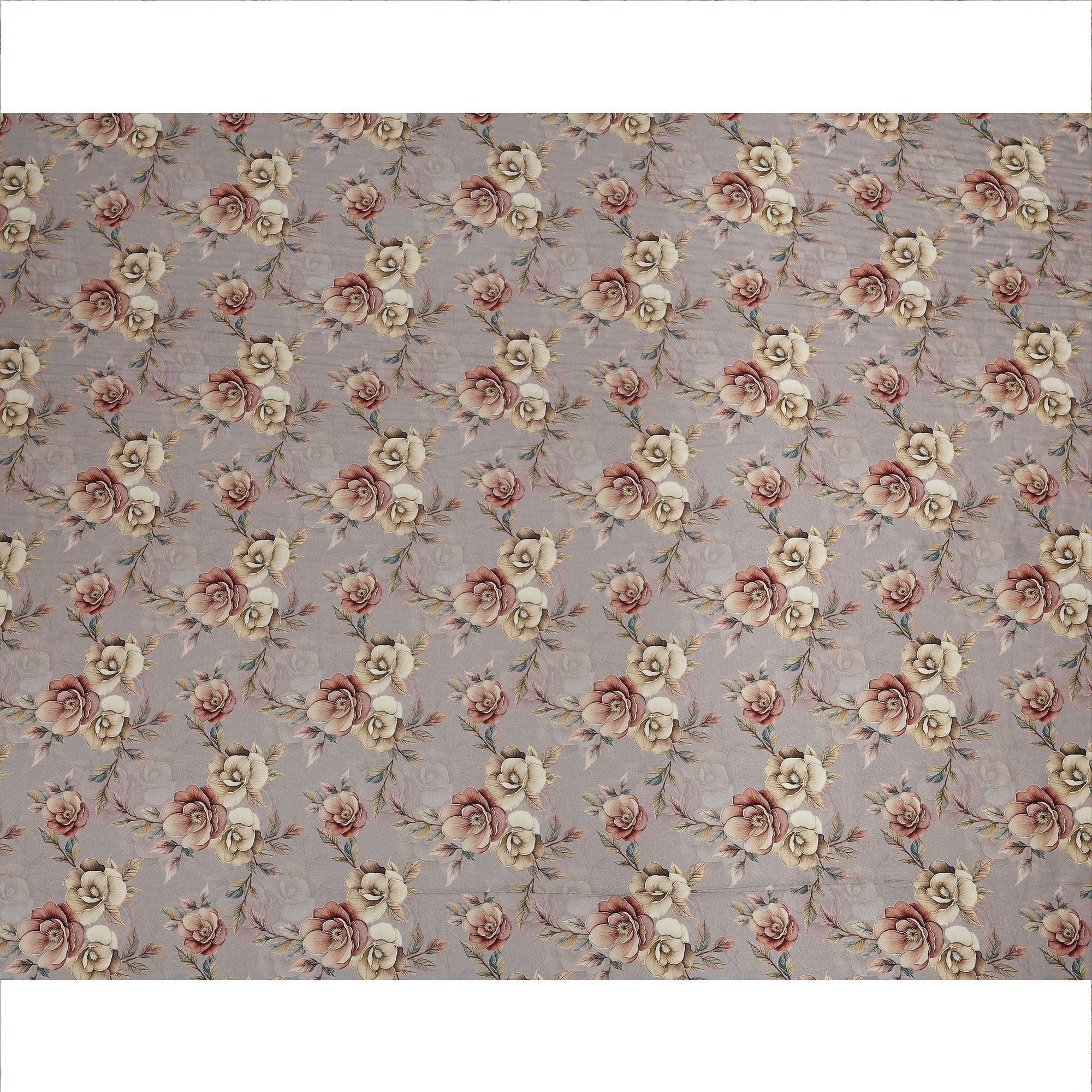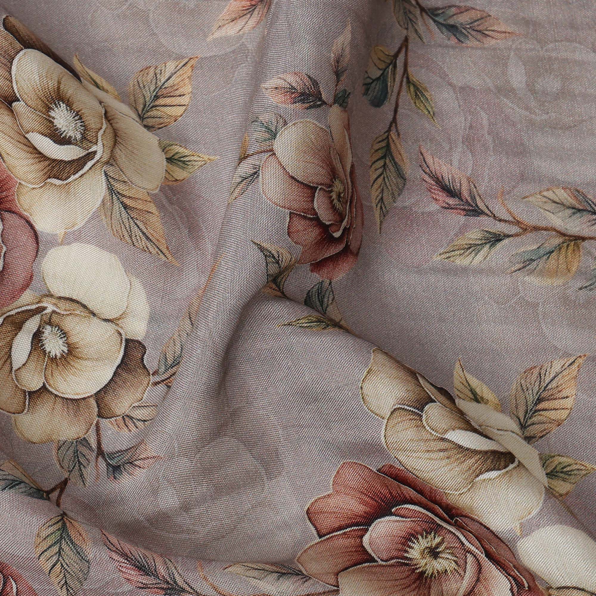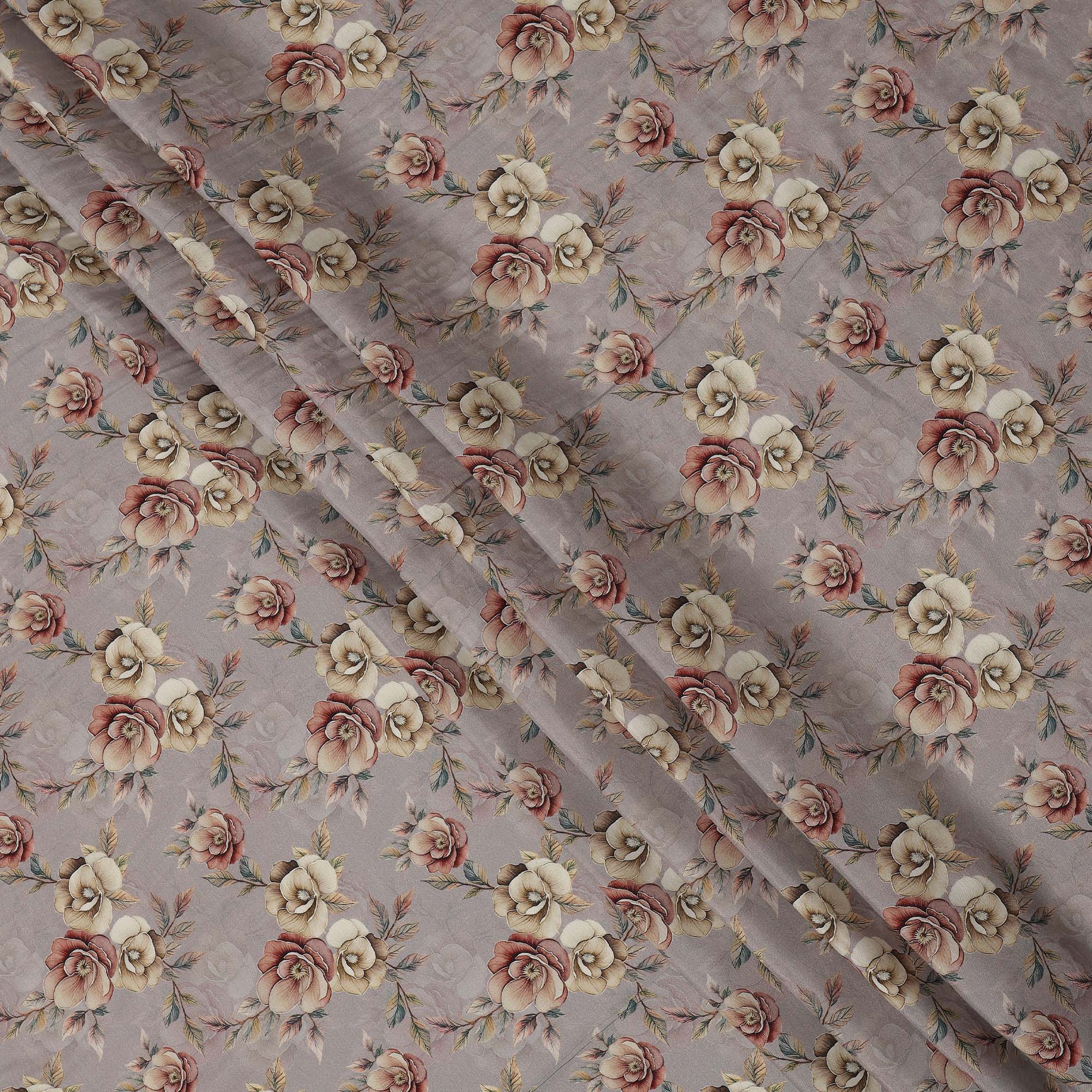 Dusty Grey Floral Printed Viscose Crepe Fabric with Beige and Rose Bloom Design, 110 cms Width, Made in India-D26290