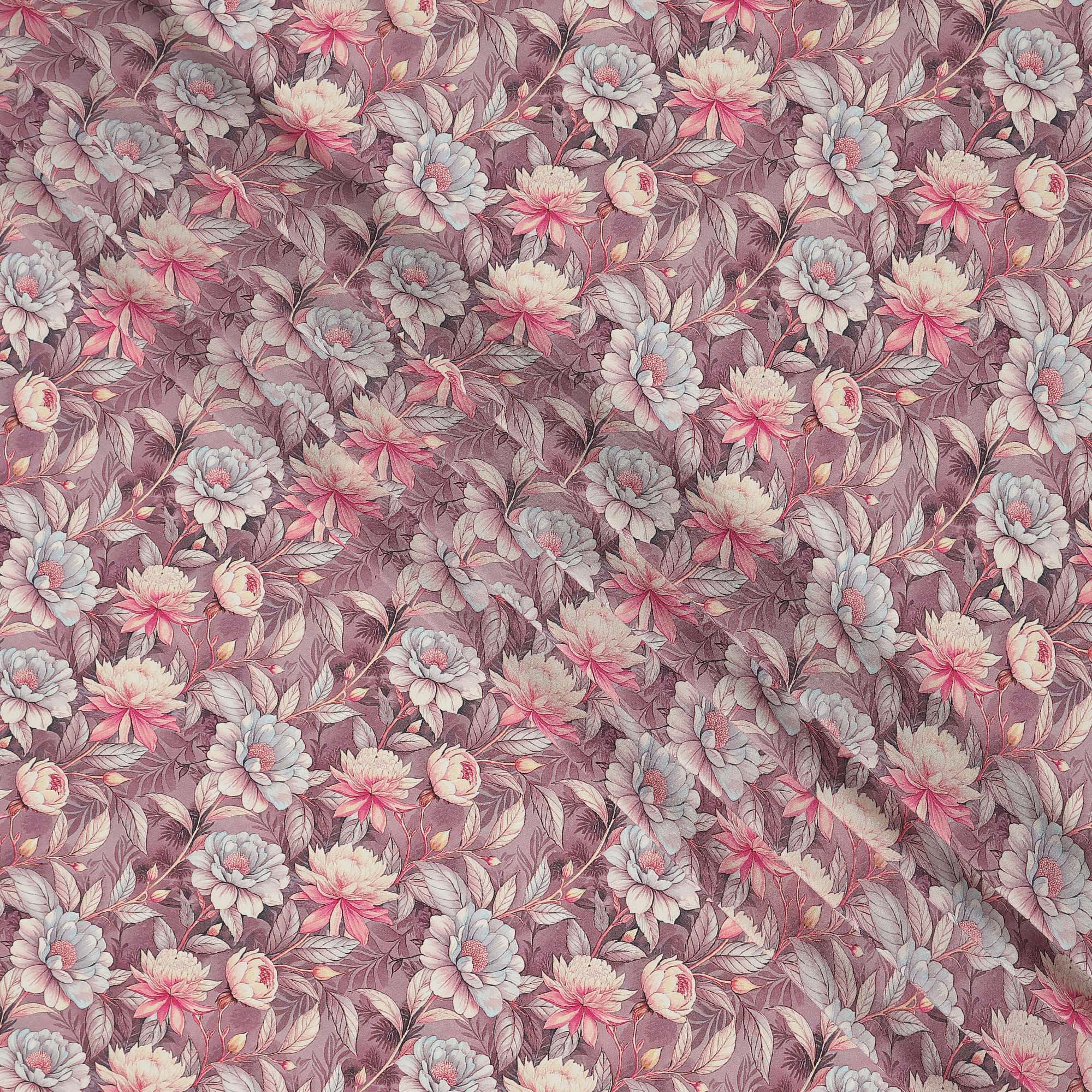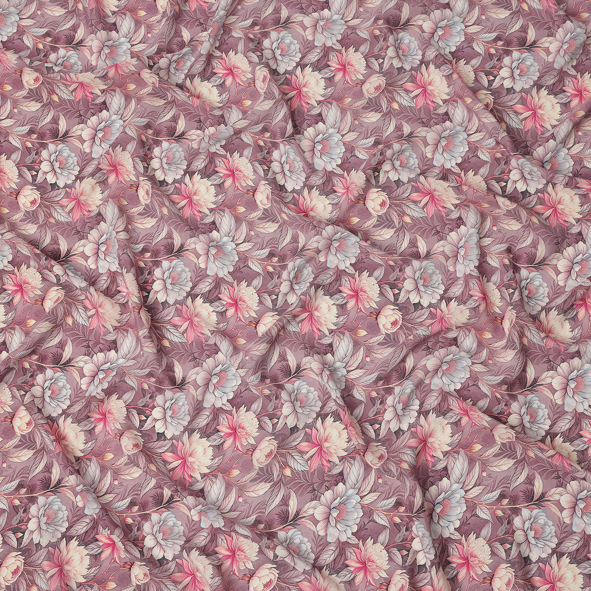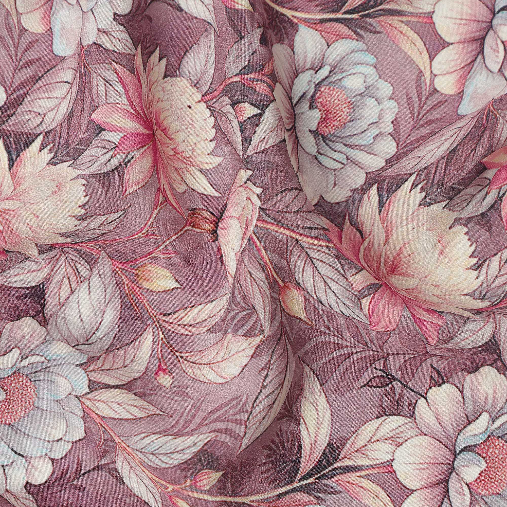 Dusty Mauve Floral Botanical Print Premium Silk Crepe Fabric, 110 Cms, India-D26867