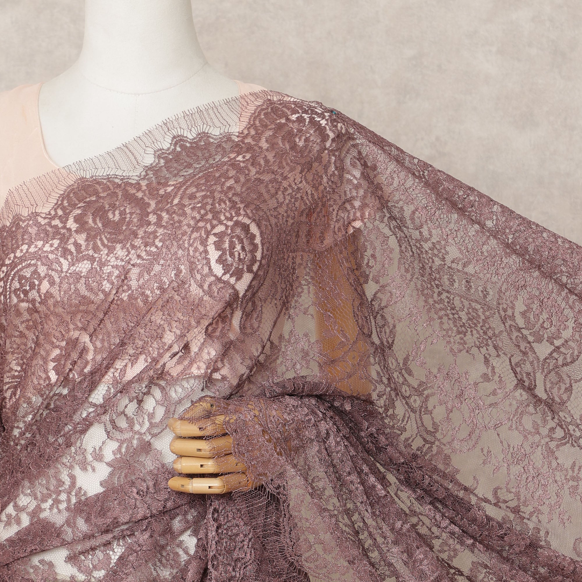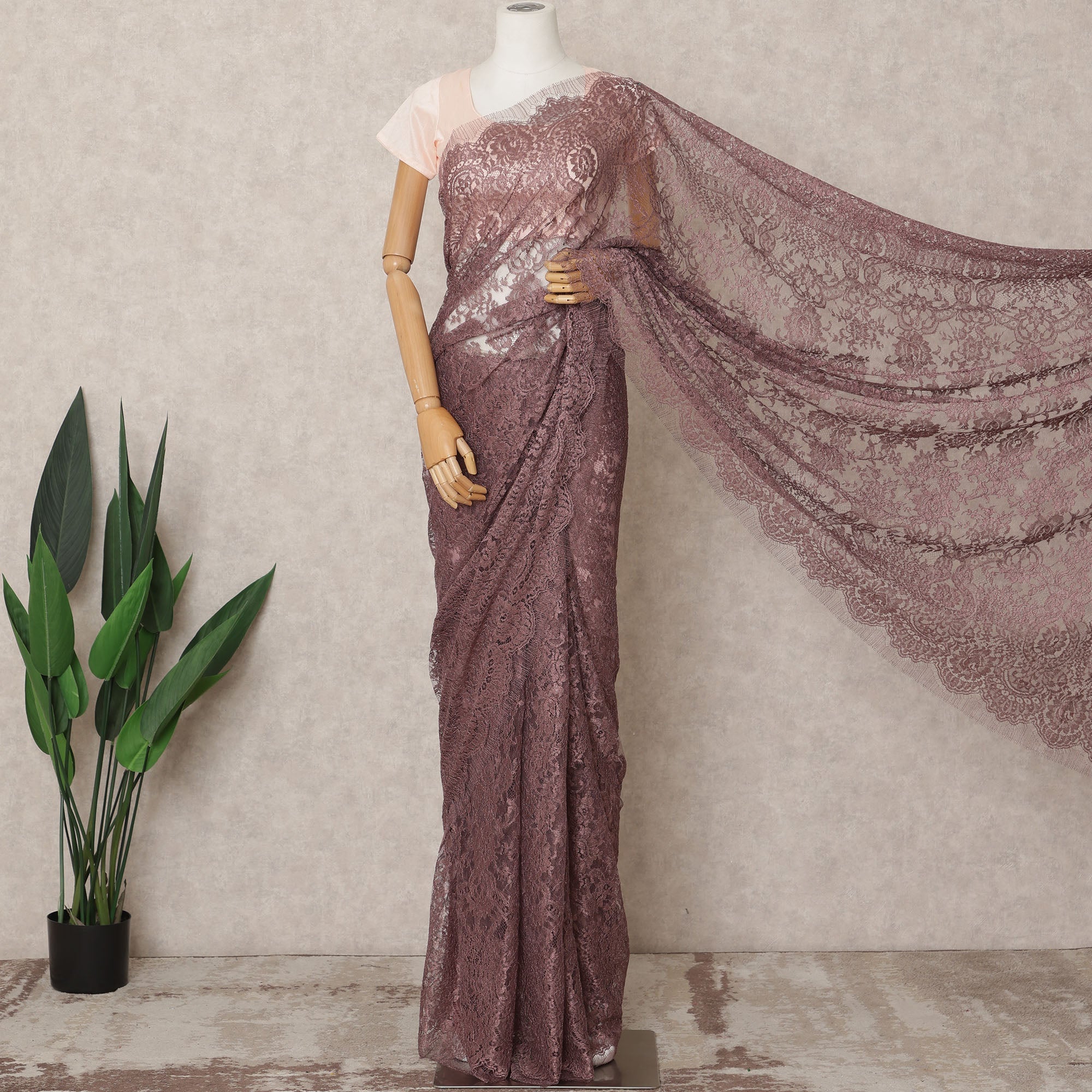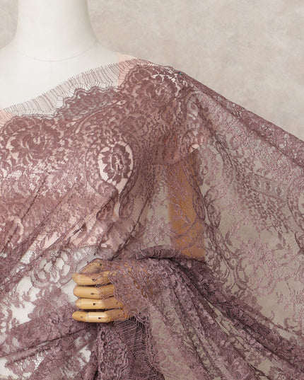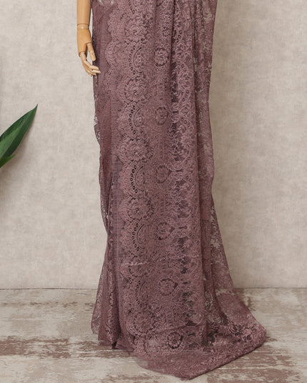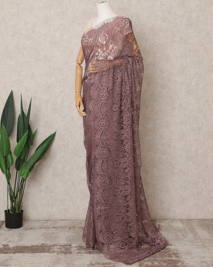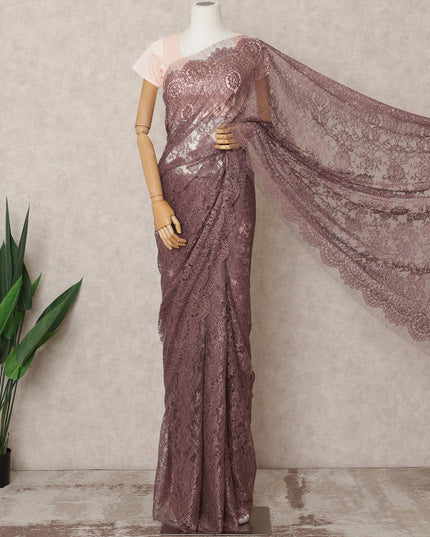 Dusty Mauve Premium Metallic Chantilly Lace Saree Fabric, 5.5 Meters Length, 110 Cms Width, Made in France-D23894