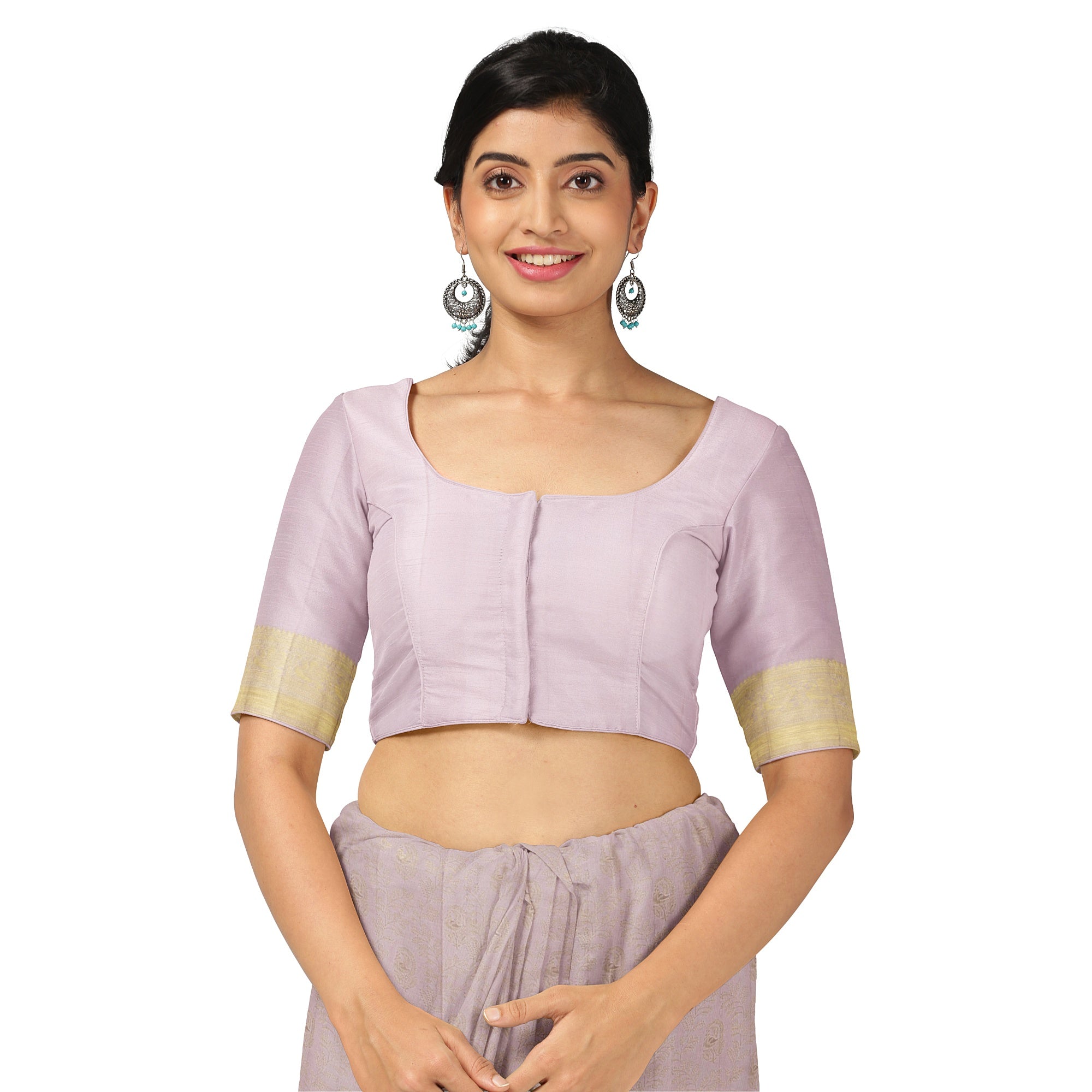 Elegant dusty pink body with gold zari striped detailing for a radiant look