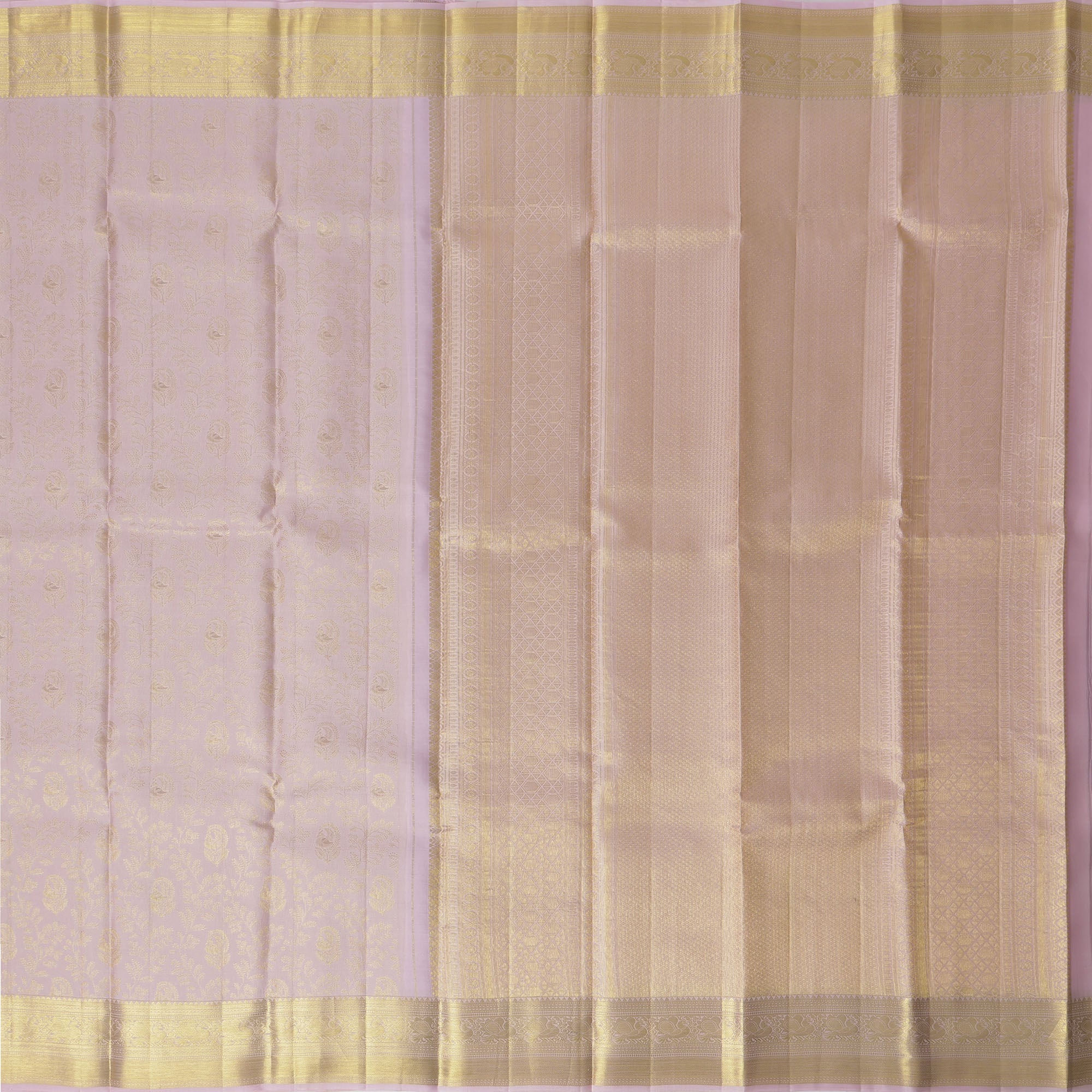 Dusty Pink and Gold Subtle Zari Striped Kanjeevaram Pure Silk Bridal Saree, Minimal Butta Design with Lustrous Border, 110 cm Width, Made in India-D22756