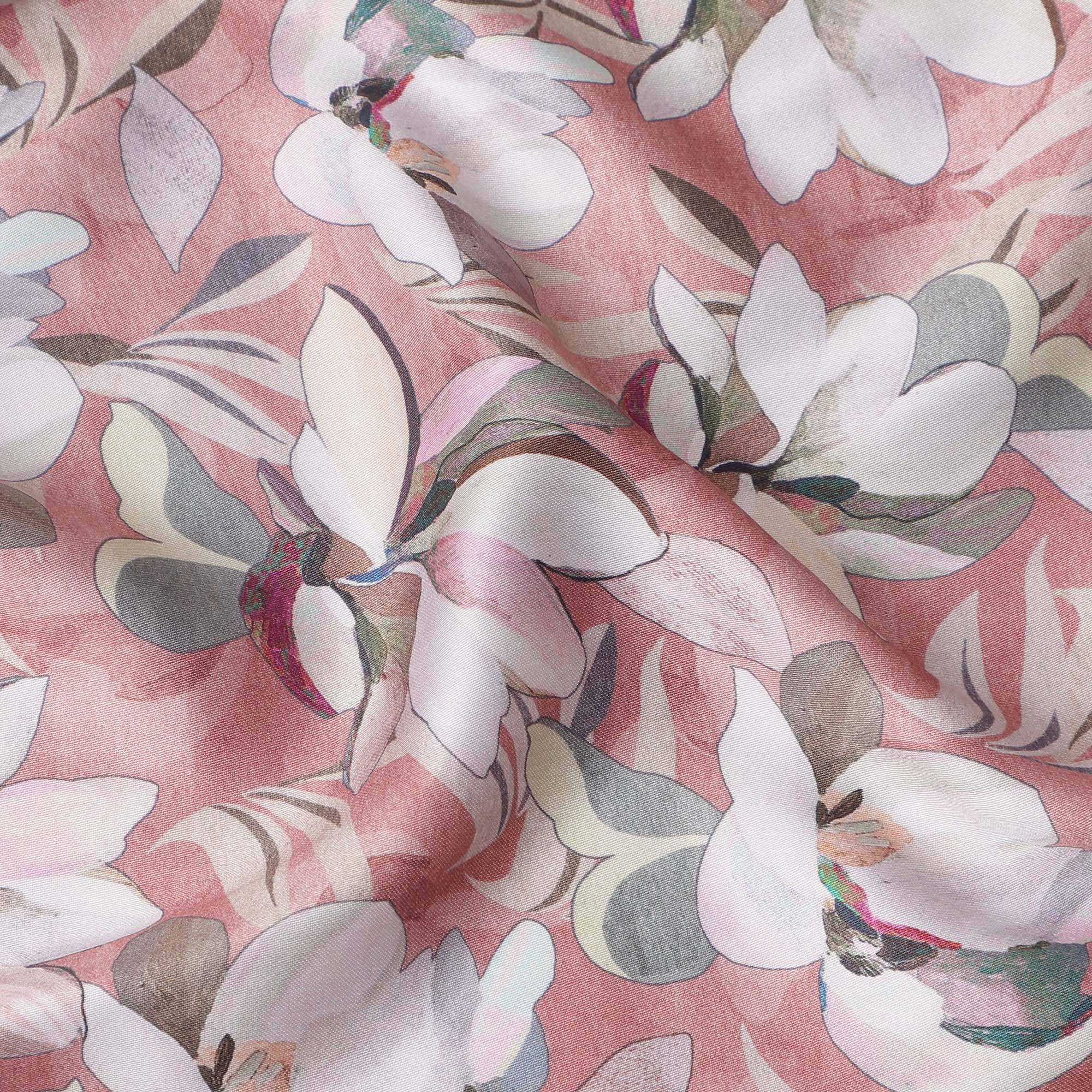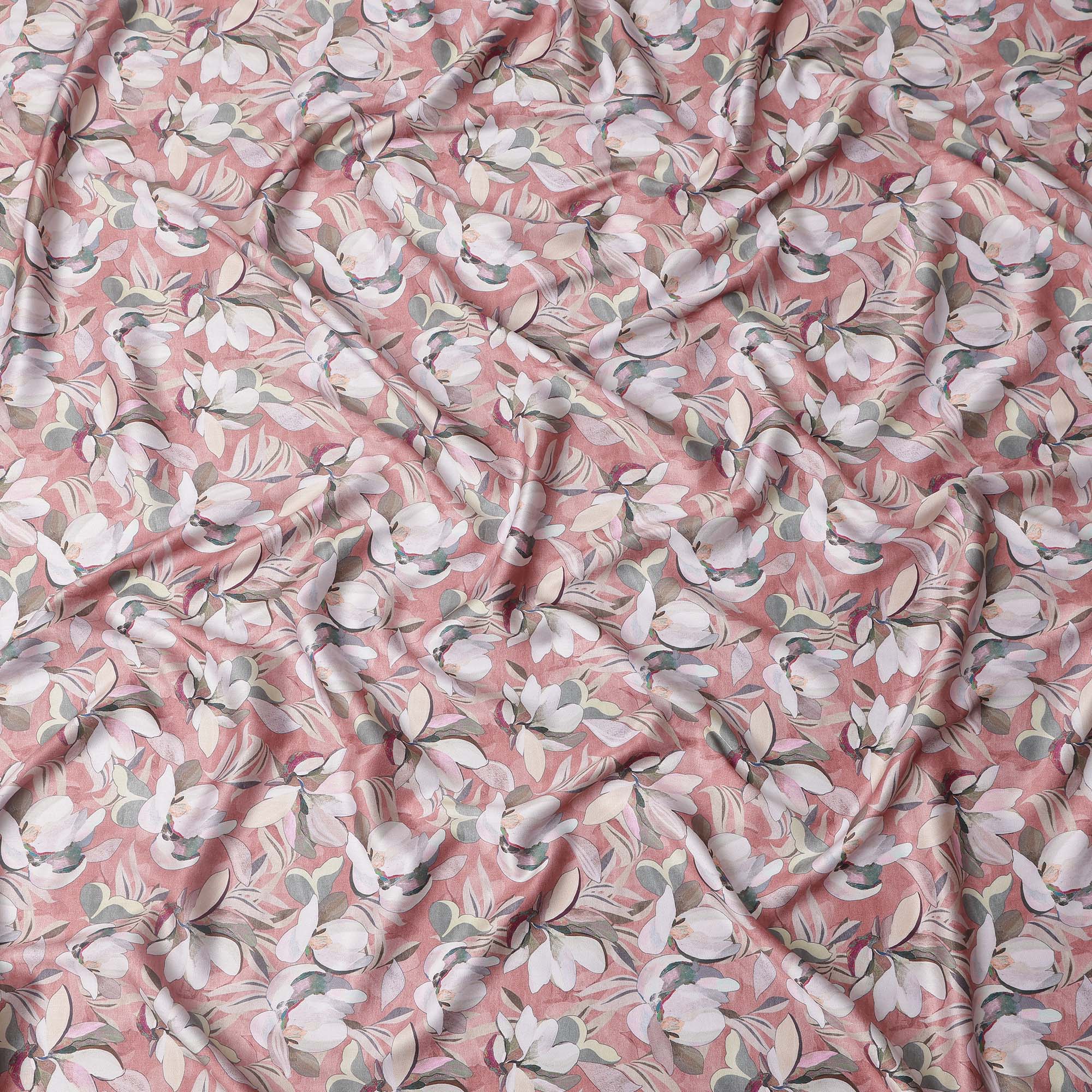Premium Dusty Pink Floral Print Pure Cotton Satin Fabric with glossy sheen