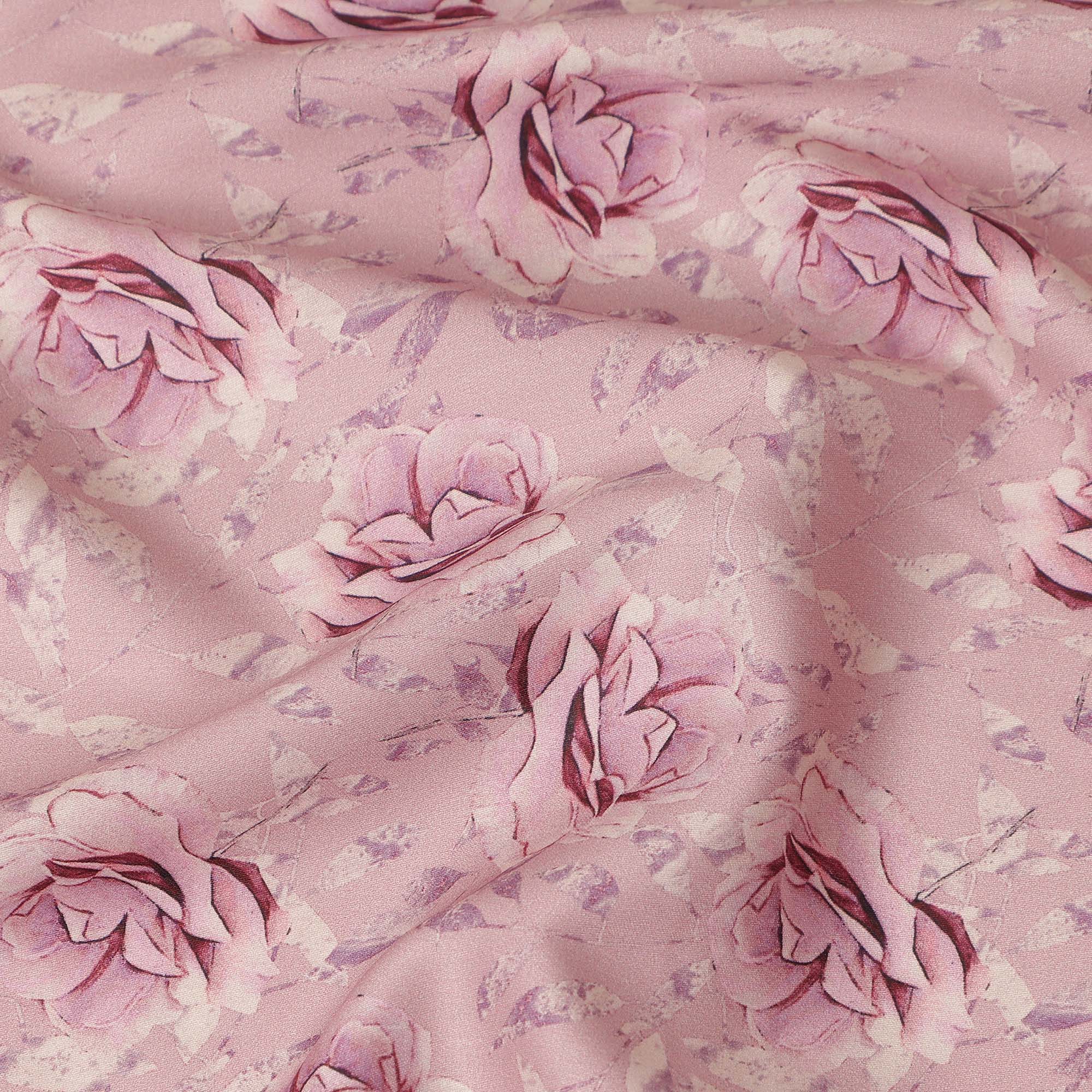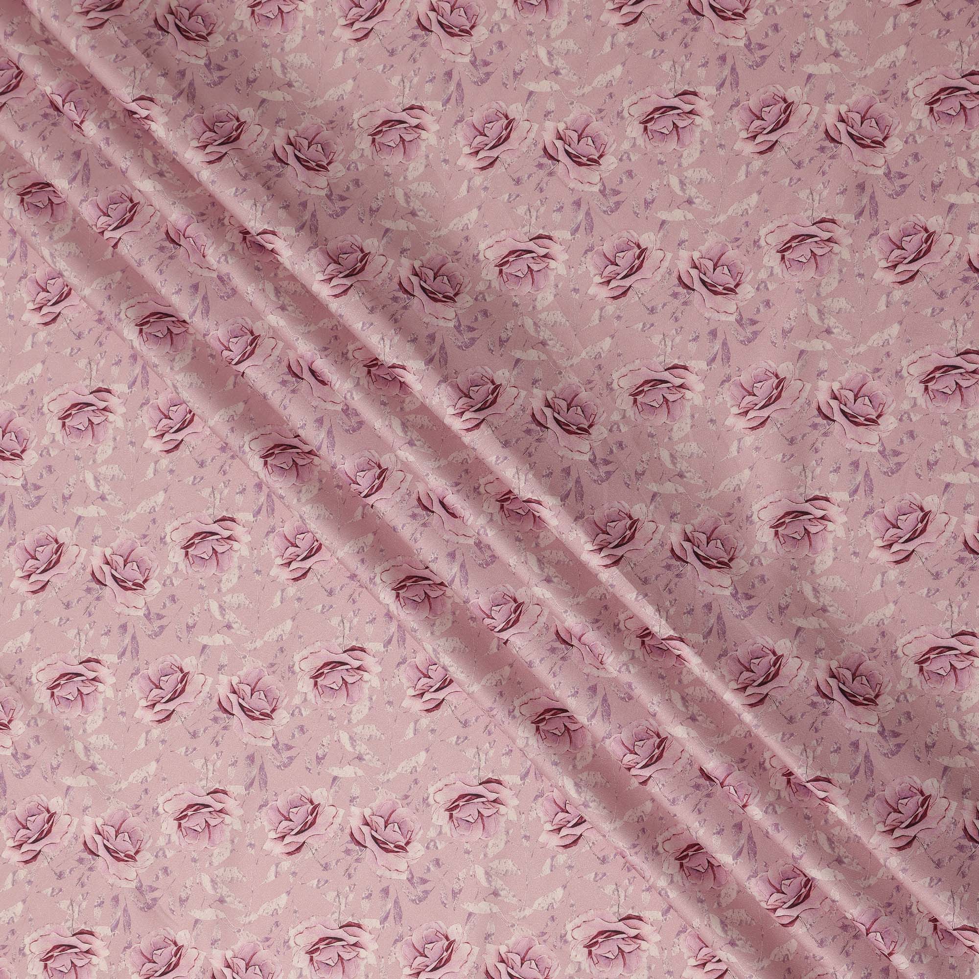 Dusty Pink Rose Floral Printed Cotton Satin Fabric 110 Cms Width Smooth Soft Dress Material India-D28066