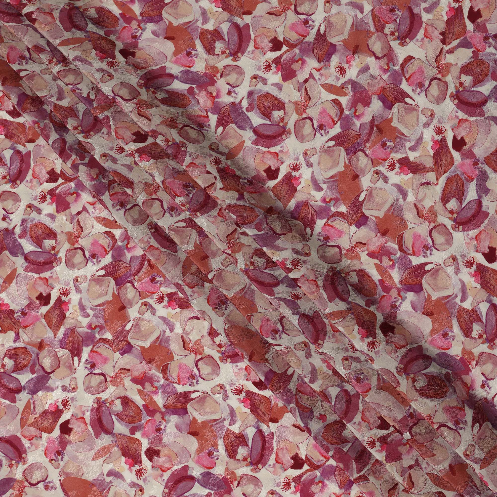 Dusty Rose Abstract Printed Viscose Fabric Artistic Contemporary Design Soft Flowing Apparel Material 110 Cms India-D27322