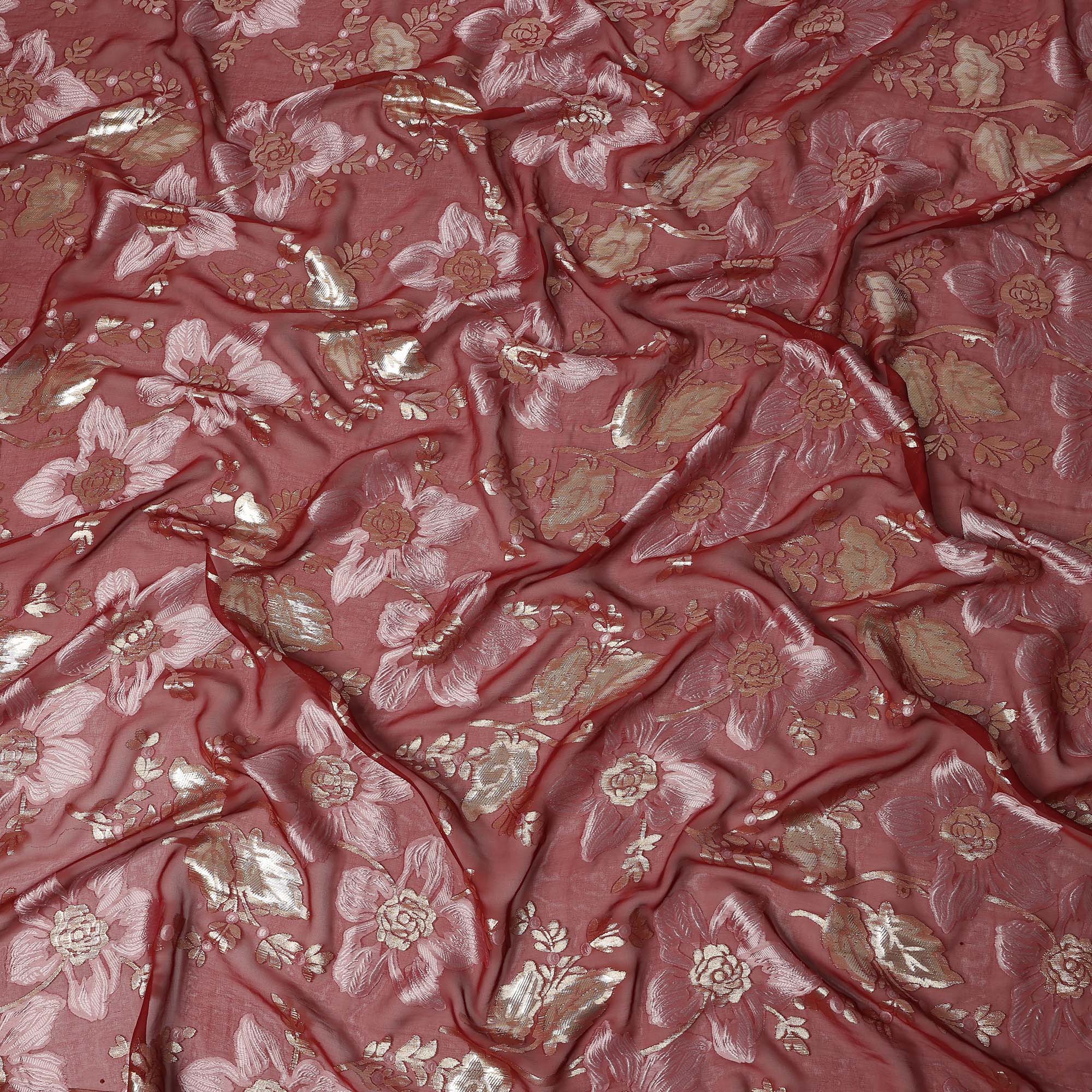 Dusty Rose Floral Patterned Silk Chiffon Fabric with Metallic Lurex, 140 Cms Width, Made in South Korea-D26342