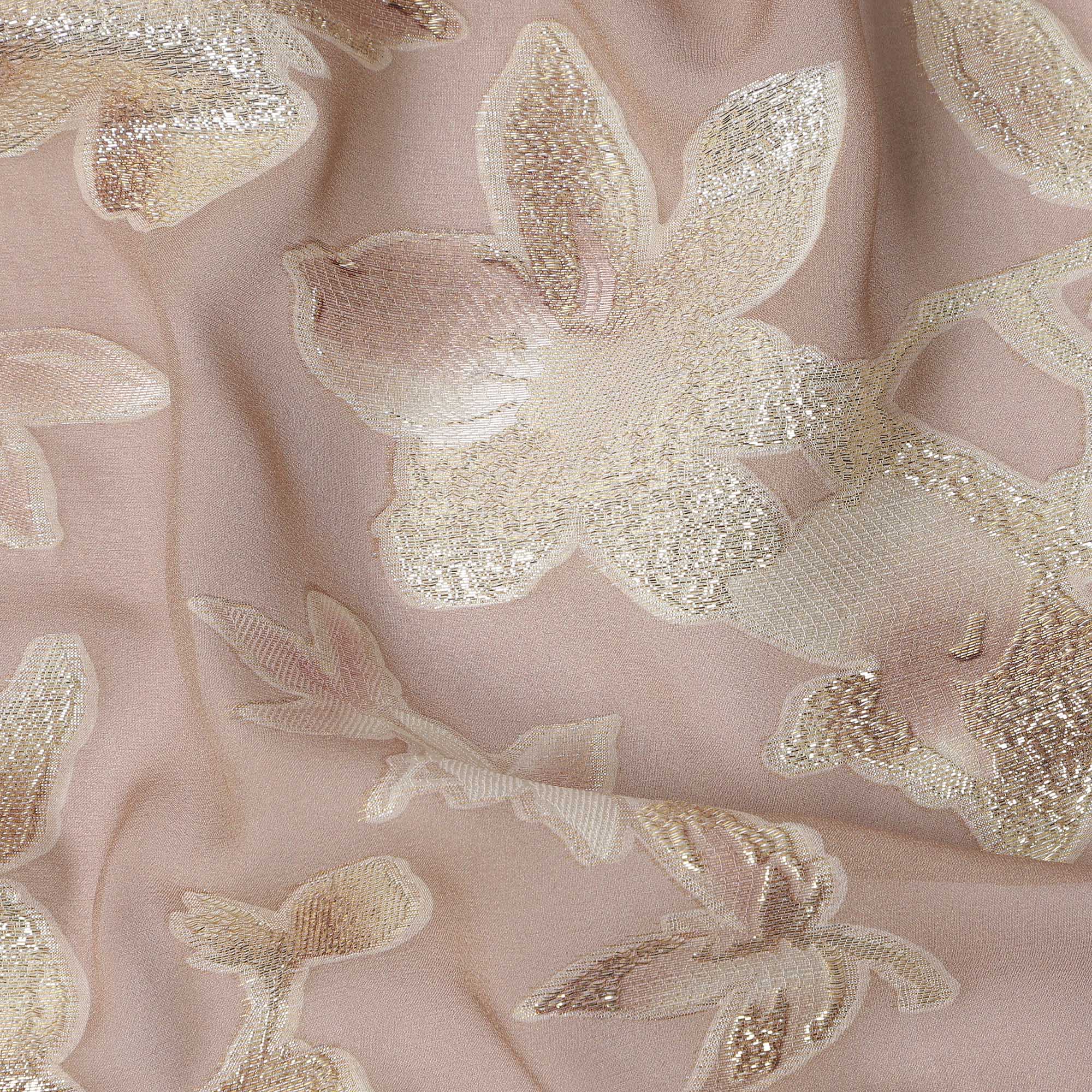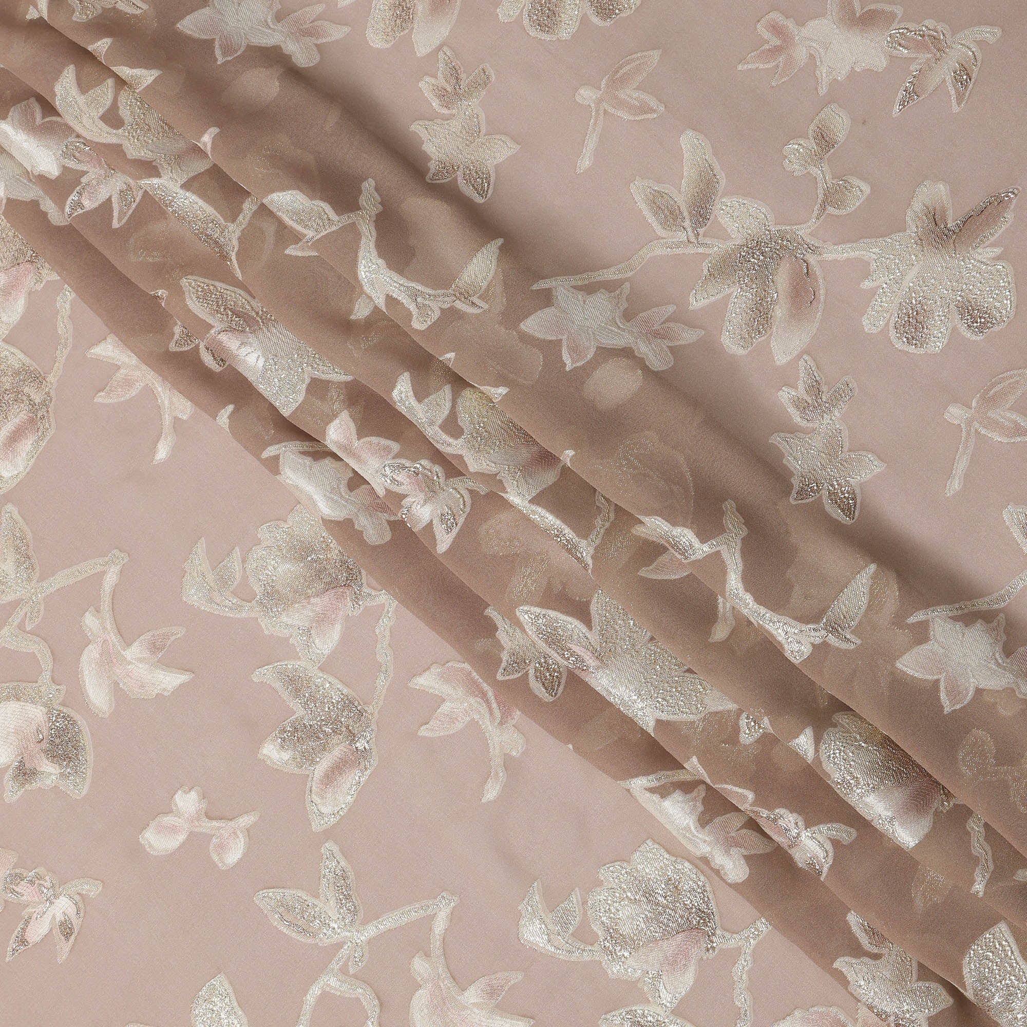 Dusty Rose Floral Silk Chiffon Fabric with Metallic Lurex, 140 Cms, South Korea-D25483