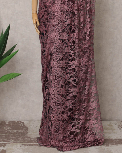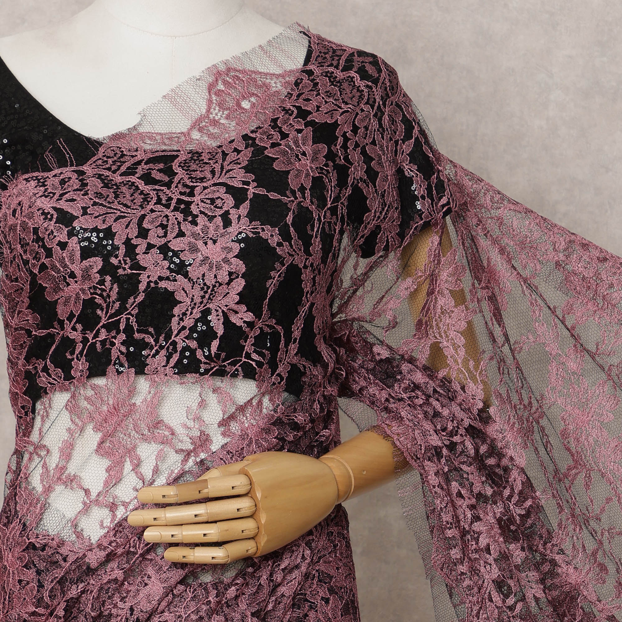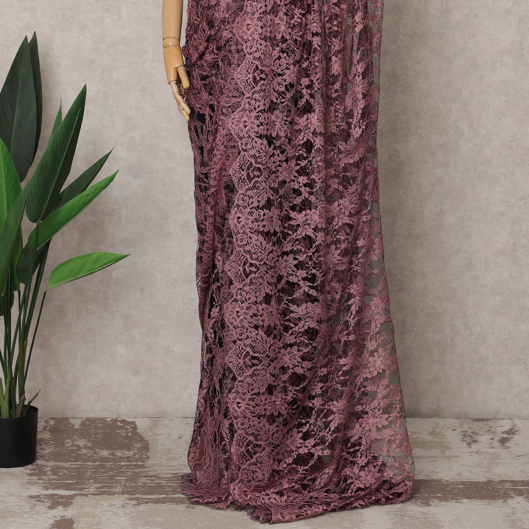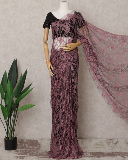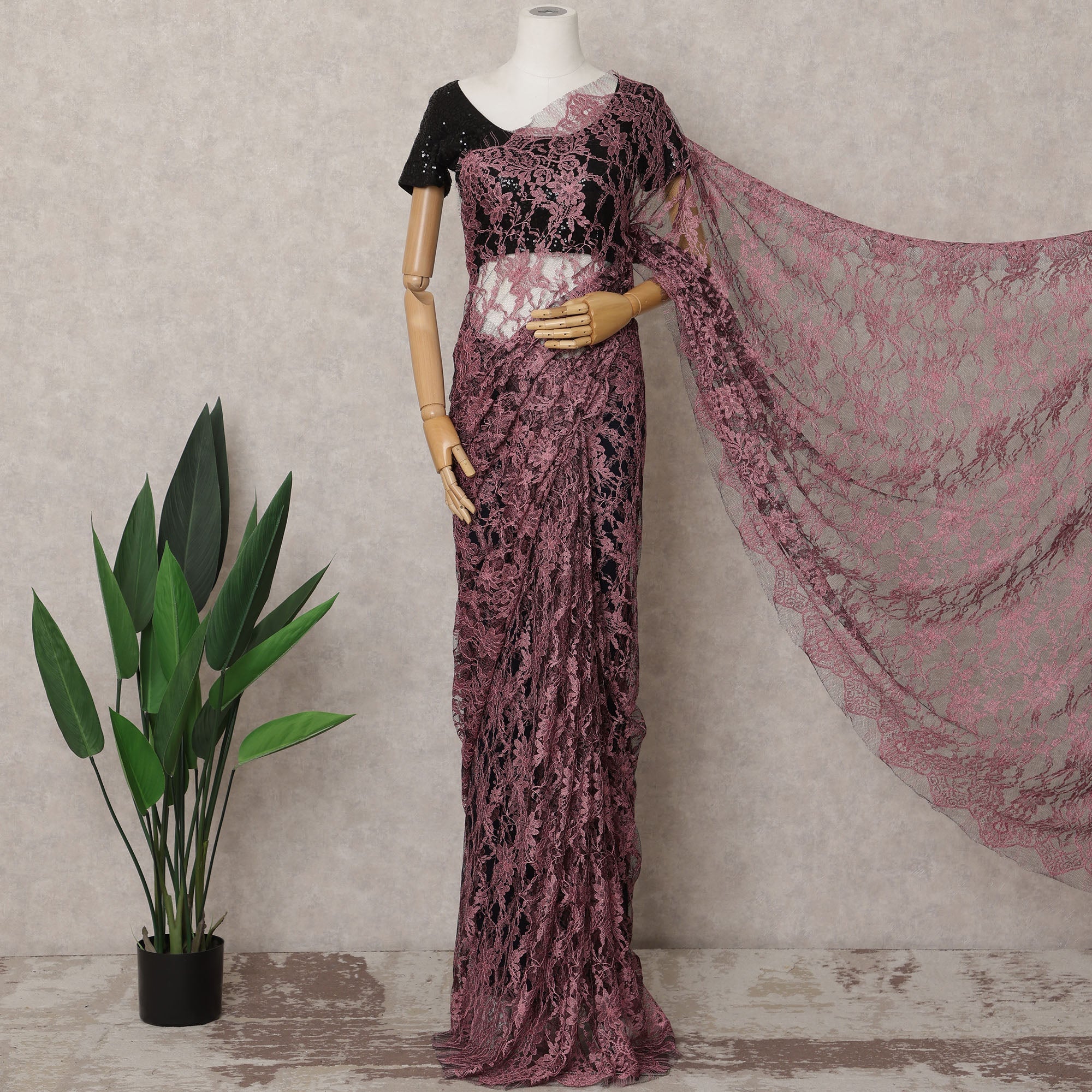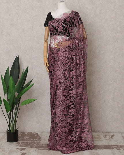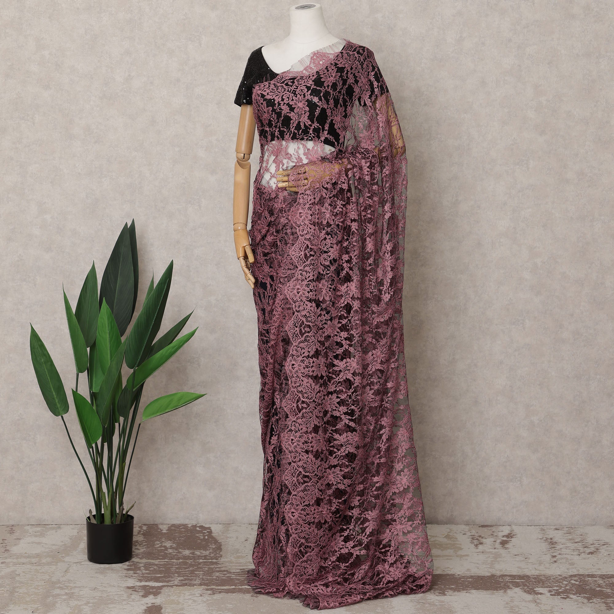Dusty Rose French Chantilly Lace Saree, 5.5 Meters, 110 cm Wide-D21836