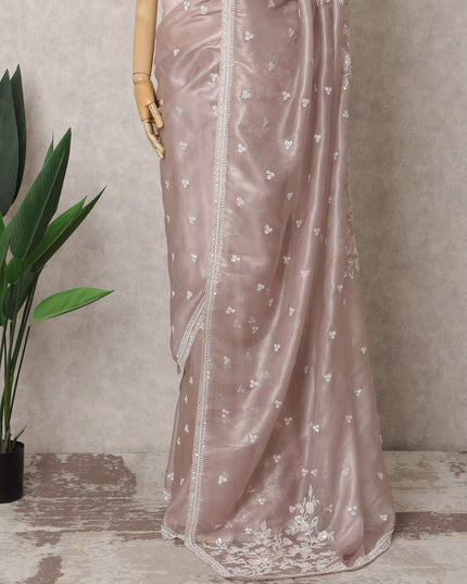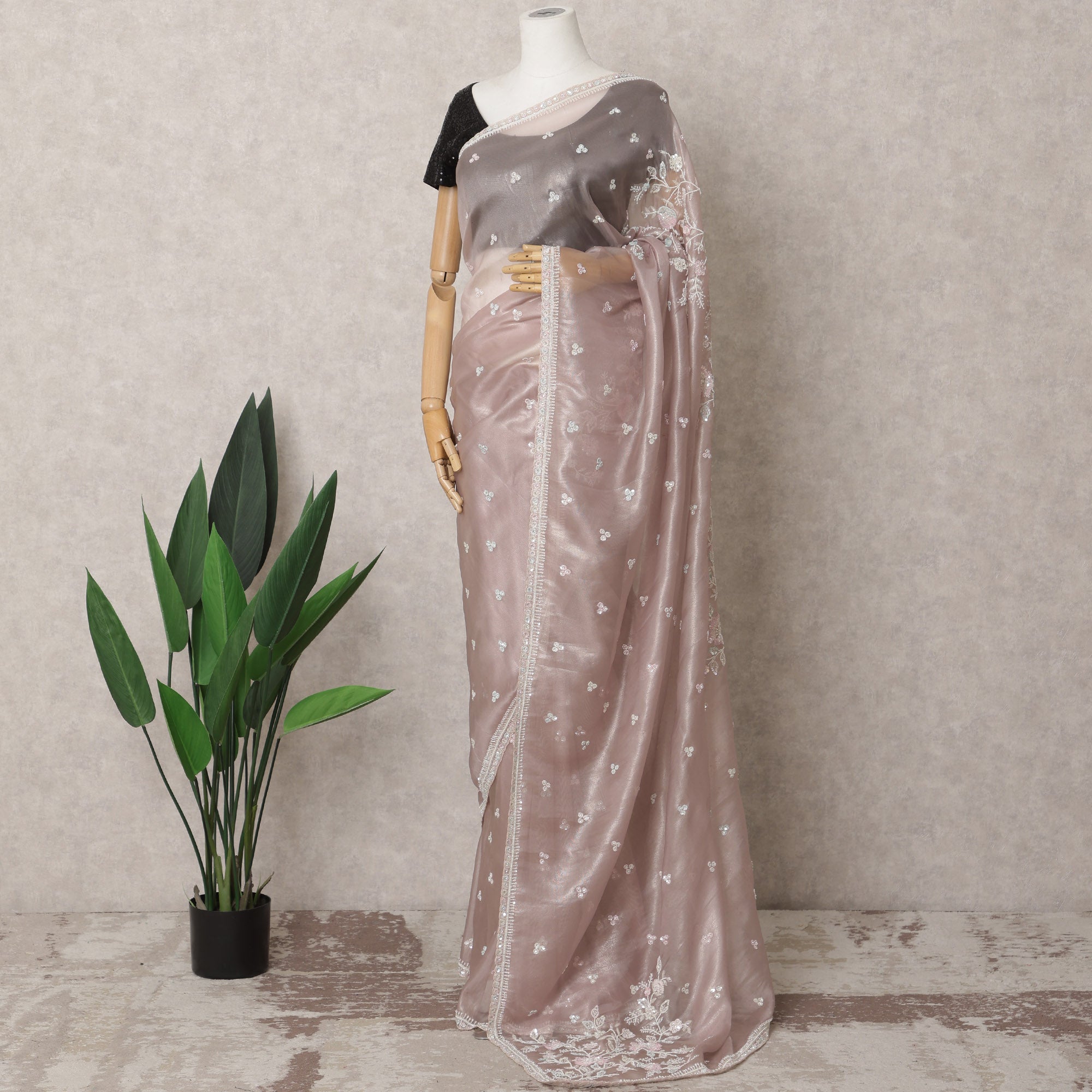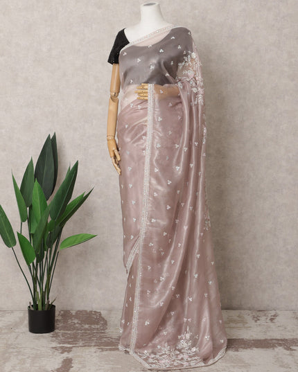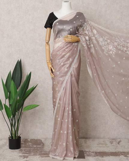 Dusty Rose & Grey Premium Silk Organza Saree – 5.5 Meters, Elegant Embroidery-D21859