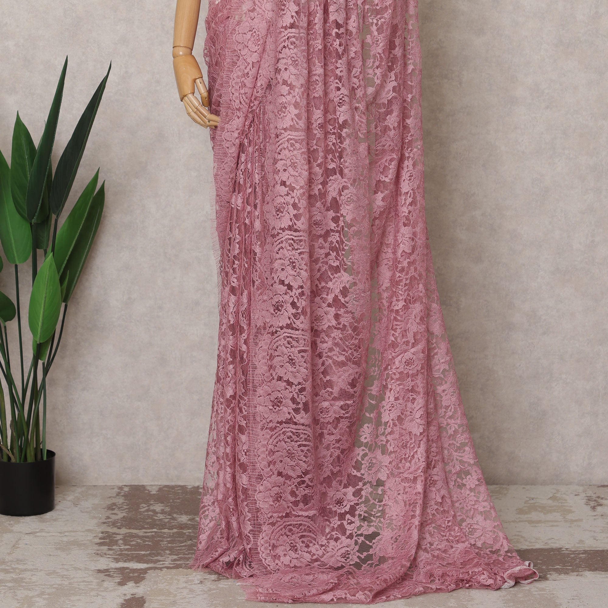 Dusty Rose Pink Premium French 2-Tone Chantilly Saree Lace – 5.5 Mtrs Length & 110 Cms Width – Made in France-D22974
