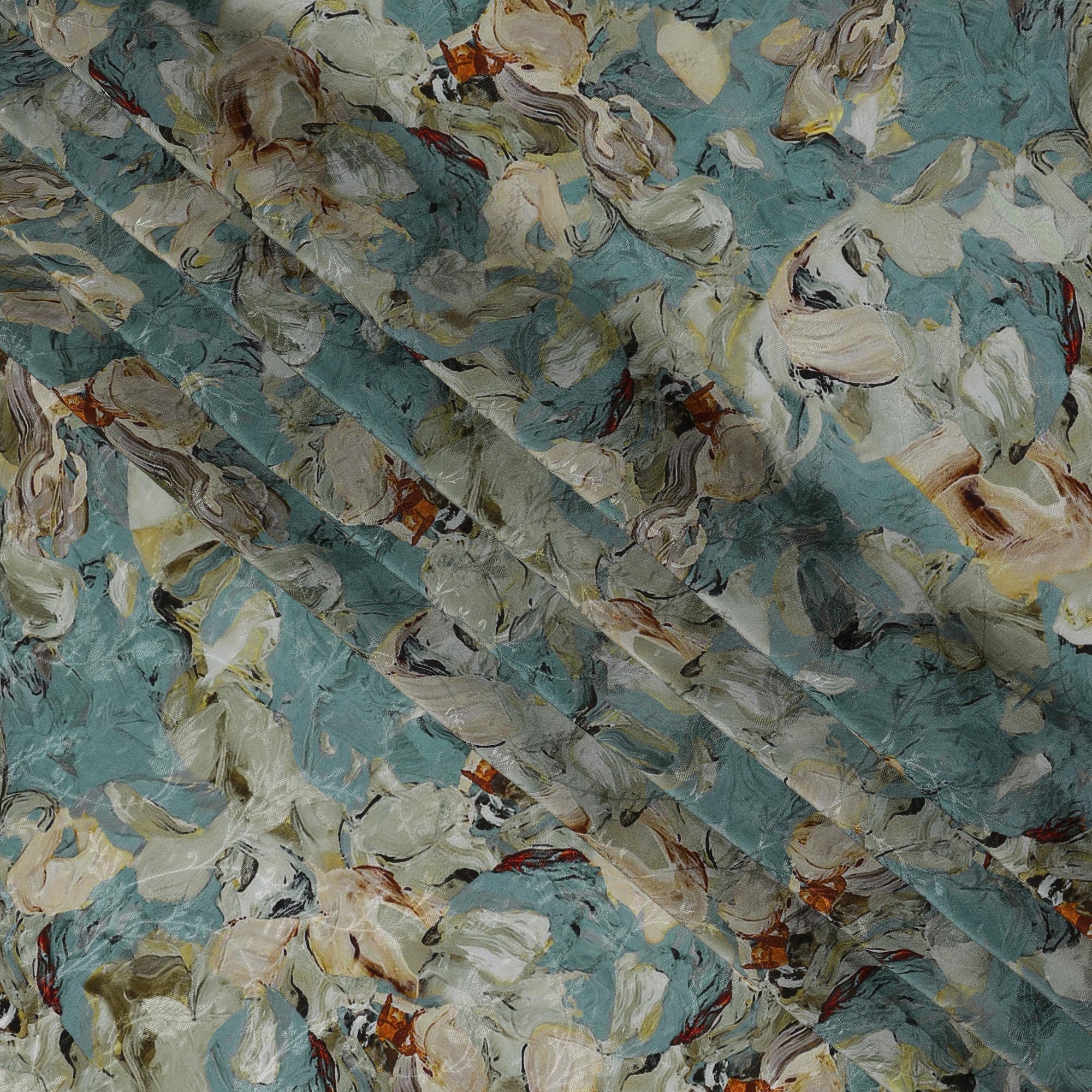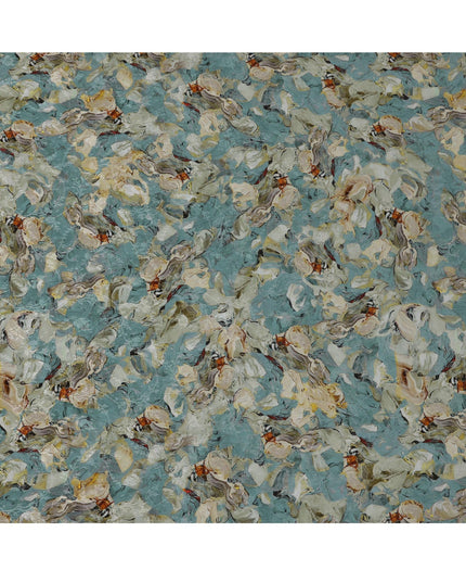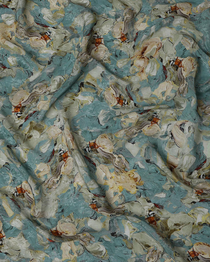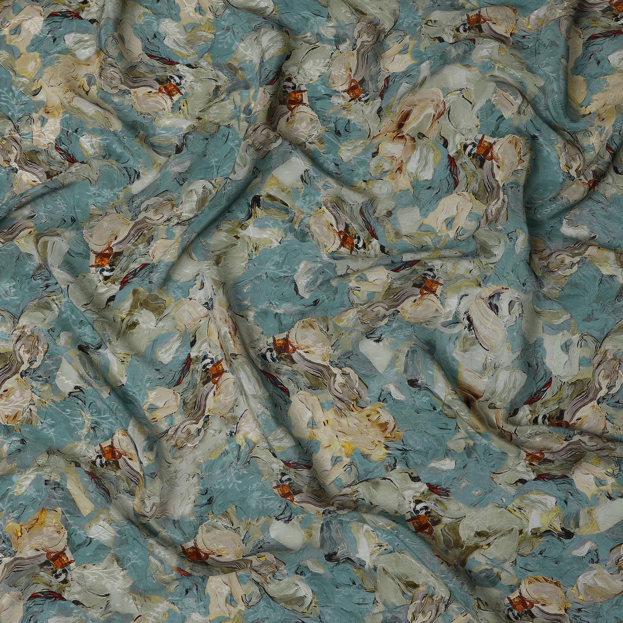 Dusty Teal Abstract Brushstroke Digital Print Viscose Fabric, 110 cm Width, Made in India-D22925