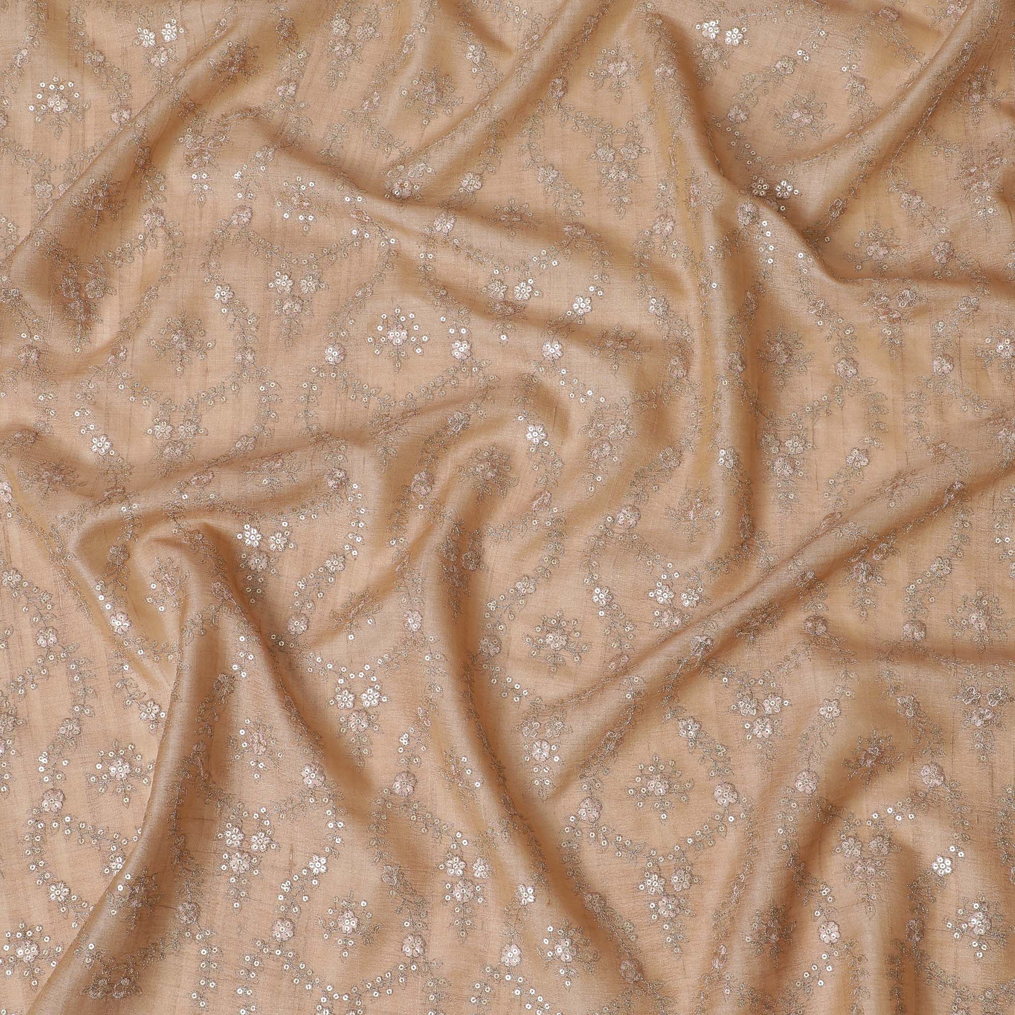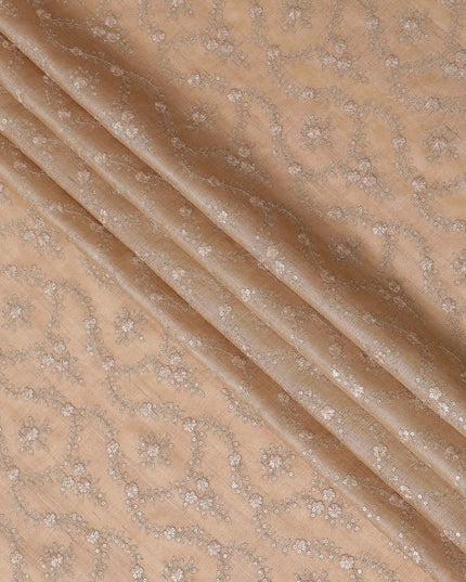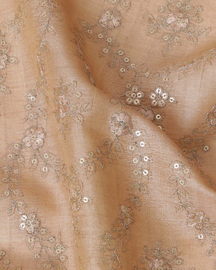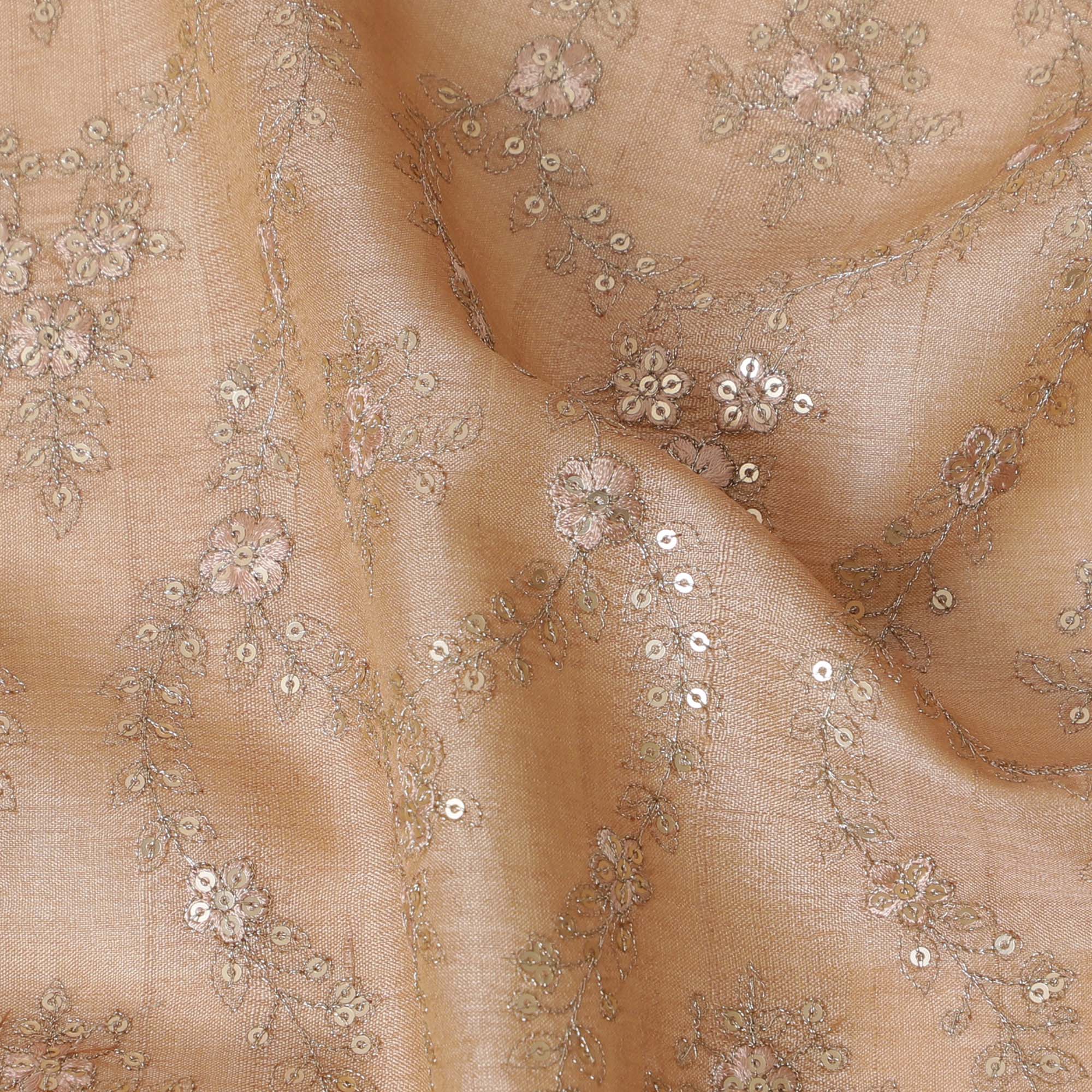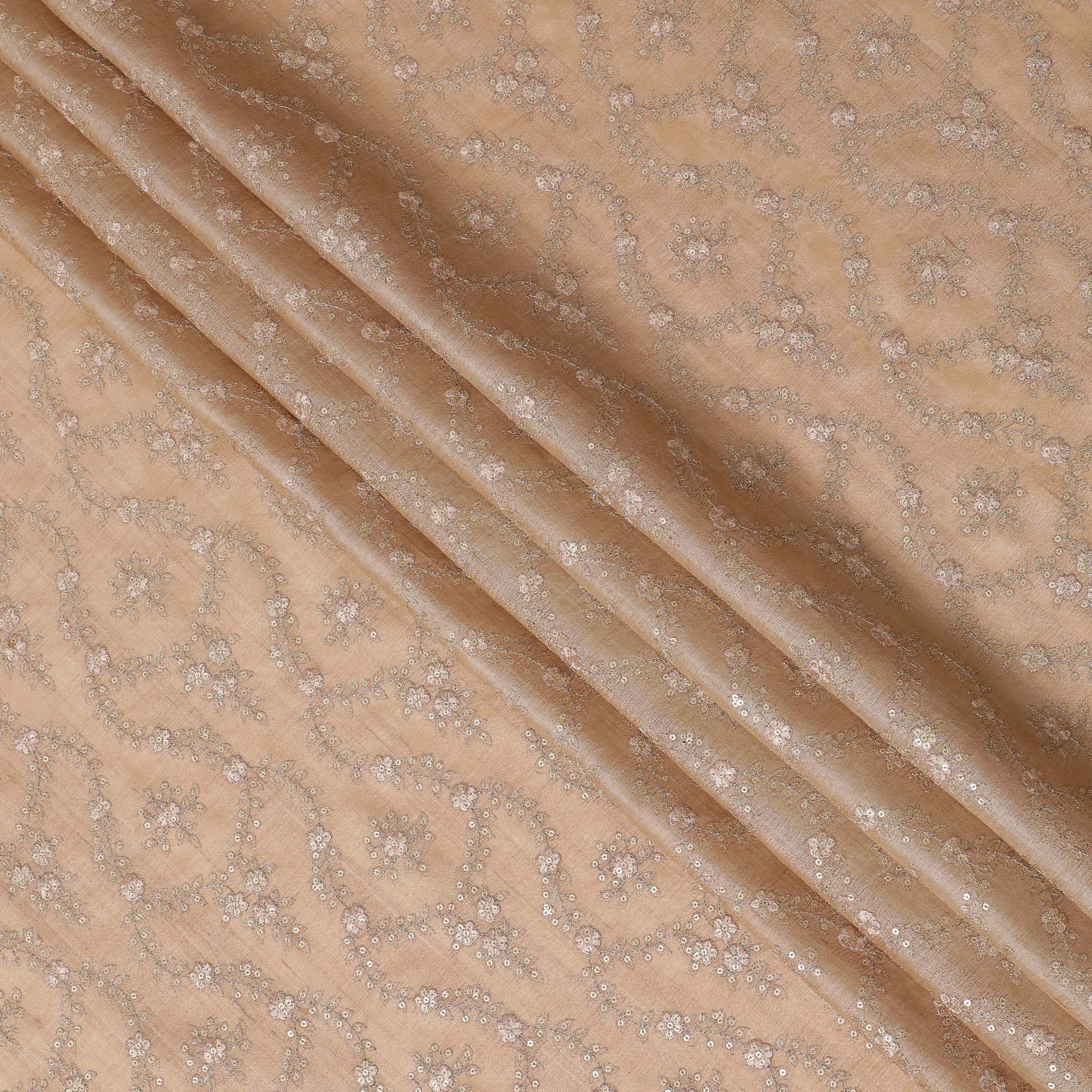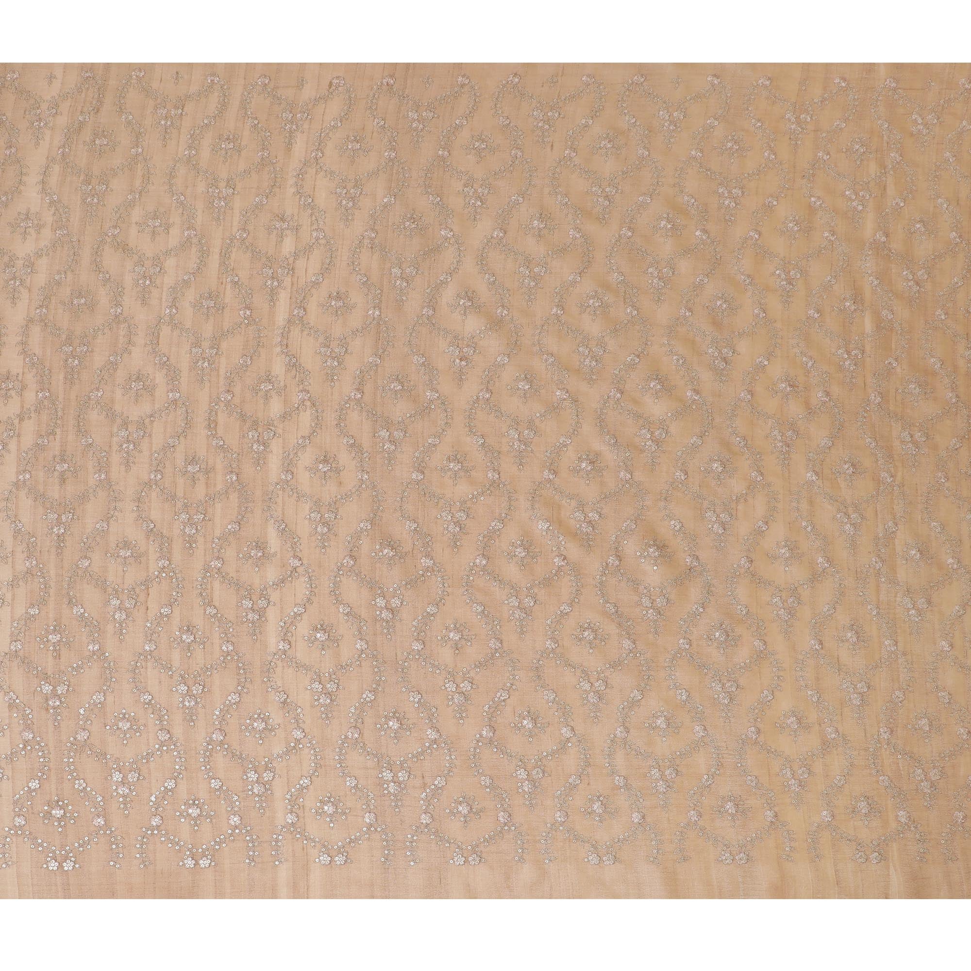 Elegant Beige Tussar Silk Fabric with Embroidered Floral Motifs, 110cm Width-D18966