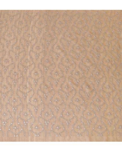 Discover the sheer elegance of our Beige Tussar Silk Fabric, adorned with delicate embroidered floral motifs that evoke a timeless aesthetic. The fabric, with a width of 110cm, hails from the rich textile heritage of India, offering a blend of traditional craftsmanship and contemporary style. Perfect for crafting luxurious dresses, sarees, and home décor, this fabric is a testament to durability and grace. The natural sheen of Tussar silk, coupled with the intricate embroidery, adds a touch of sophistication to any creation. Its substantial yet airy composition ensures comfort and breathability, making it an all-season choice for fashion connoisseurs.