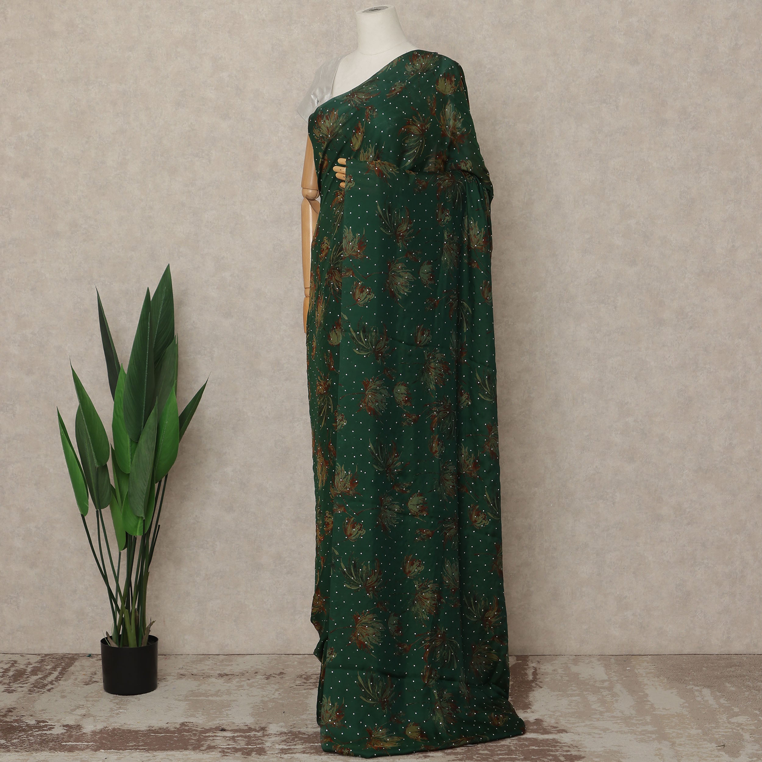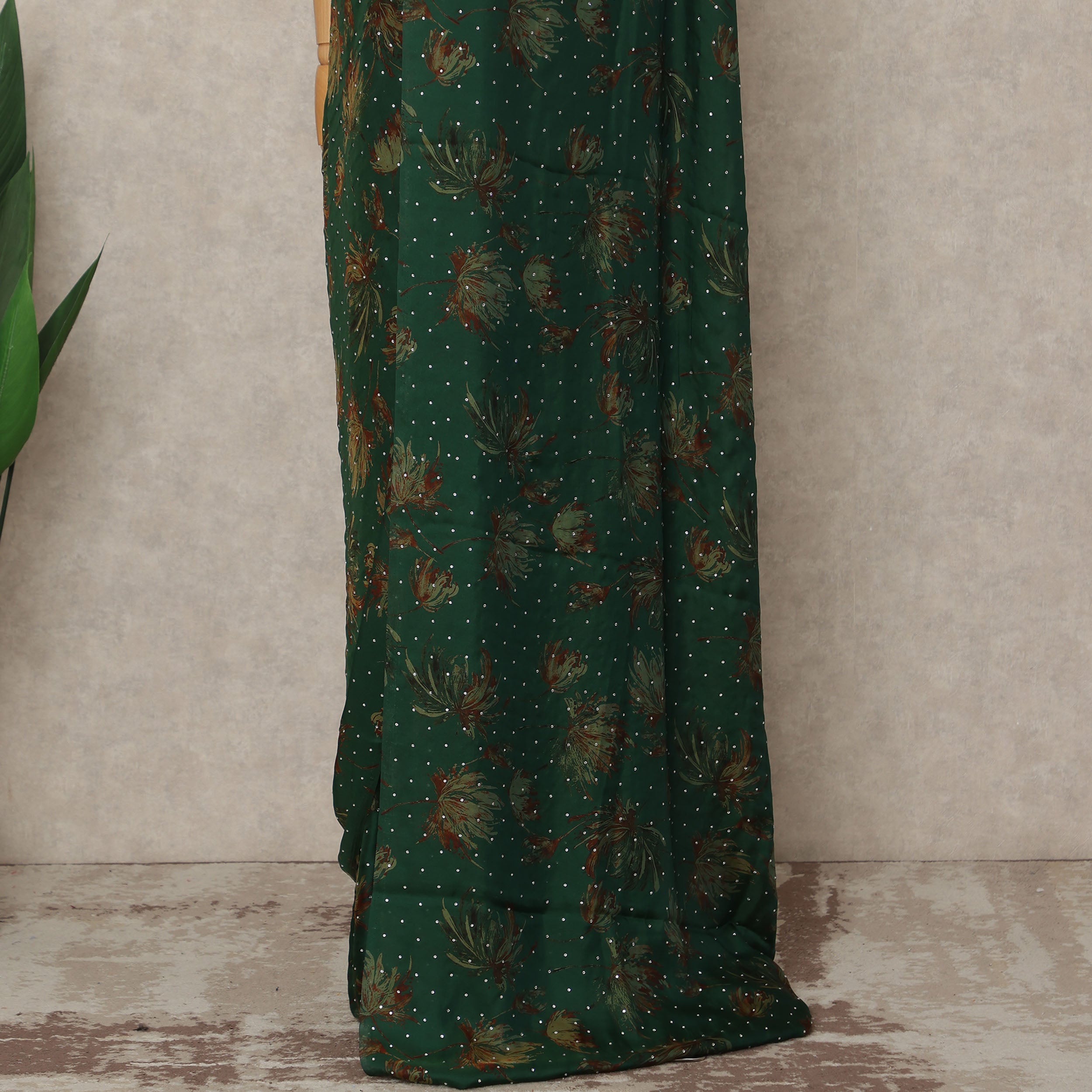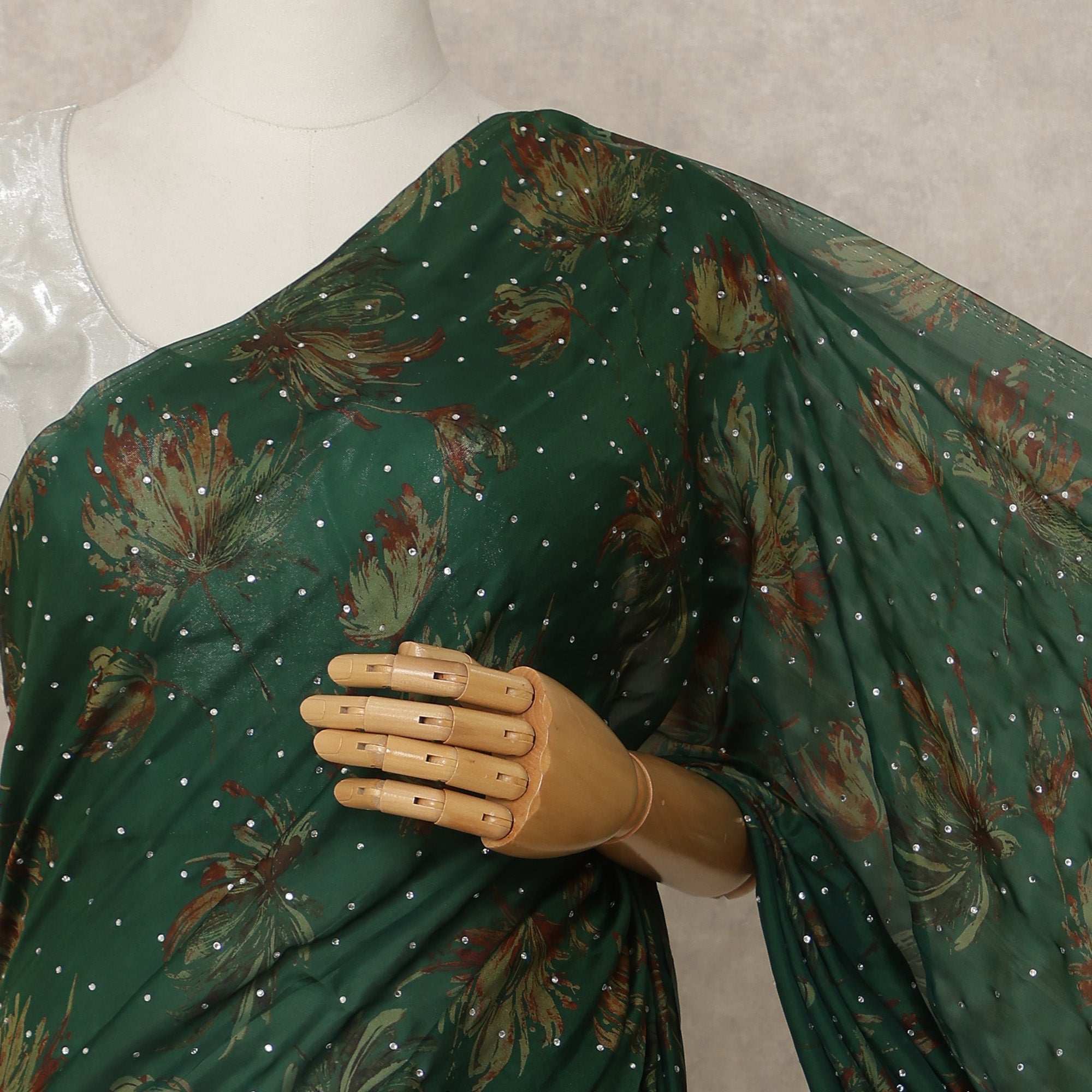 Emerald Green Floral Premium Pure Silk Chiffon Saree 5.5 Meters x 110 Cms Width with Stone Work from South Korea Unstitched Blouse Not Included-D28166