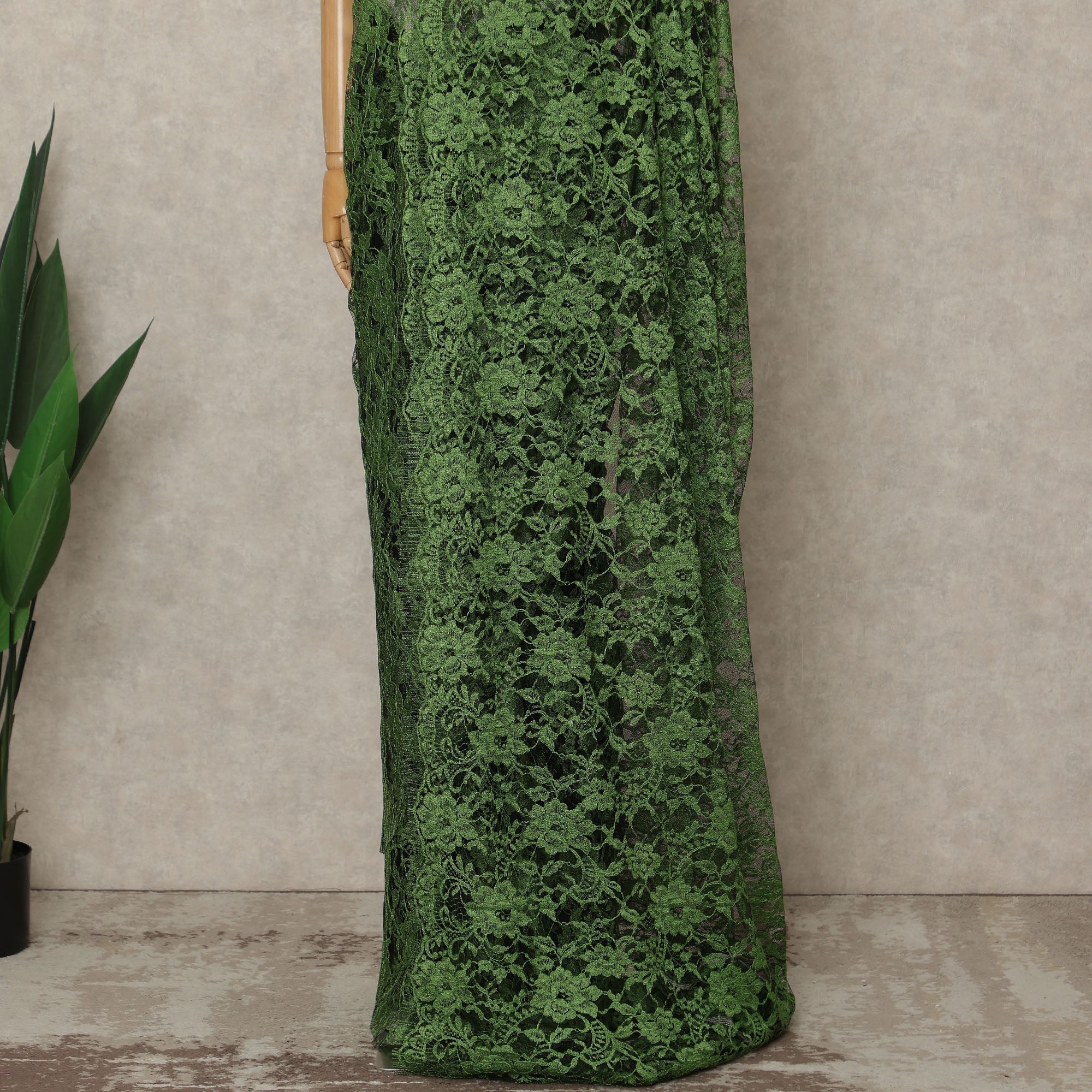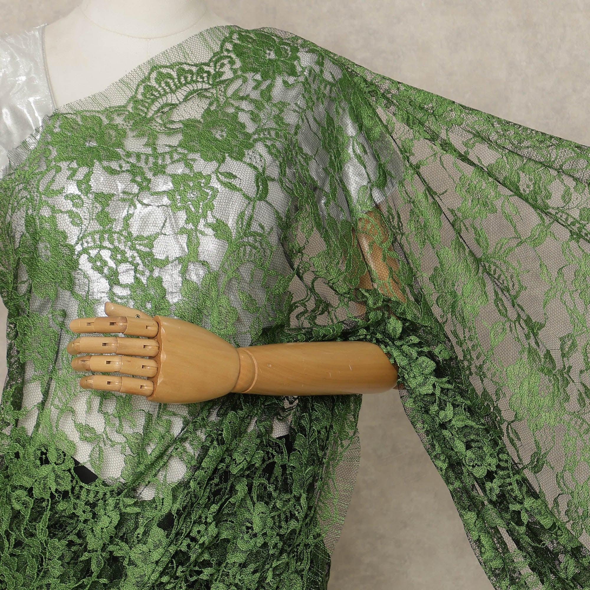 Premium French 2-tone Chantilly lace in a striking emerald green shade.