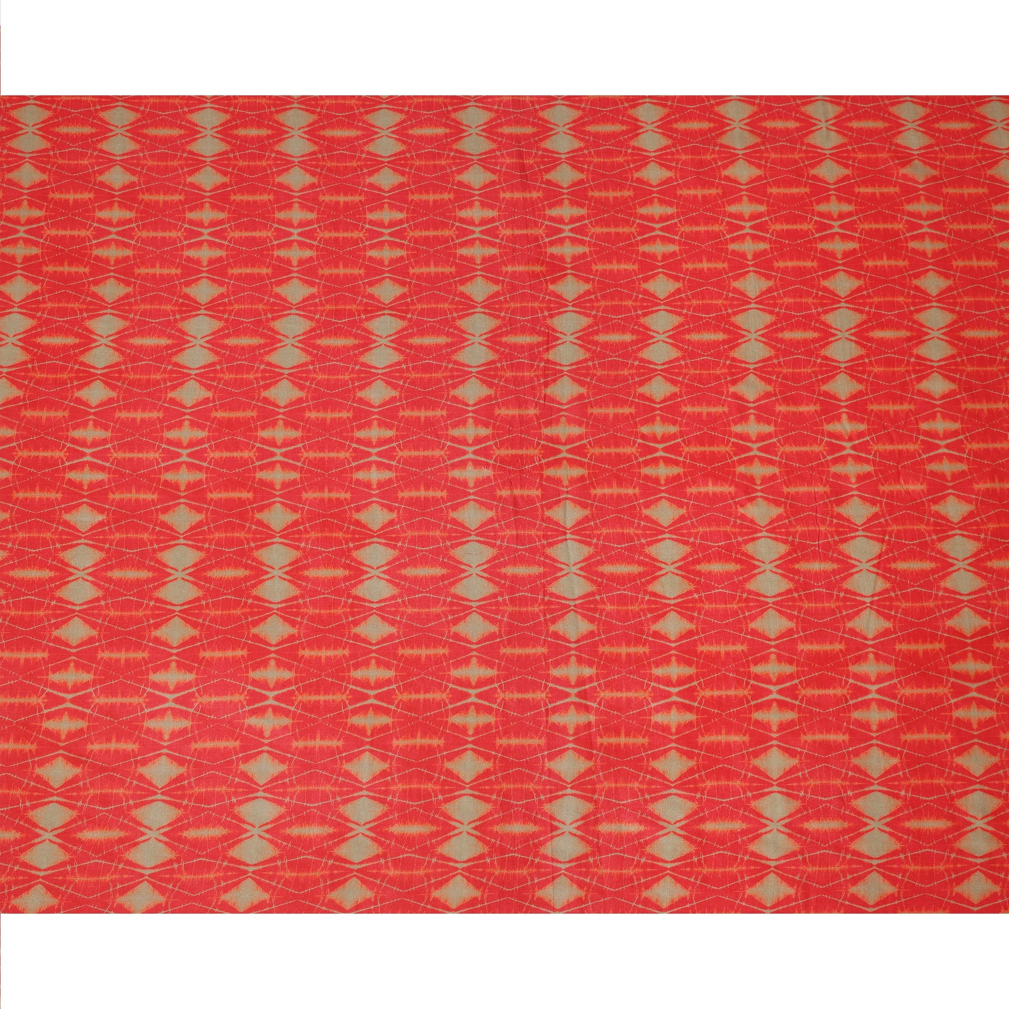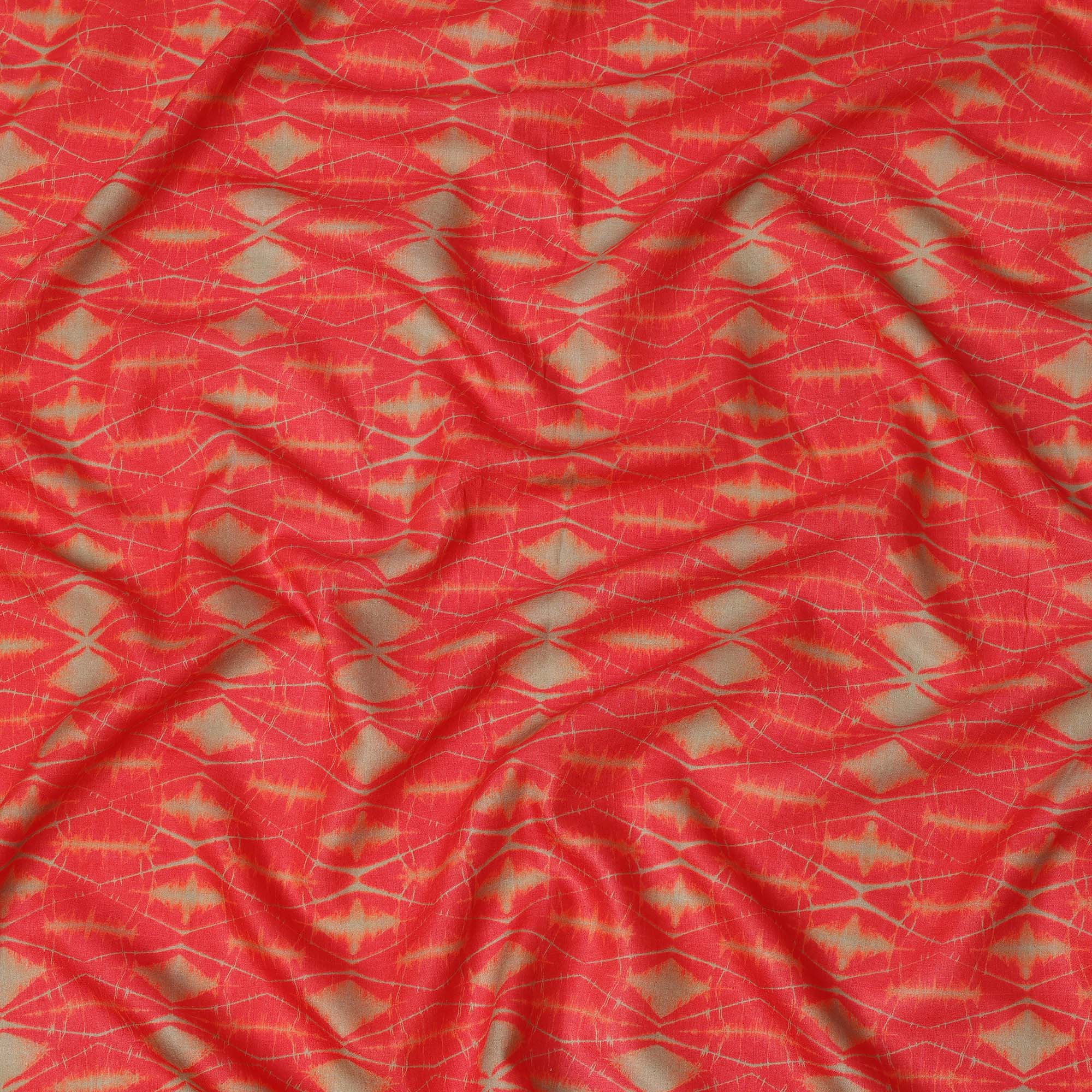 Fiery Red and Beige Shibori Style Abstract Printed Cotton Lawn Fabric, 110 Cms Width, Made in India-D23958