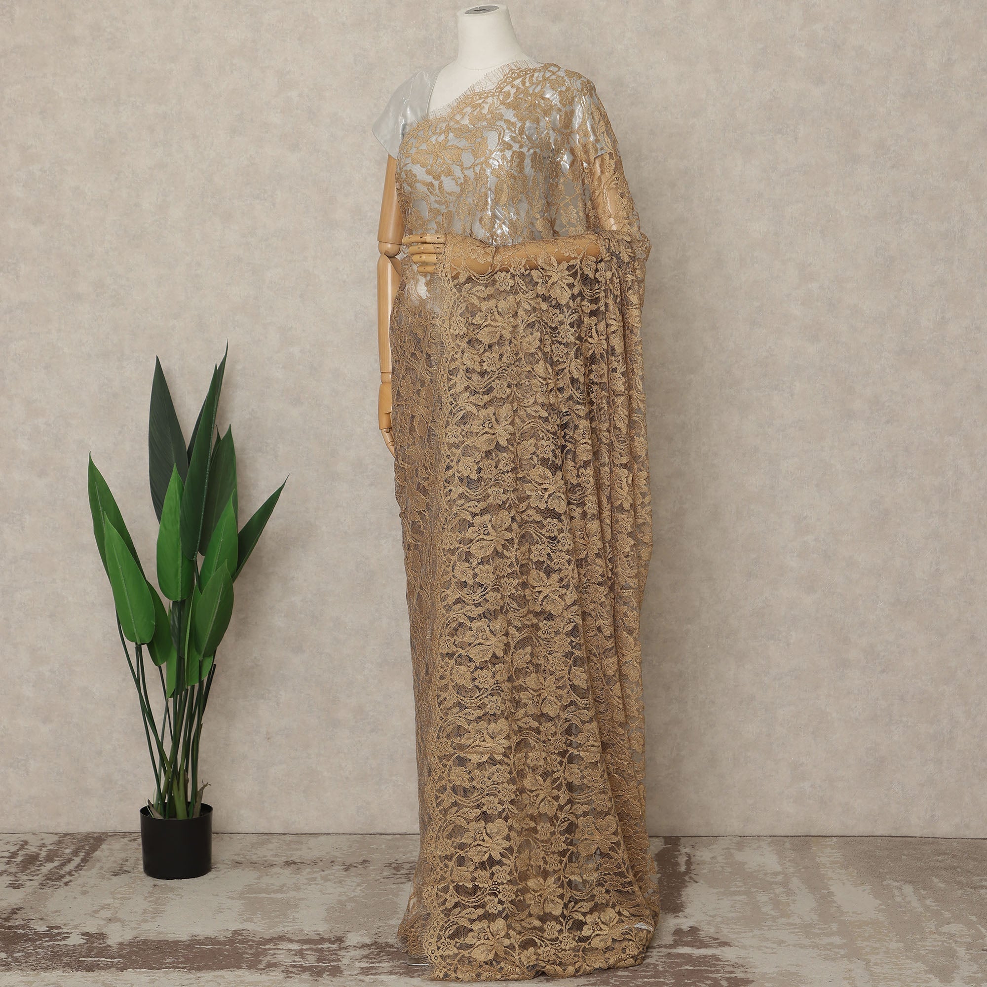 Gold Premium French 2 Tone Chantilly Saree Lace, 5.5 Mtrs Length, 110 Cms Width, Crafted in France -Blouse Not Included-D26719