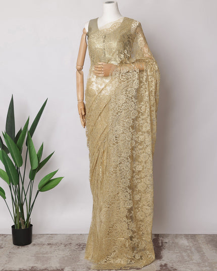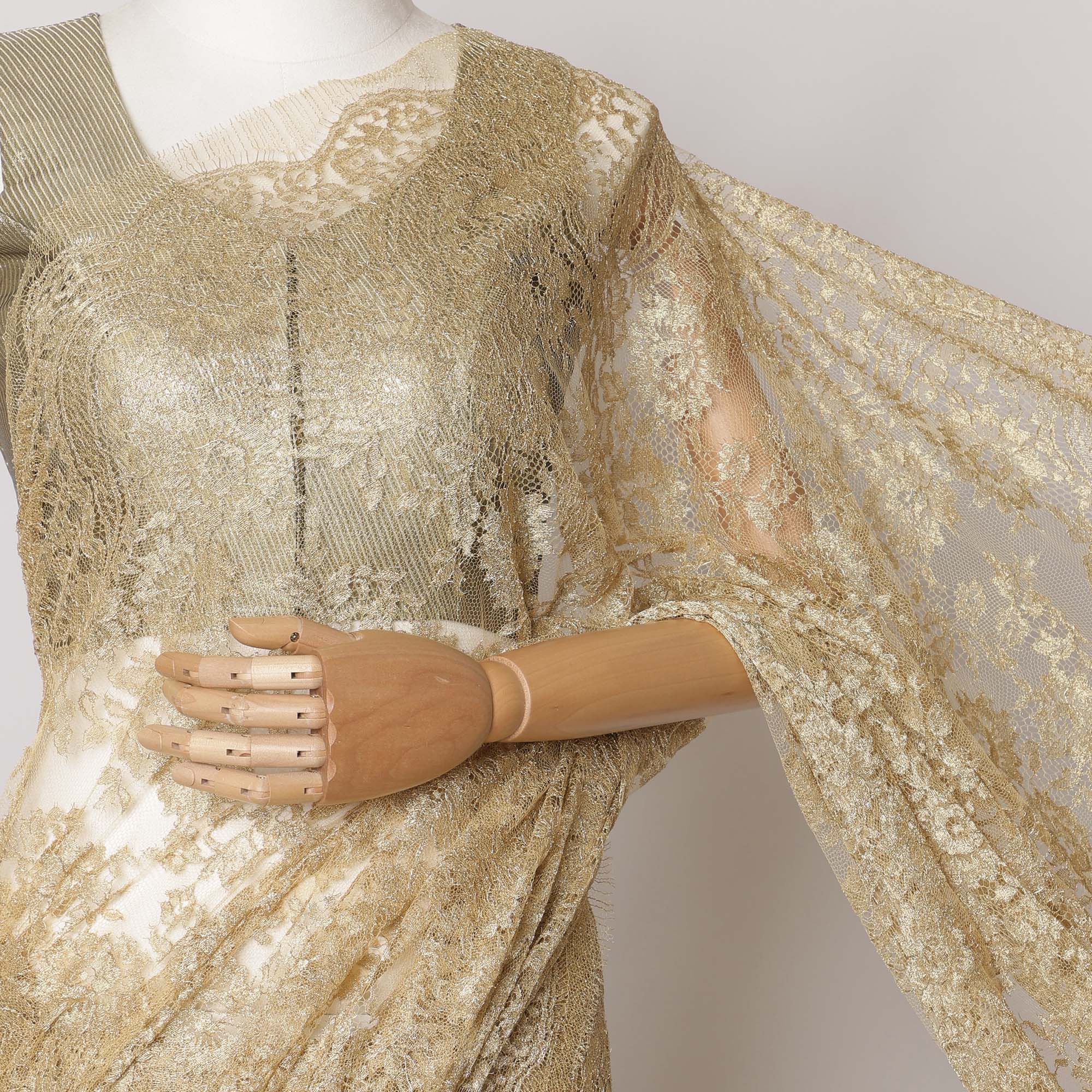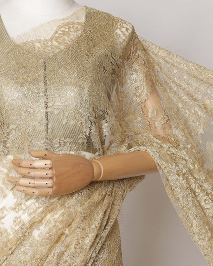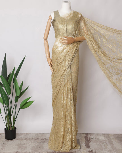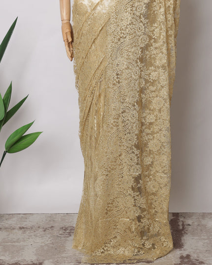Gold Premium French Metallic Chantilly Saree Lace Fabric, 5.5 MetersX110 Cms-D21501