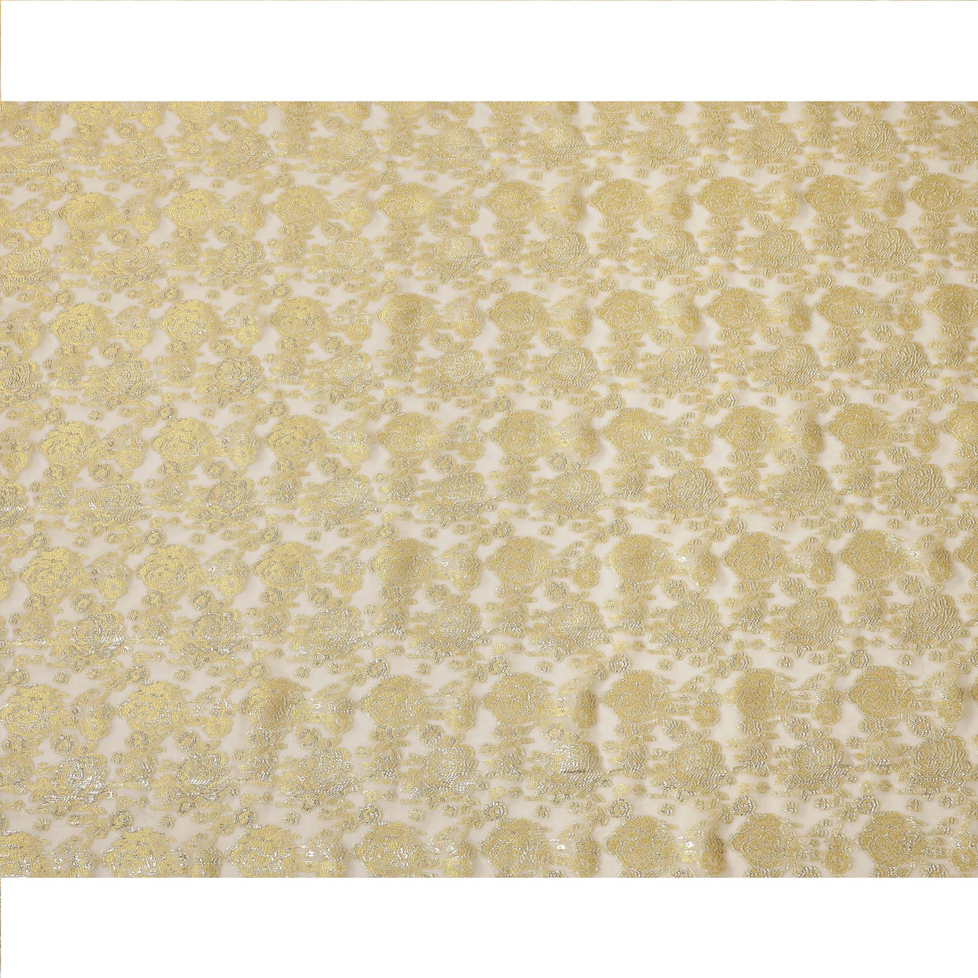 Golden Metallic Lurex Design Premium Silk Chiffon Fabric, 110 Cms Width, Made in South Korea-D25953