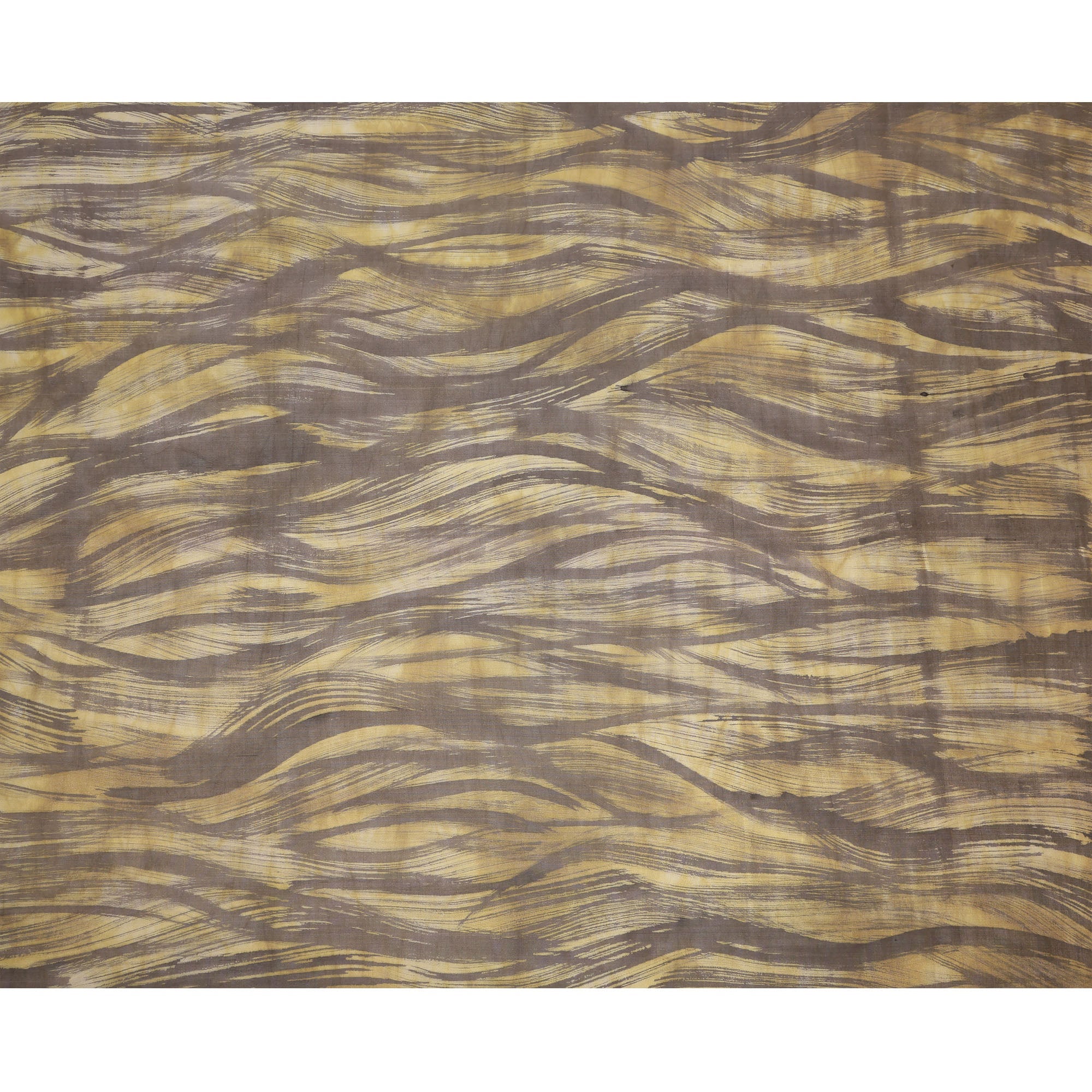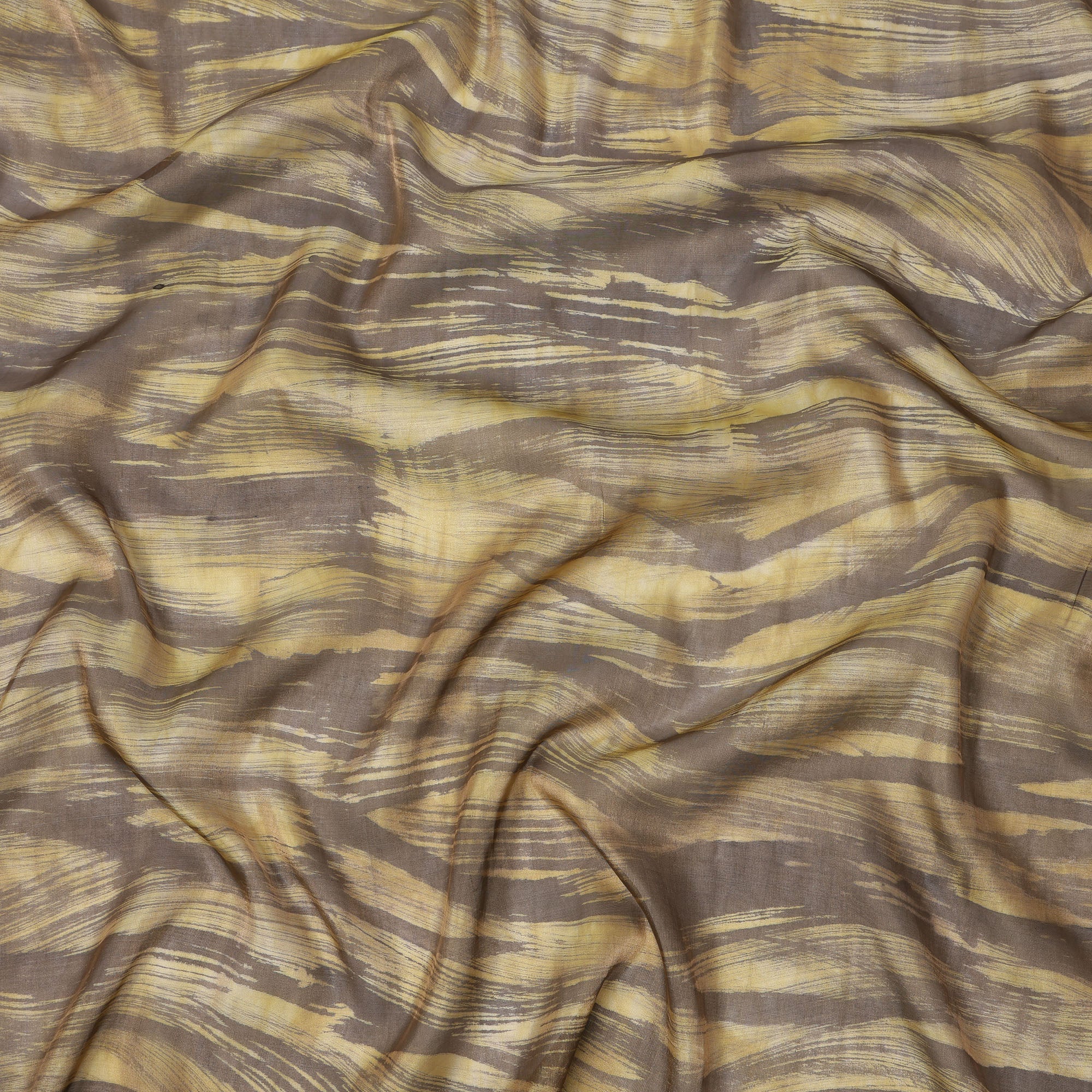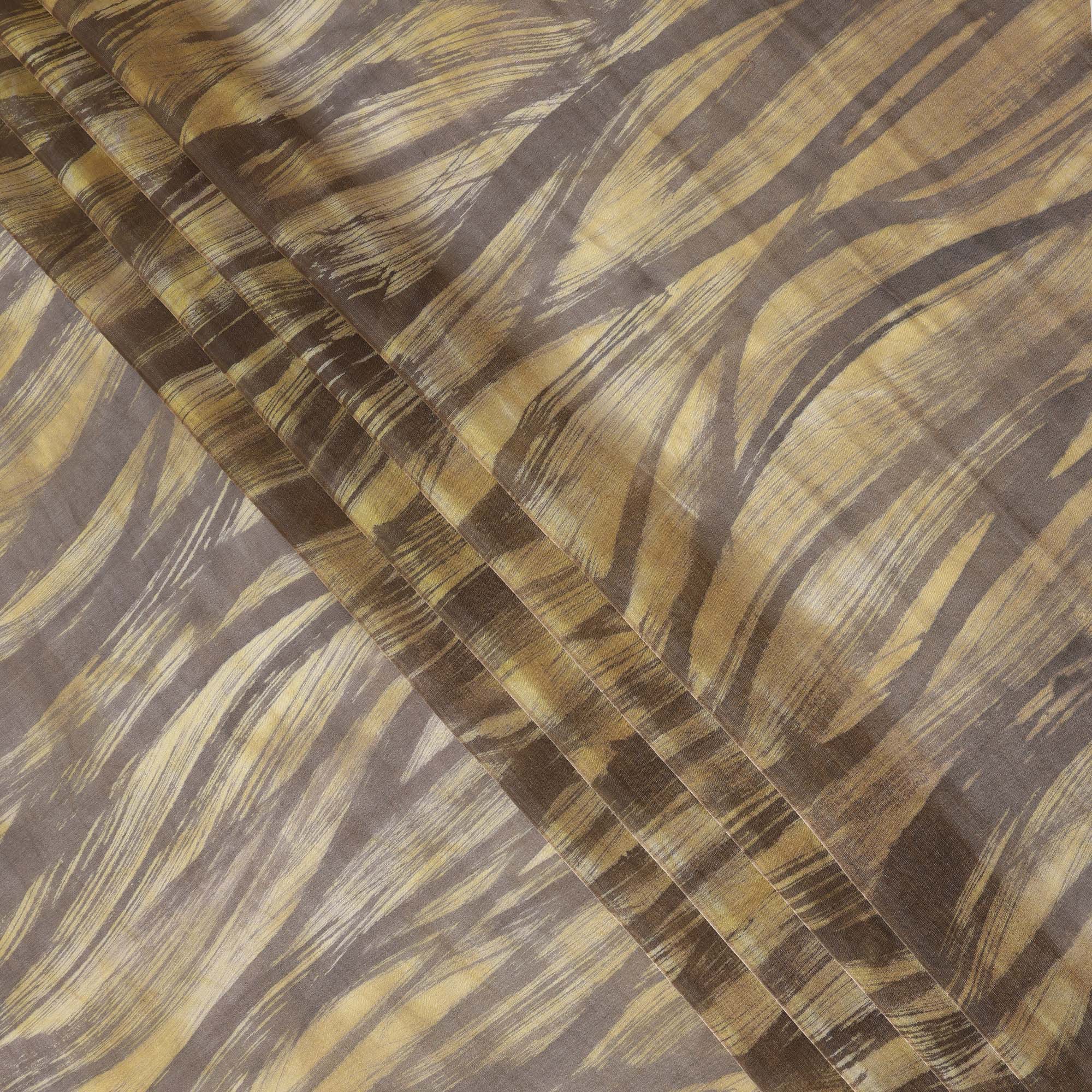 Golden Yellow and Brown Abstract Brushstroke Print Silk Satin Fabric, 110 Cms Width, India-D24667