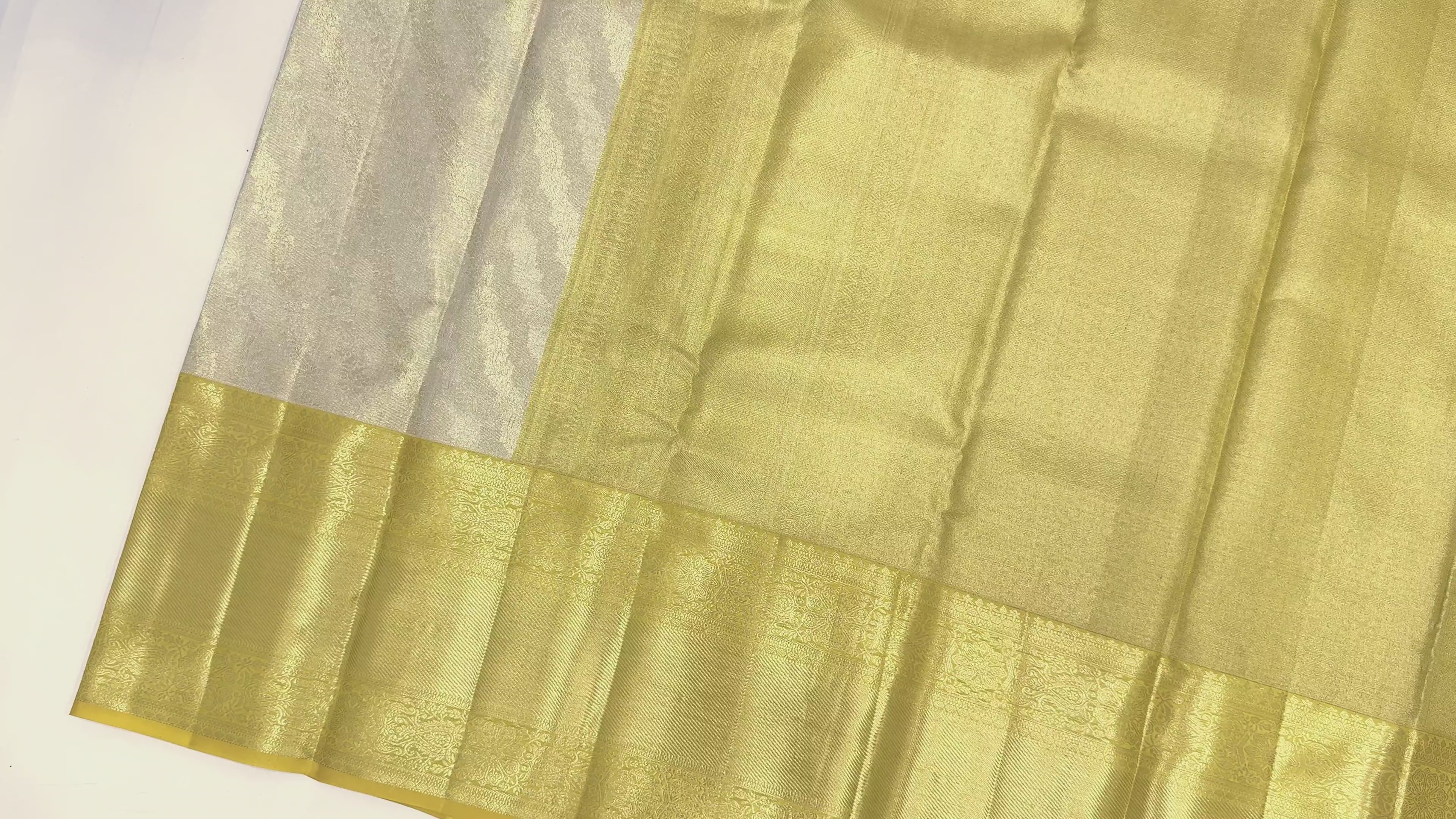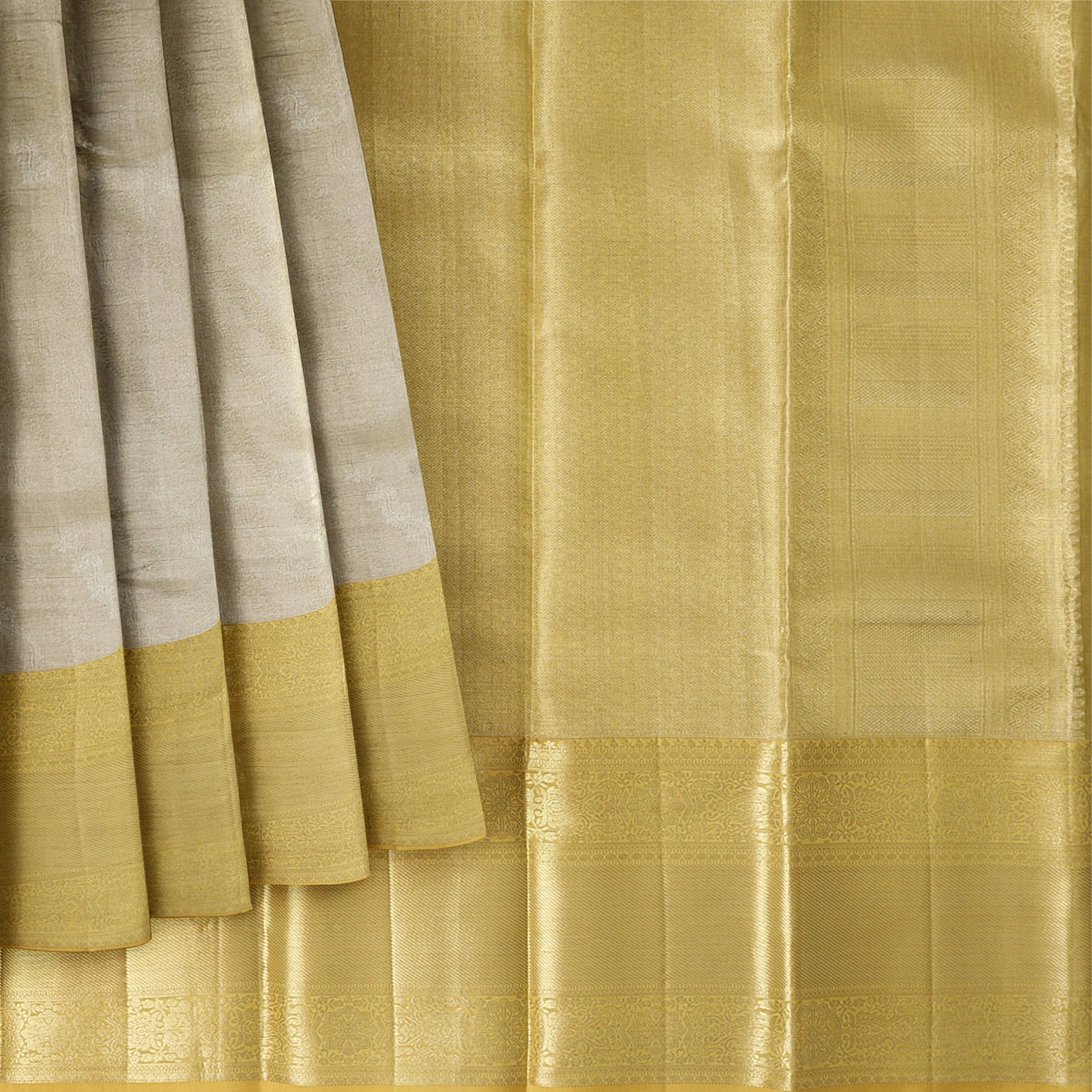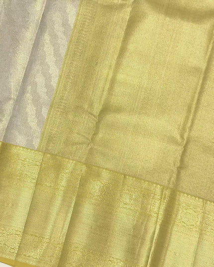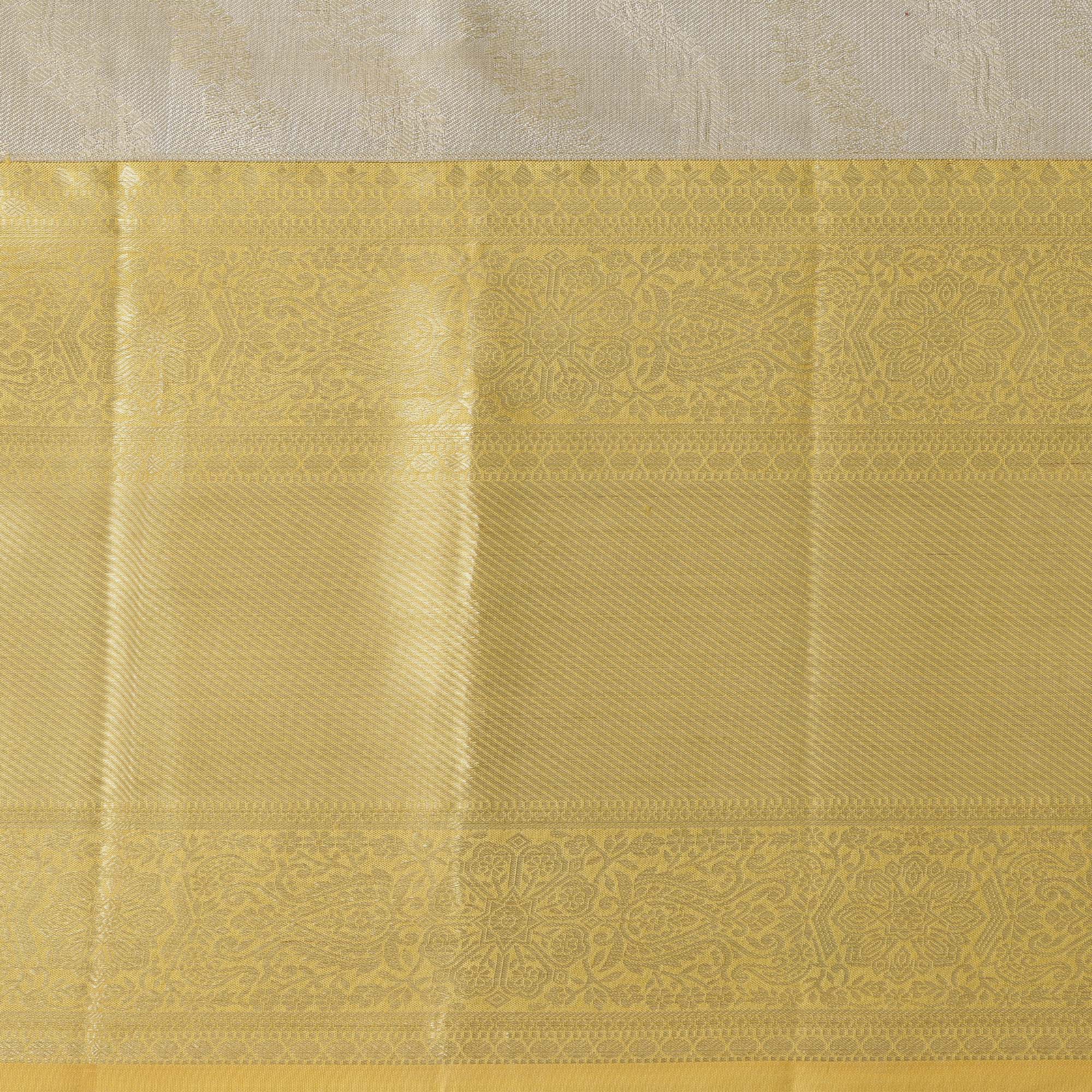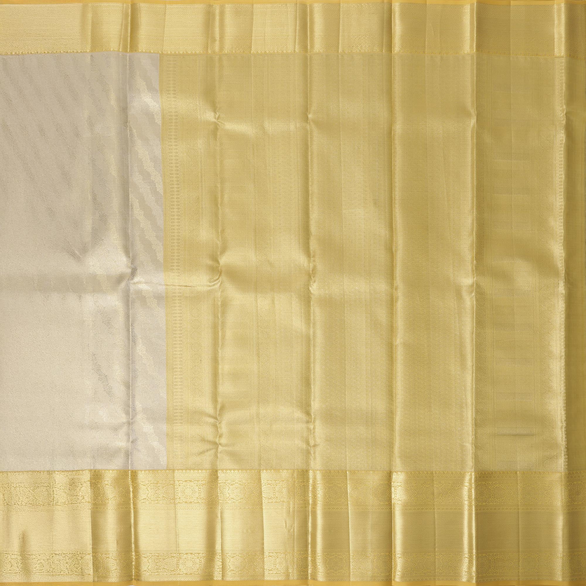 Golden Yellow and Silver Pure Tissue Silk Kanjeevaram Saree with Handwoven Minimalist Stripes and Solid Zari Border, 5.5 Meters with Blouse Piece, Originating from India-D22720