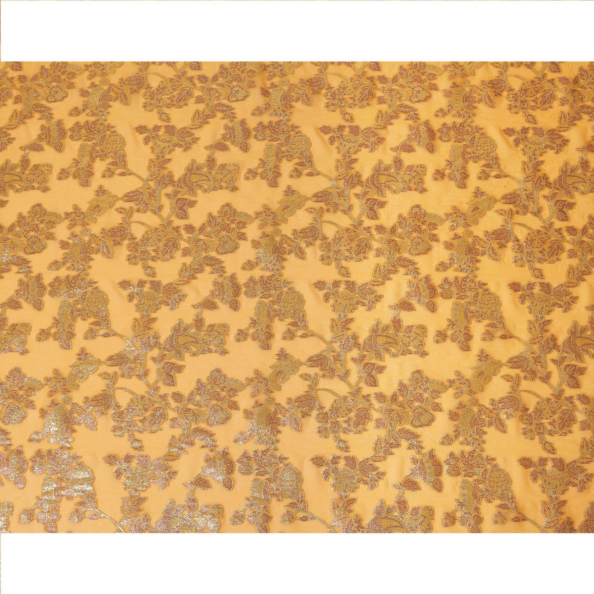 Golden Yellow Floral Patterned Silk Chiffon Fabric with Metallic Lurex, 110 Cms Width, Made in South Korea-D26351