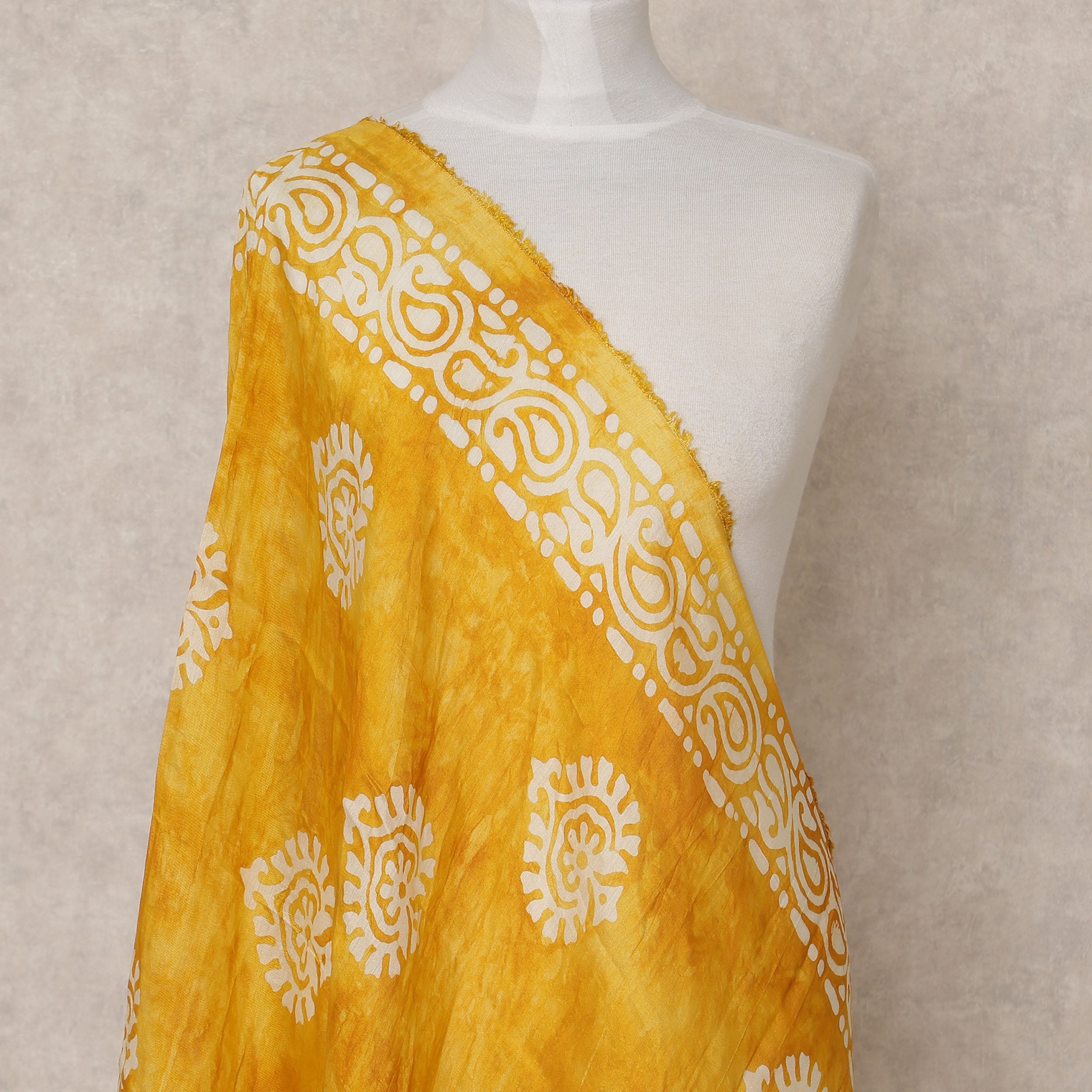 Golden Yellow Handcrafted Ethnic Motif Block Print Premium Cotton Dupatta, 225X85 Cms, Made in India-D25793