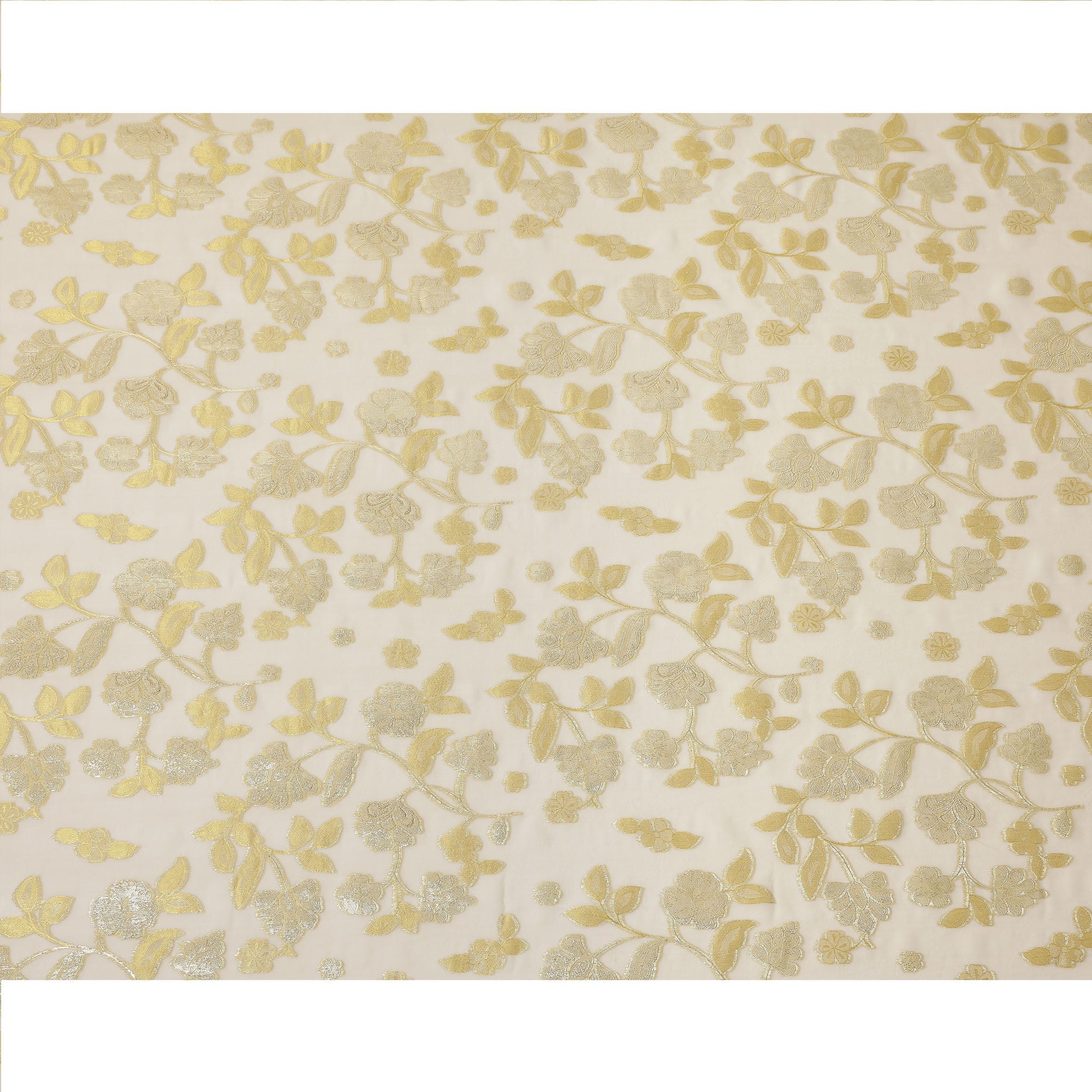 Golden Yellow Metallic Floral Embroidered Design Premium Silk Chiffon Fabric, 110 Cms Width, Made in South Korea-D25972