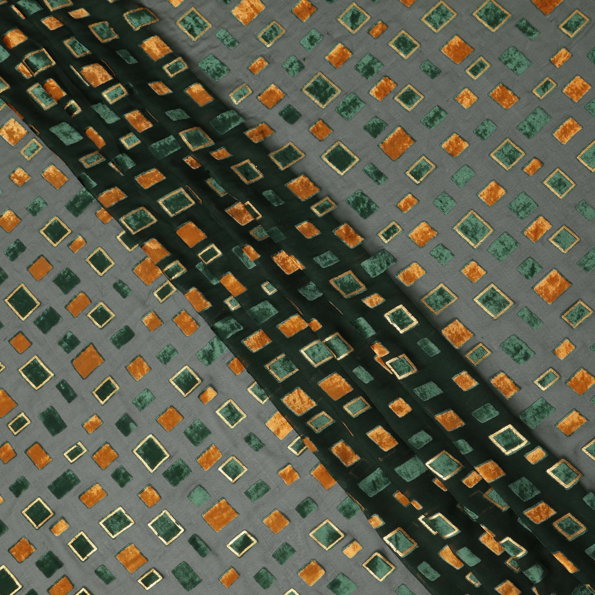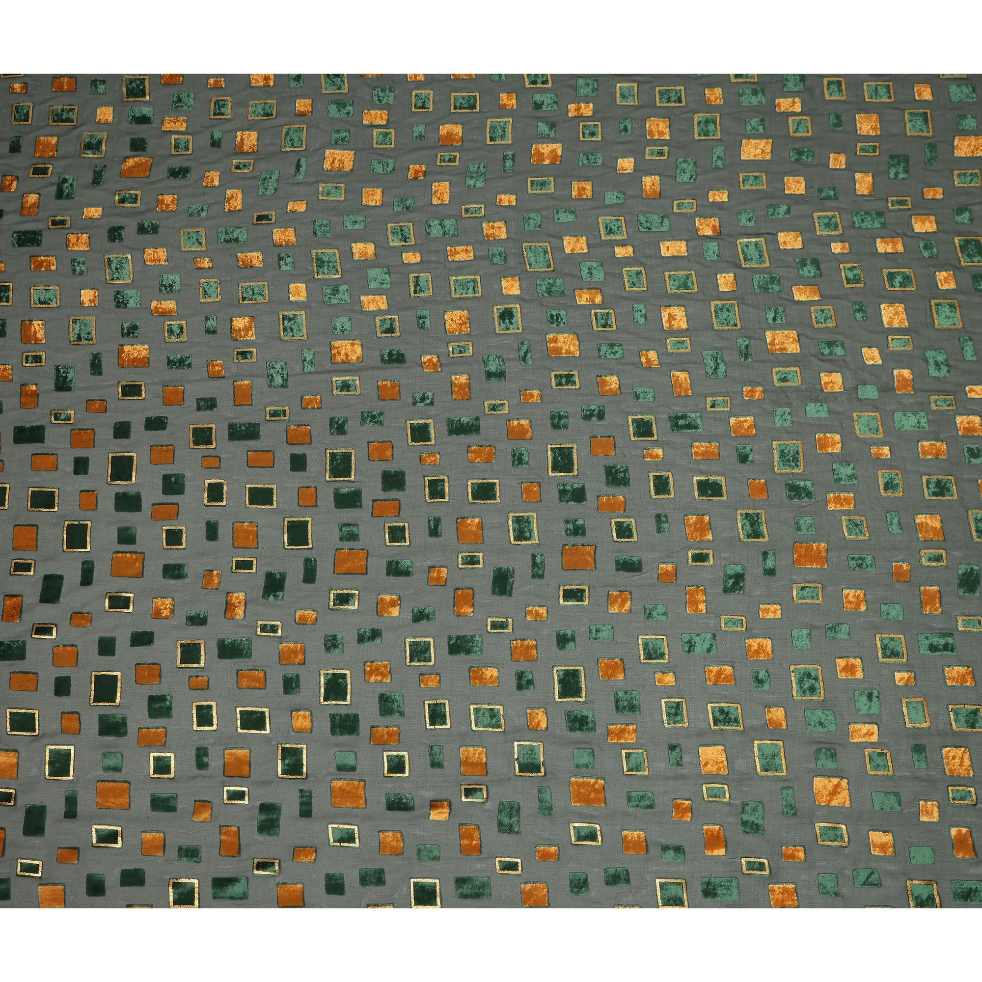 Green and Copper Geometric Square Printed Synthetic Burnout Chiffon Velvet Fabric 140 Cms Width India-D28172
