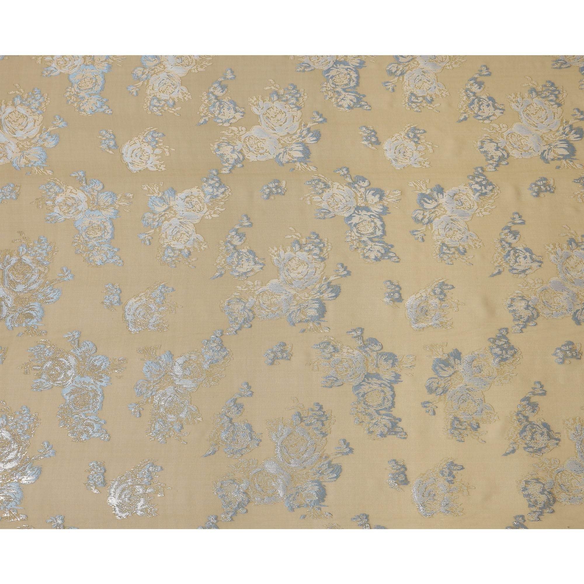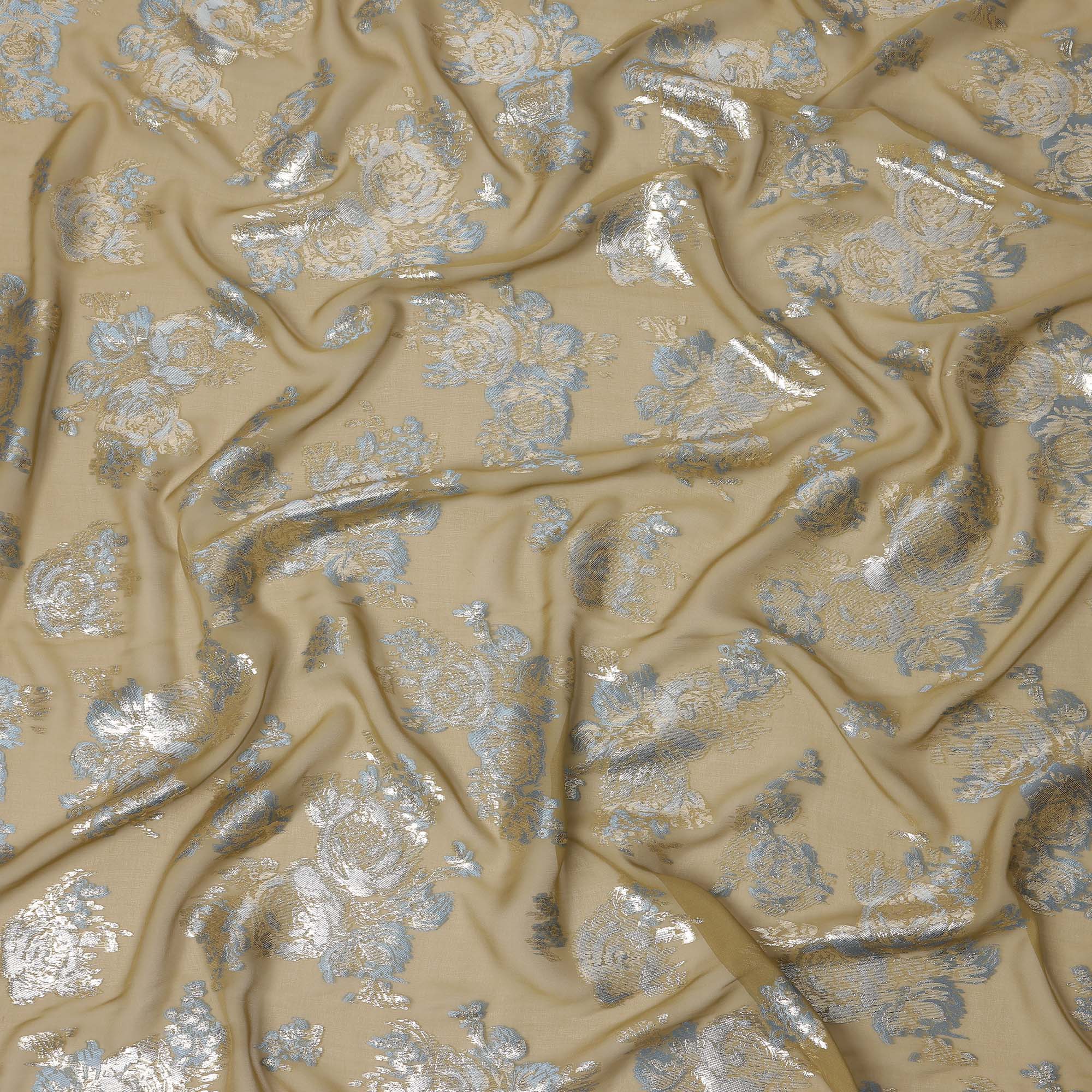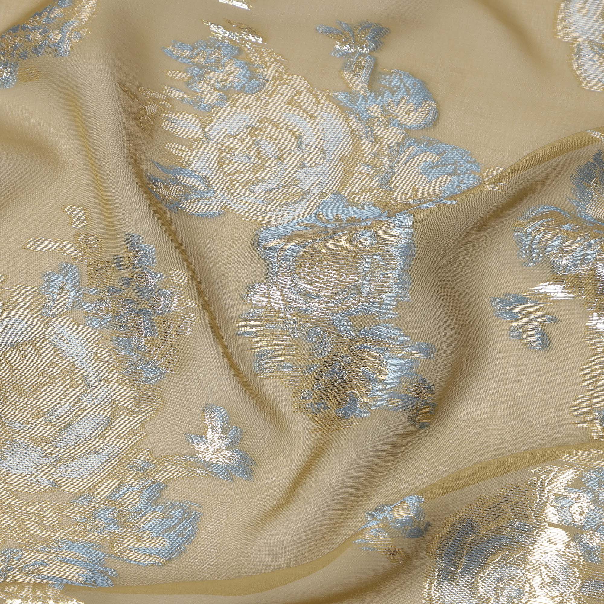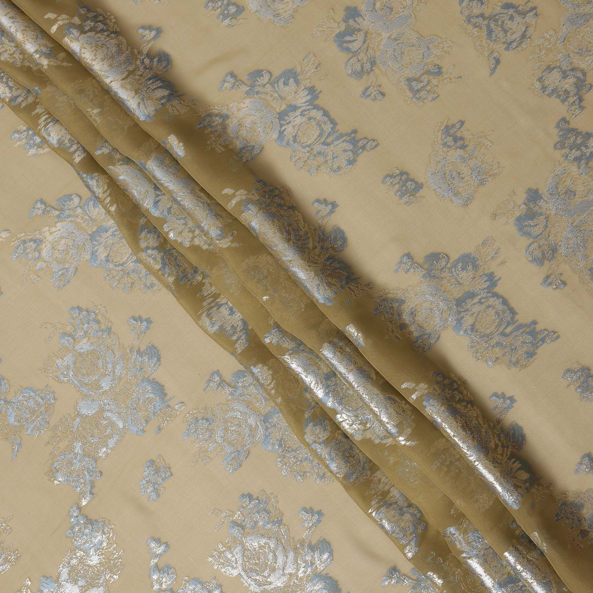 Green Blue Floral Pure Silk Chiffon Fabric with Metallic Lurex, 110 Cms Width, South Korea-D25249