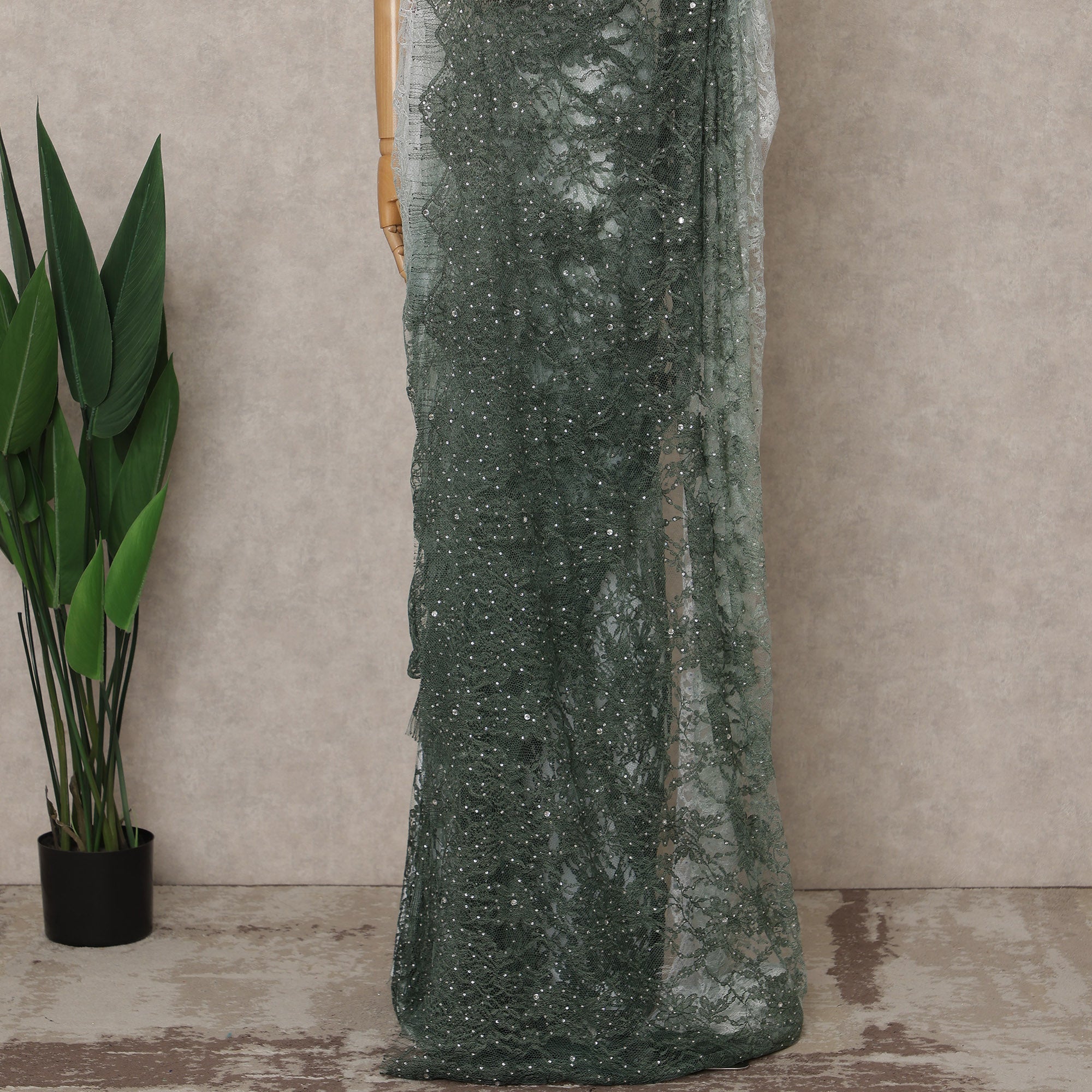 Green Ombre Premium French Ombre Chantilly Saree Lace with Stone Work, Width 110 Cms, 5.5 Mtrs, France, Imported from France & Blouse Not Included-D26594