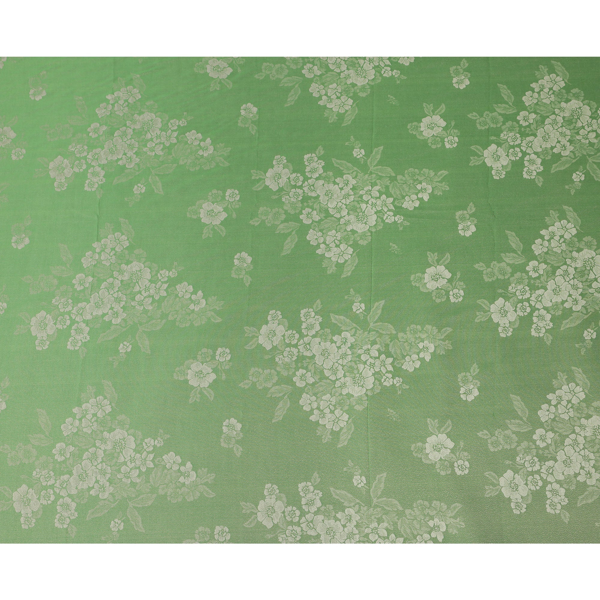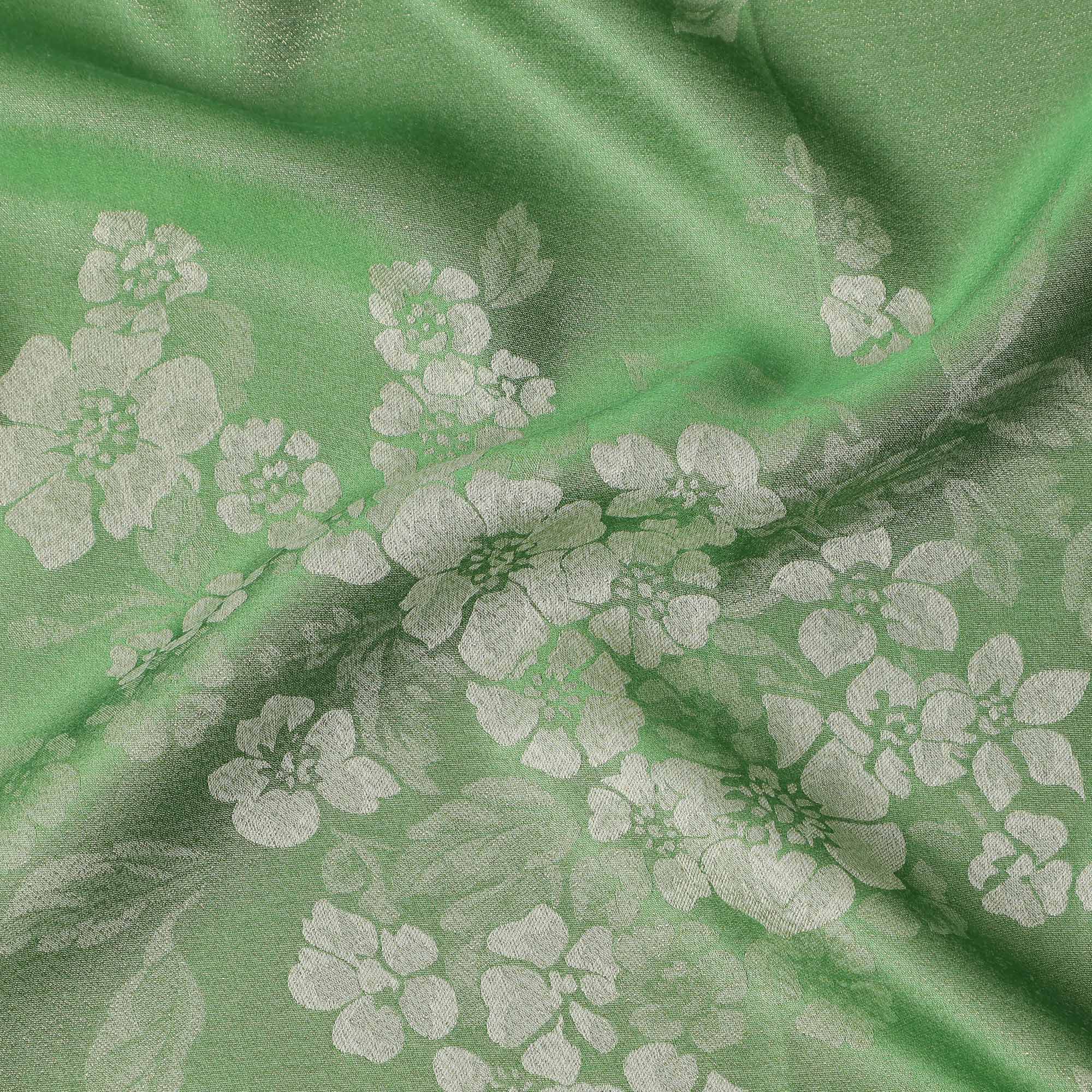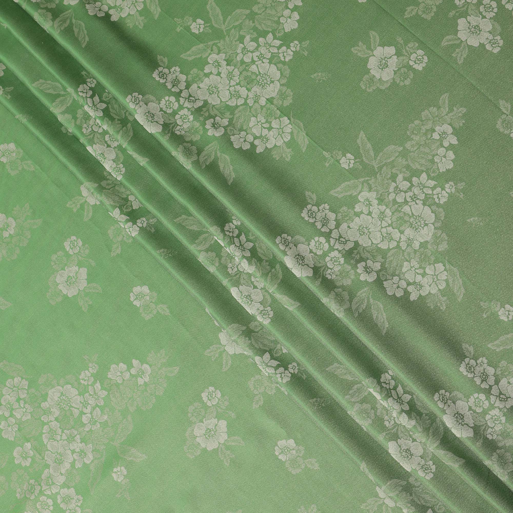 Green Pure Silk Satin Fabric with Floral Metallic Design, 140 Cms Width, South Korea-D25352