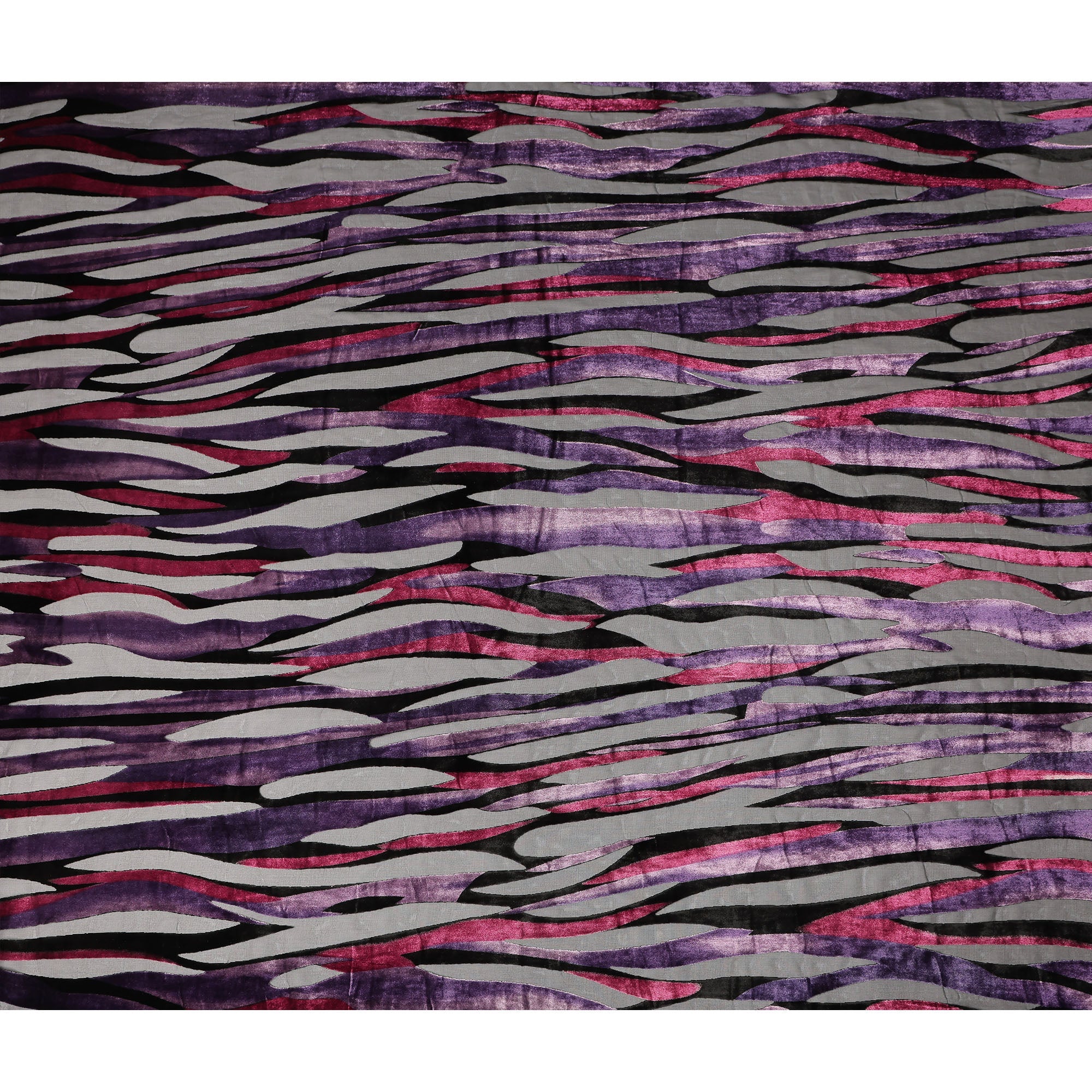 Grey and Purple Abstract Striped Printed Synthetic Burnout Chiffon Velvet Fabric 140 Cms Width China-D28190