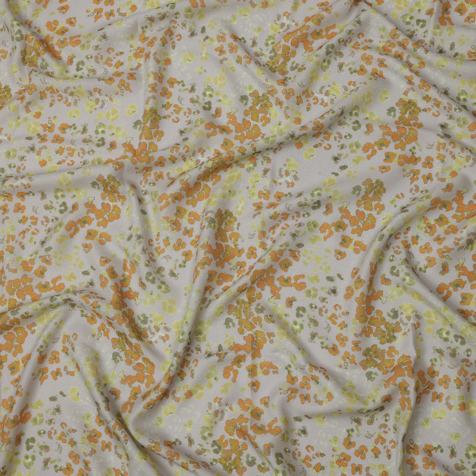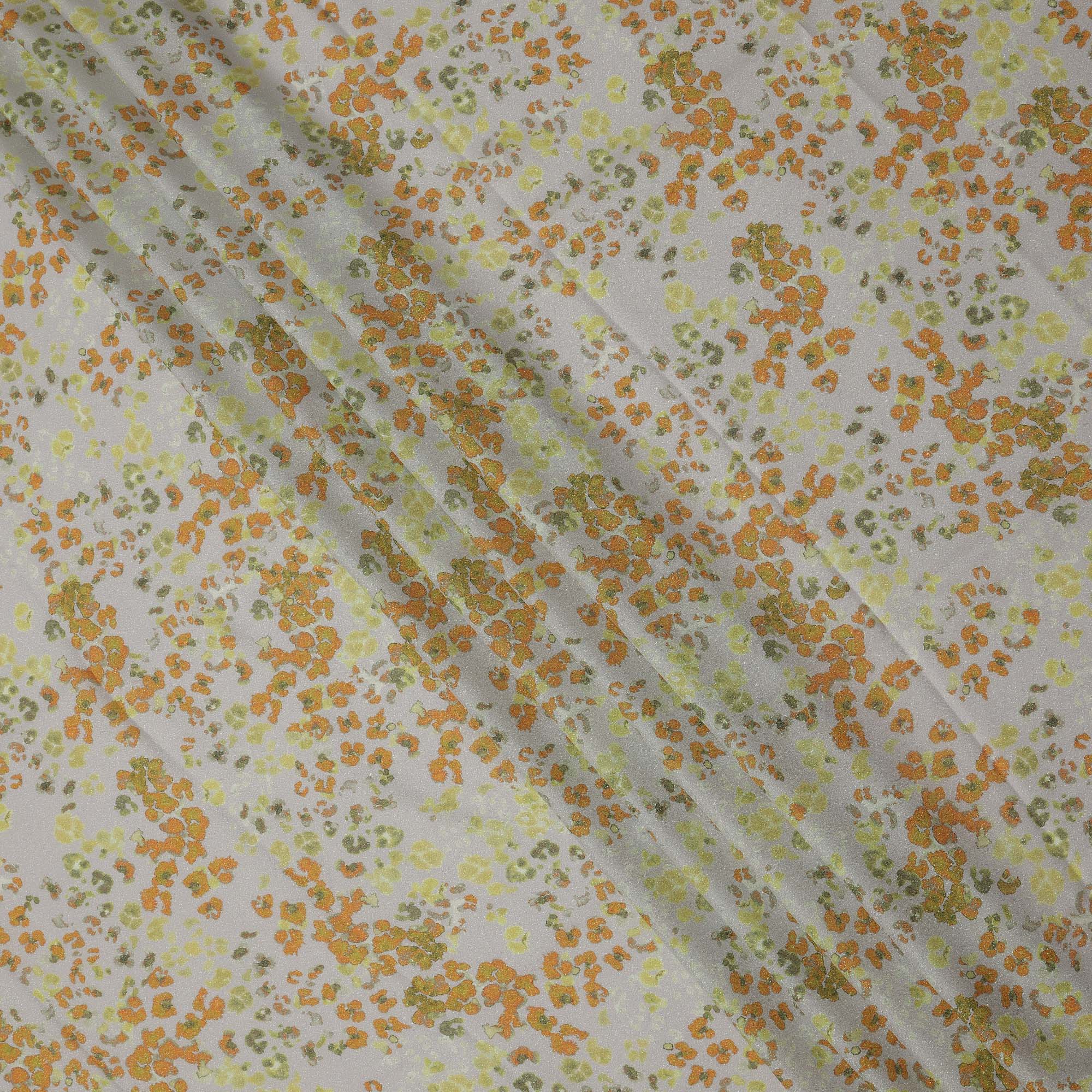 Grey Base Orange and Green Abstract Floral Printed Pure Silk Satin Fabric 140 Cms Width Made in South Korea-D24920