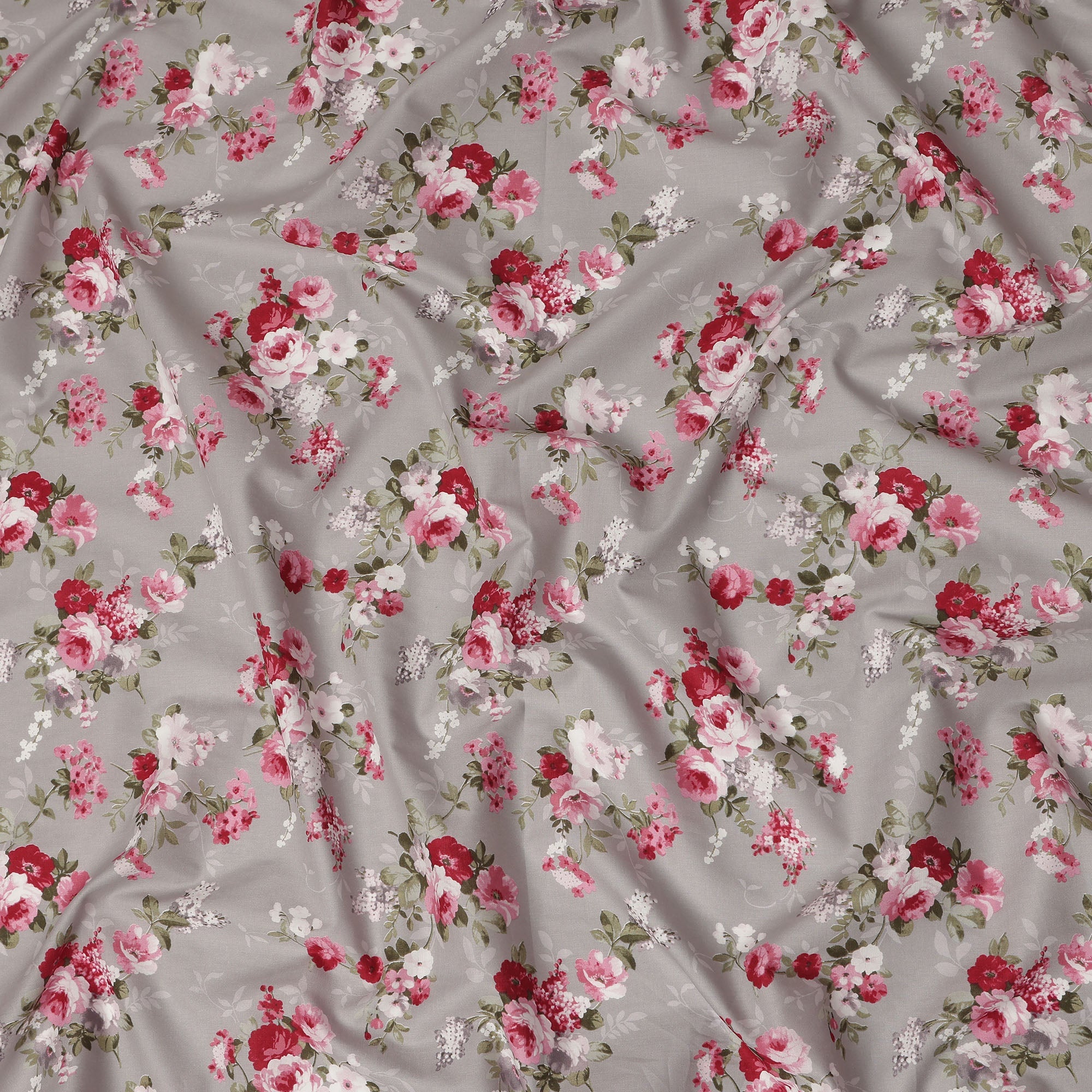 Elegant grey base with delicate floral rose bouquet print