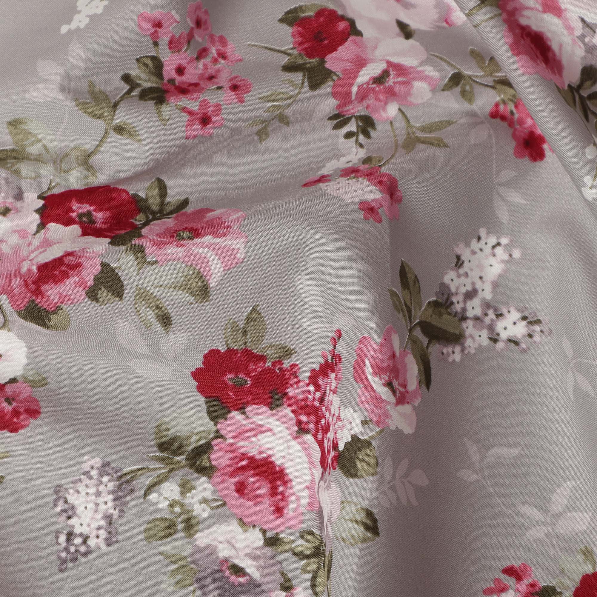 Grey Floral Printed Cotton Lawn Fabric All Over Rose Bouquet Design Soft Sewing Material 4.0 Meters Length 110 Cms Width India-D27647