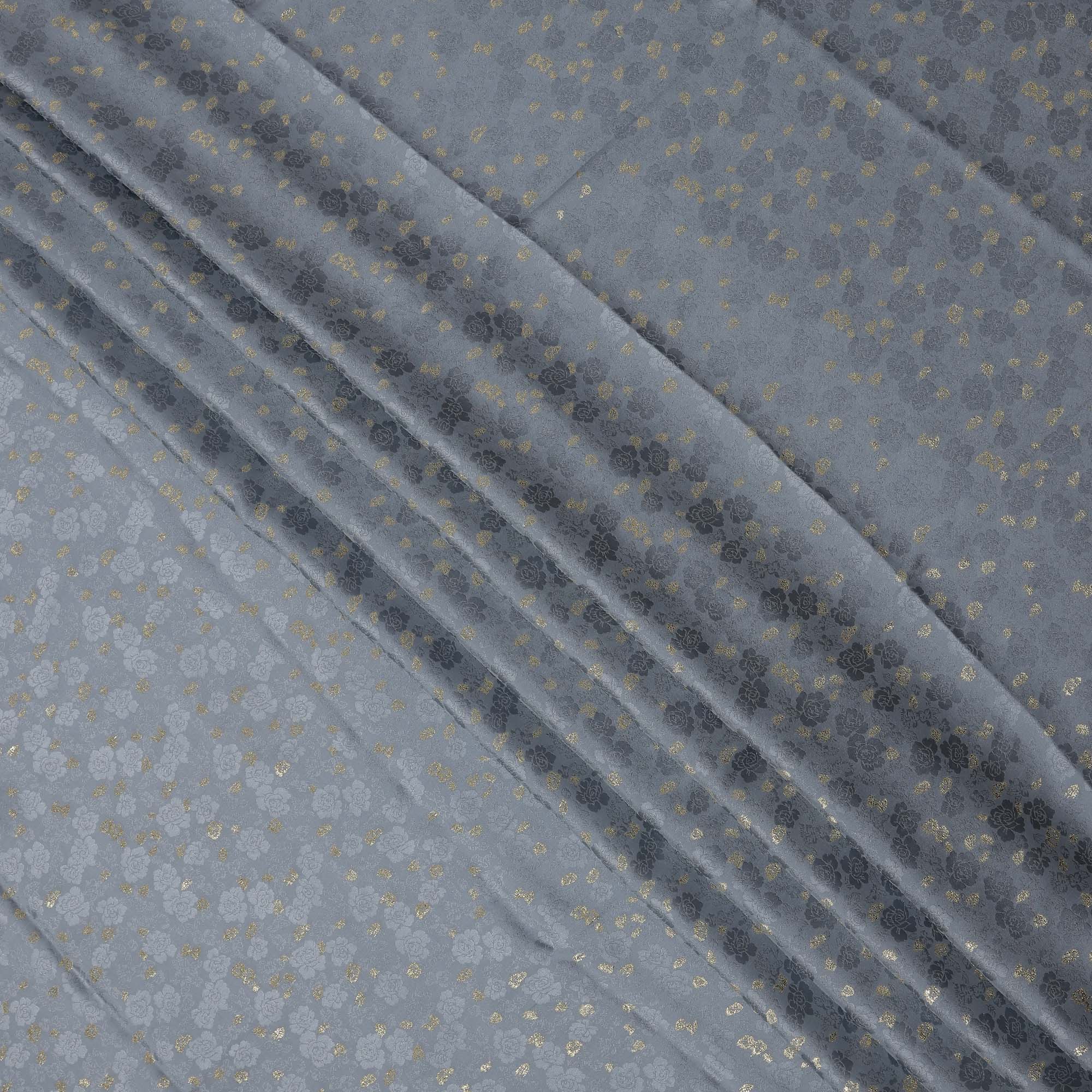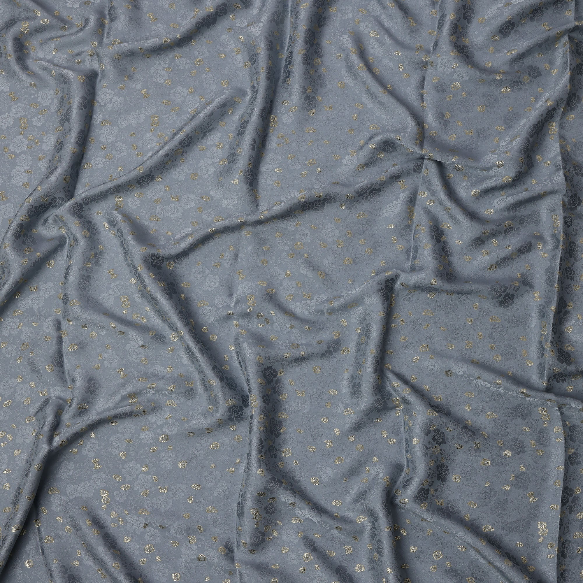 Grey Metallic Motif Pure Silk Satin Fabric 140 Cms Width Made in India-D24931
