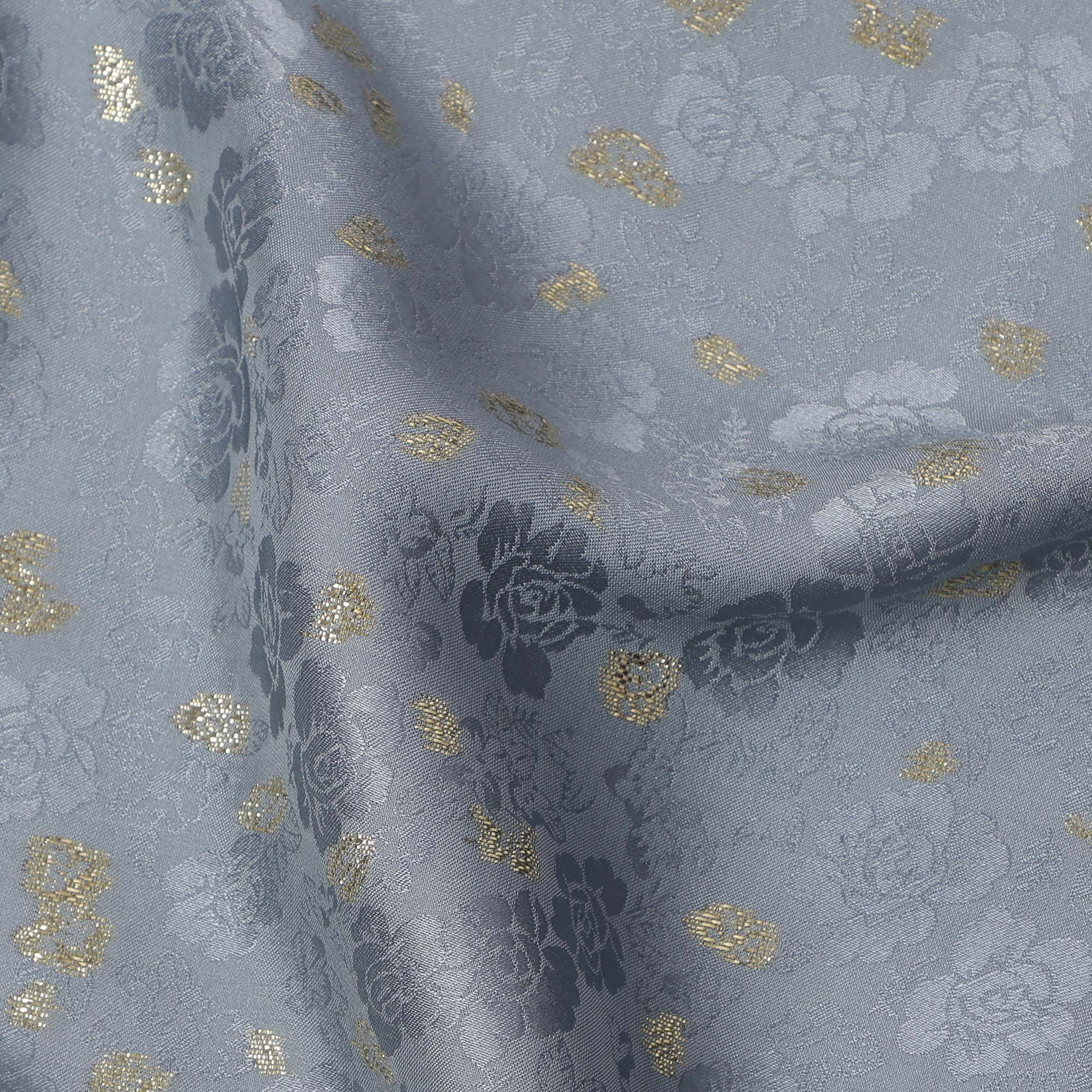 This grey metallic motif pure silk satin fabric is an elegant choice that beautifully balances sophistication and modern design. The subtle grey base exudes understated charm, while the shimmering metallic motifs scattered across the fabric enhance its luxurious appeal with a delicate sparkle. Crafted in pure silk satin, this fabric features a natural sheen, smooth finish, and graceful drape, making it suitable for high-end couture, sarees, gowns, festive wear, and designer ensembles. With a generous width of 140 cms, it provides ample scope for versatile designs and creative expressions. Made in India, this fabric reflects fine craftsmanship, superior weaving, and premium silk quality, making it a must-have for those who seek timeless style with a contemporary touch.