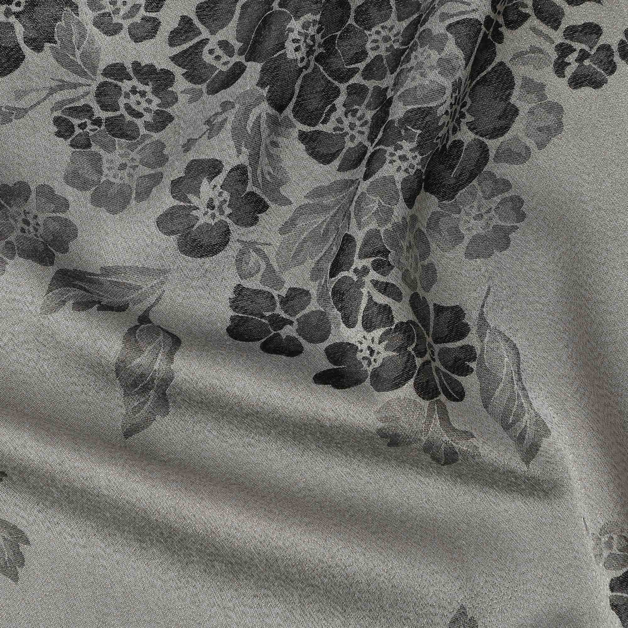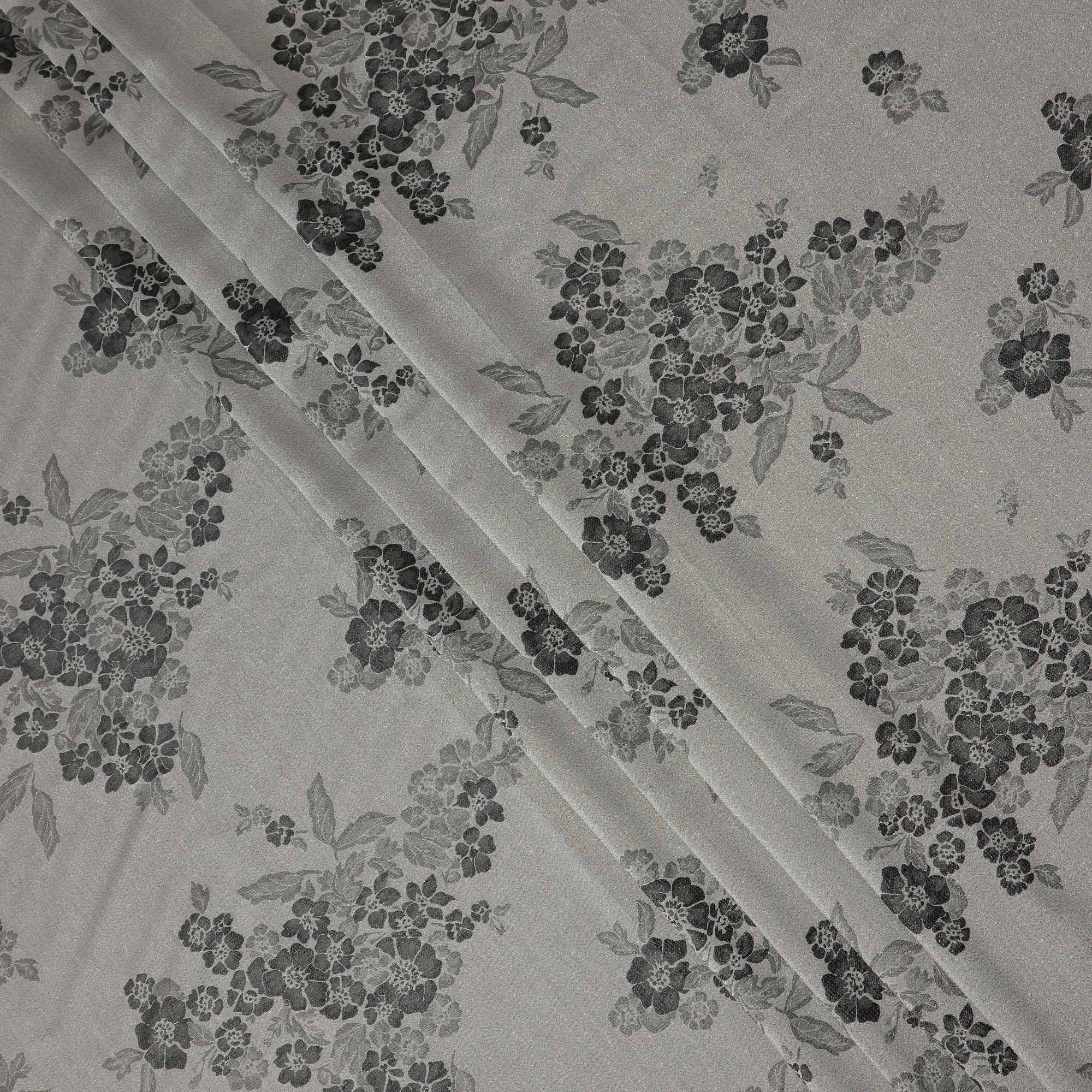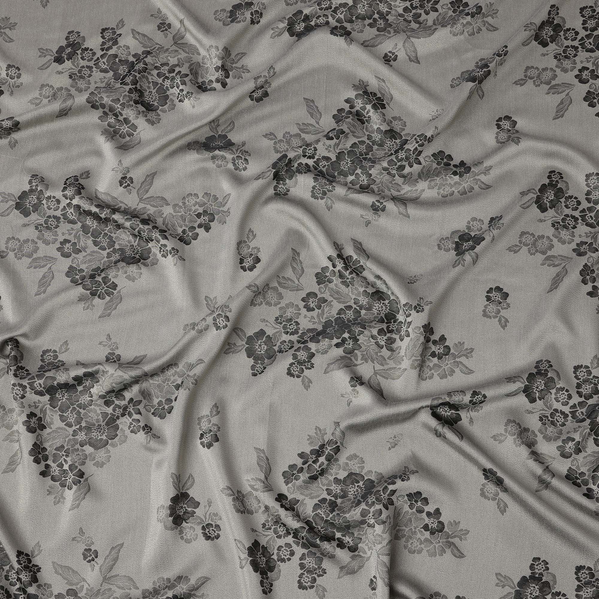 Grey Pure Silk Satin Fabric with Floral Metallic Design, 140 Cms Width, South Korea-D25349