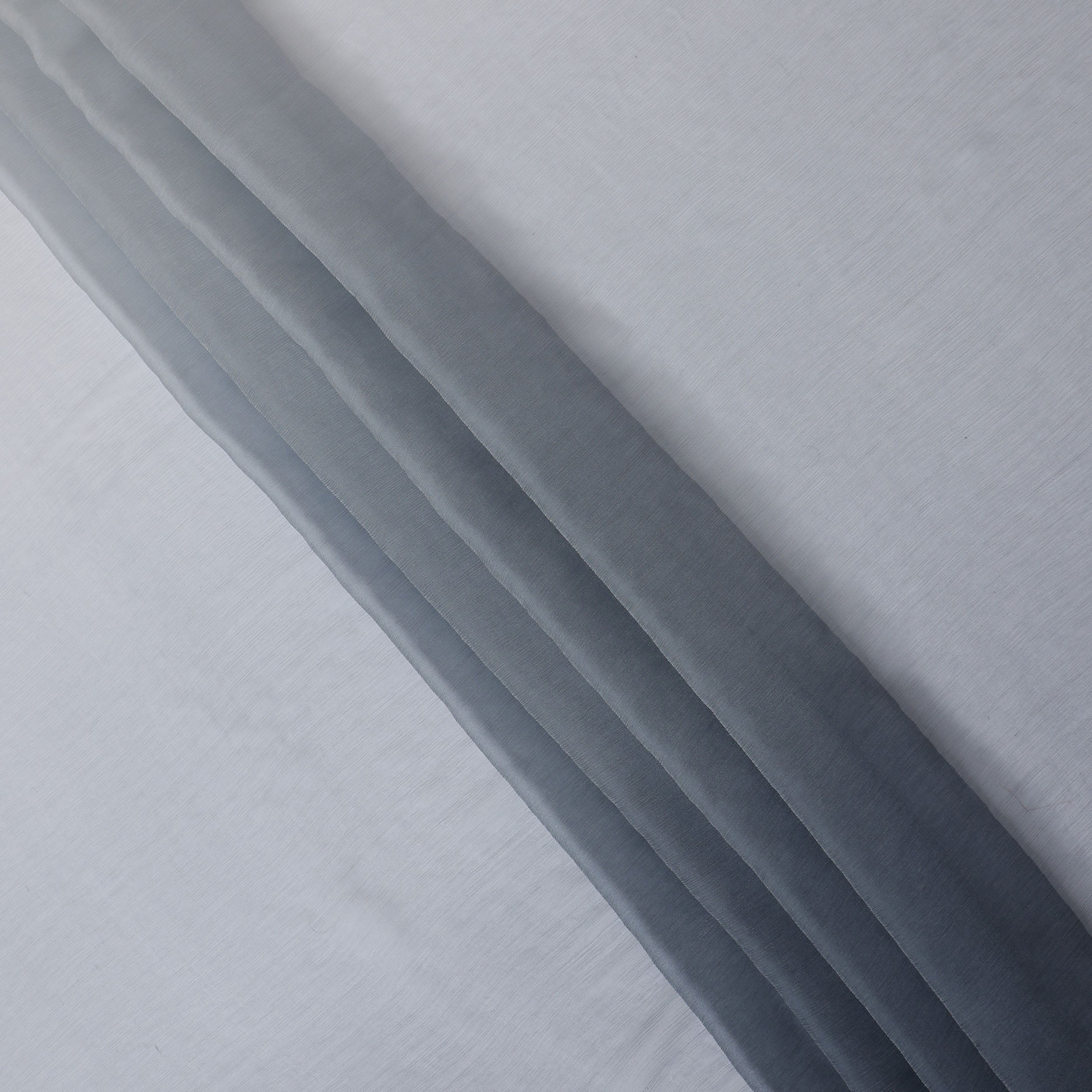 This grey to white ombre wrinkle silk chiffon fabric from South Korea captures the essence of refined elegance and modern minimalism. The beautifully blended gradient moves seamlessly from a soft grey tone into a crisp white, creating a serene and sophisticated aesthetic. Crafted from premium silk chiffon, the fabric has a delicate crinkled texture that enhances its airy, lightweight feel and adds depth to its natural sheen. Its semi-sheer structure allows for graceful layering and fluid draping, making it perfect for sarees, scarves, evening gowns, dupattas, and other couture applications. The ombre effect is achieved through meticulous dyeing techniques that ensure smooth transitions and visual harmony. With a width of 110 cms, this fabric offers flexibility for intricate design and creative garment construction. Soft to the touch and effortlessly elegant, this wrinkle silk chiffon fabric is a true reflection of fine Korean craftsmanship and timeless style.