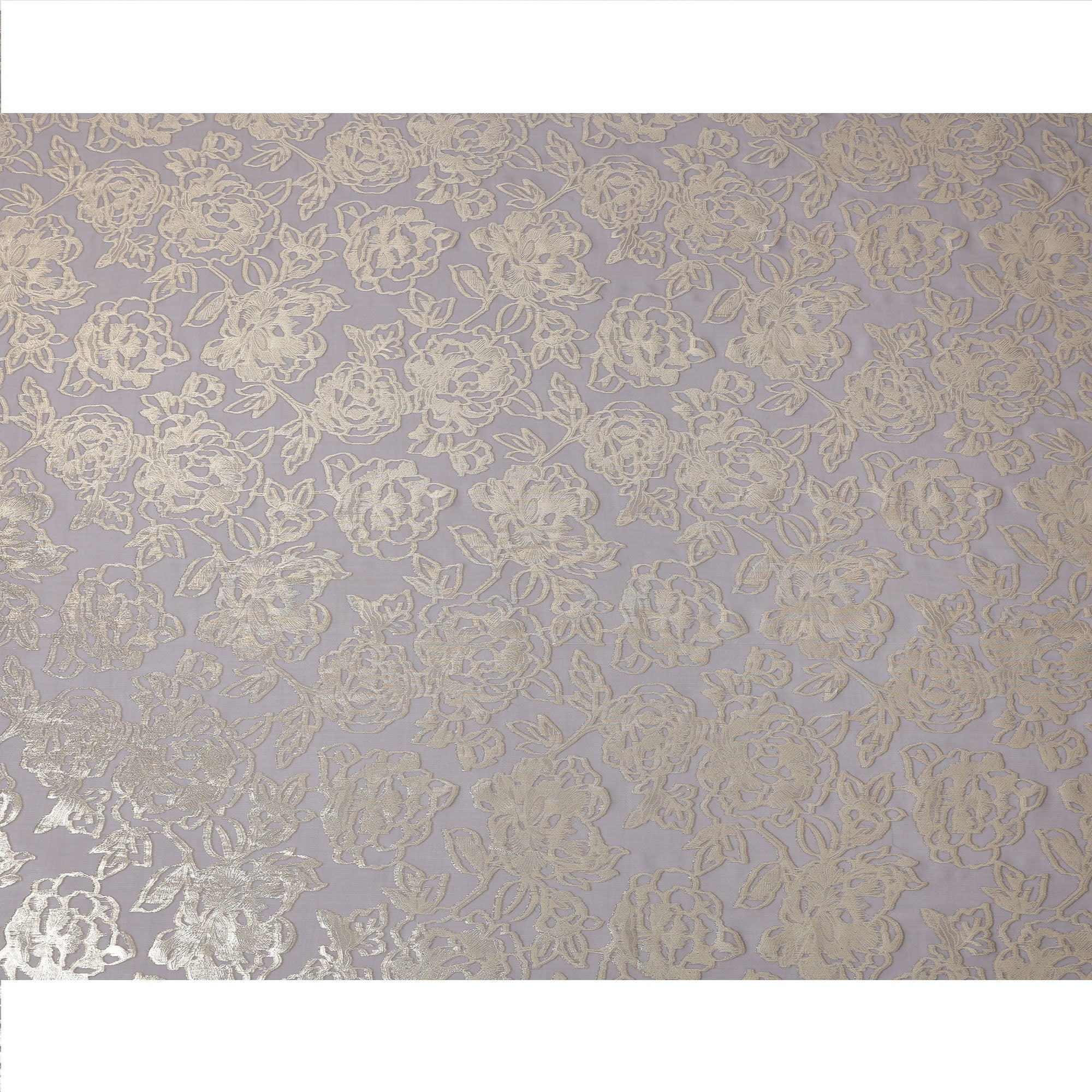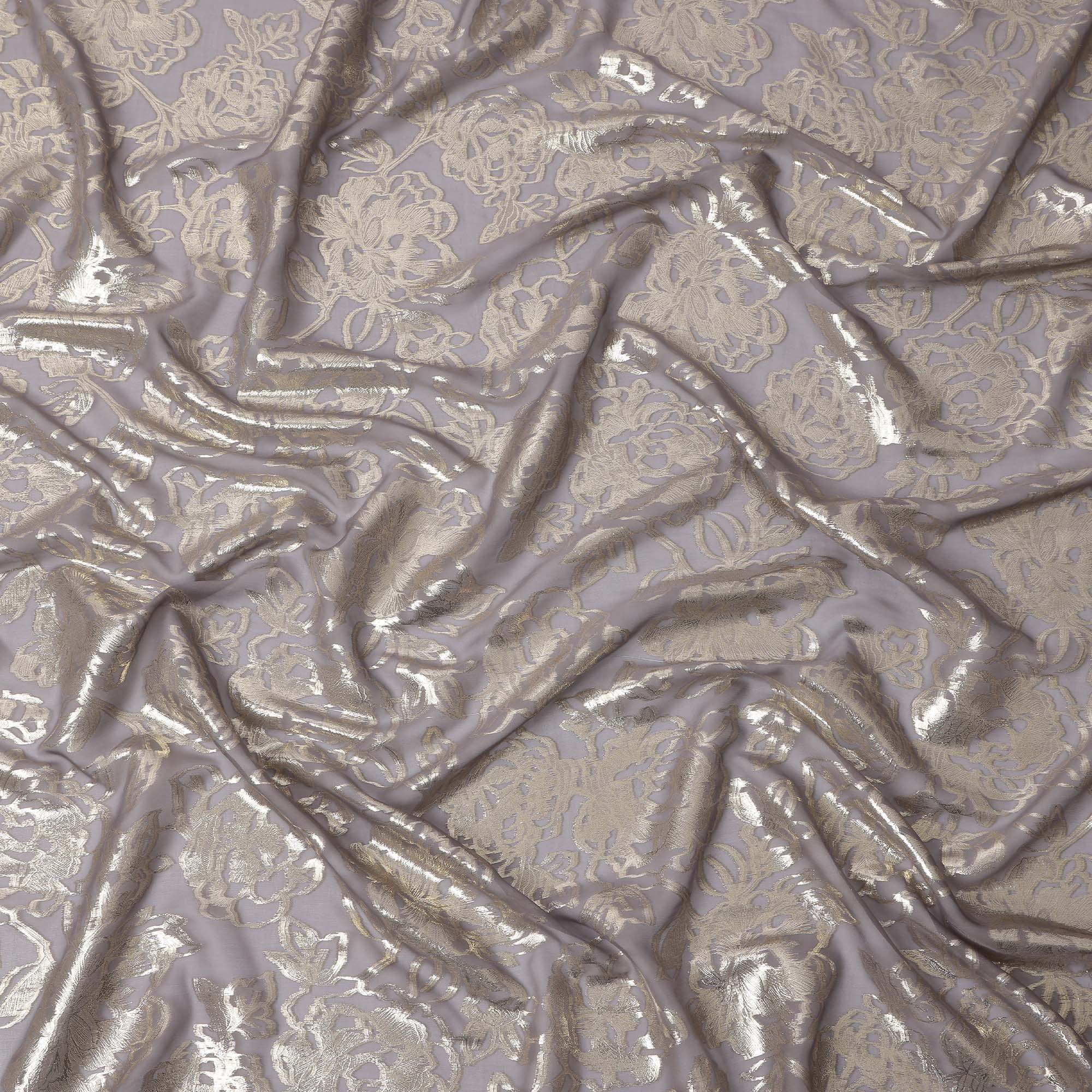 Greyish Gold Metallic Floral Design Premium Silk Chiffon Fabric, 110 Cms Width, Made in South Korea-D25965