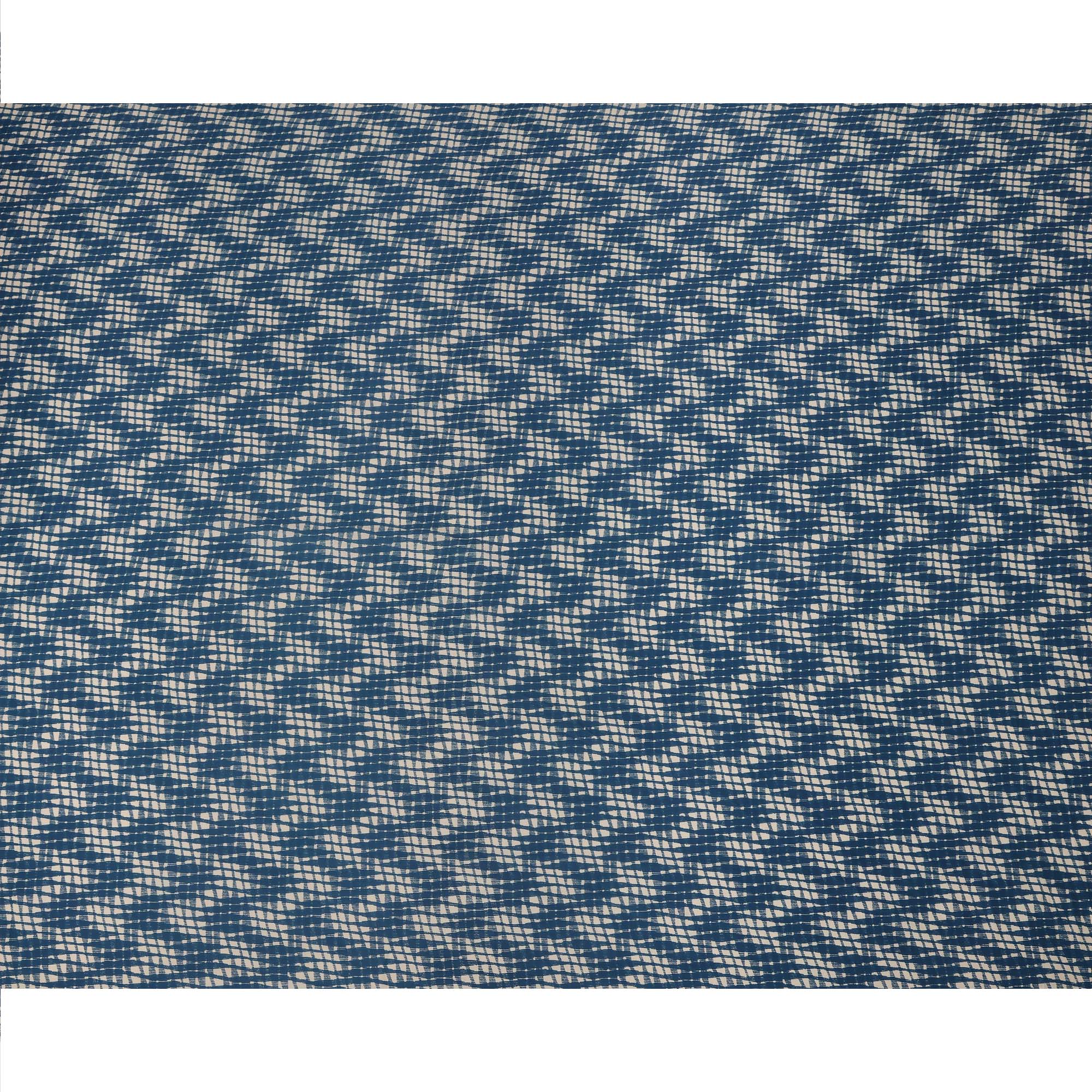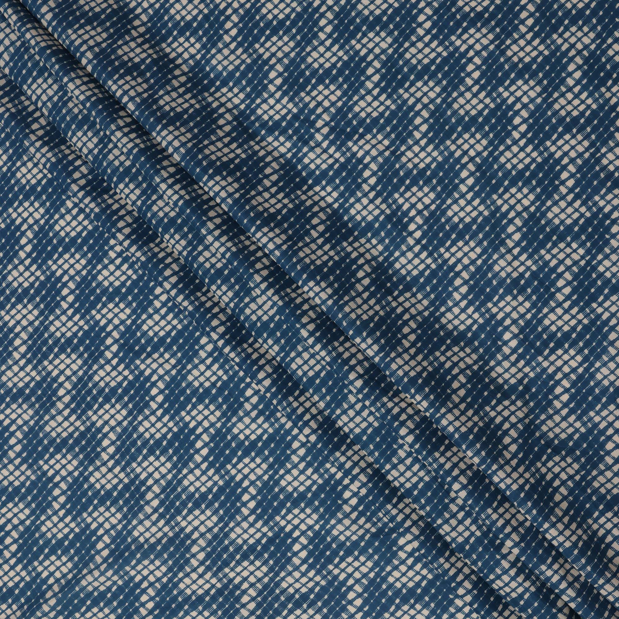 Indigo Blue Cotton Lawn Fabric with Abstract White Check Pattern Print, Width 110 Cms, Made in India-D23951