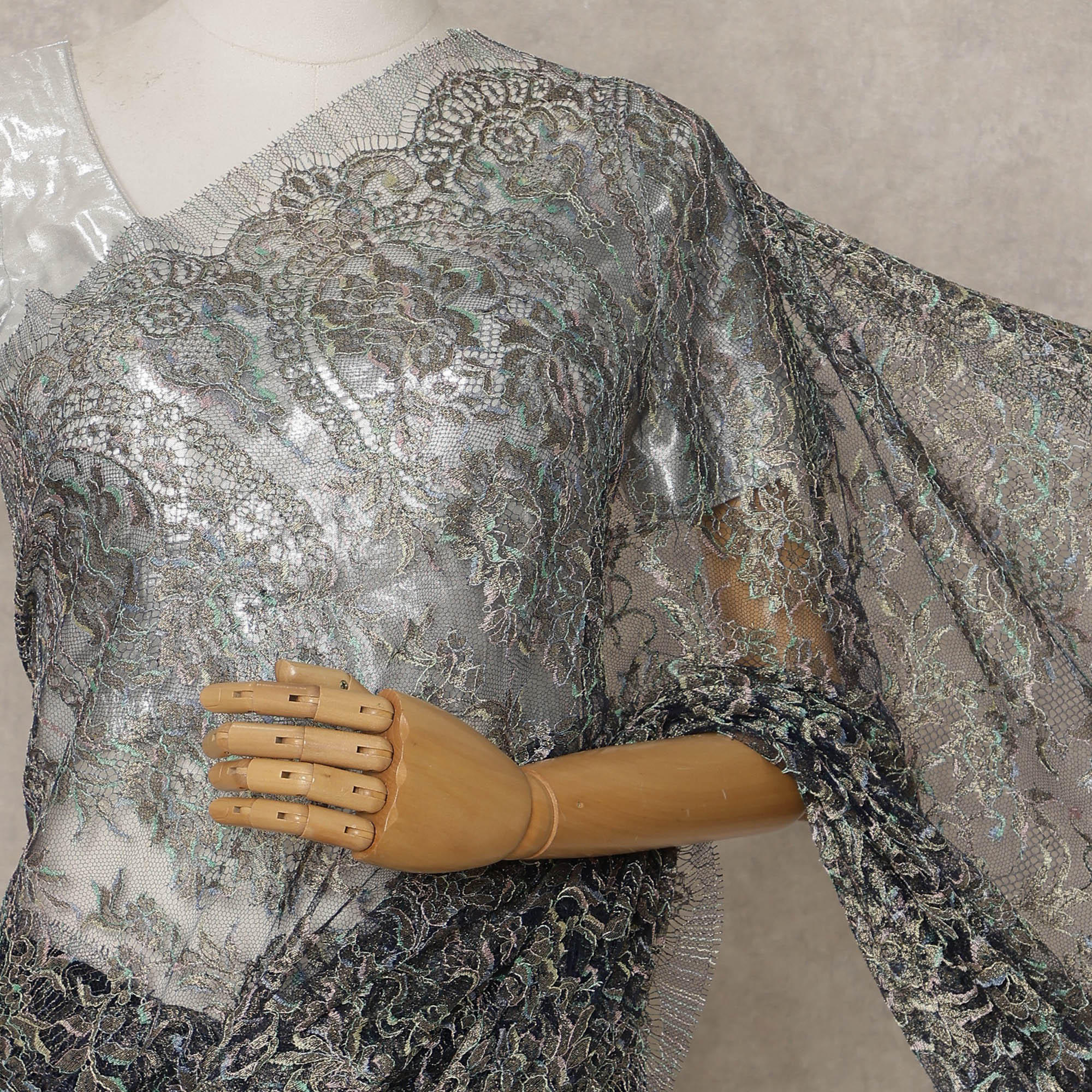 Premium French Metallic Chantilly lace with iridescent multitone detailing