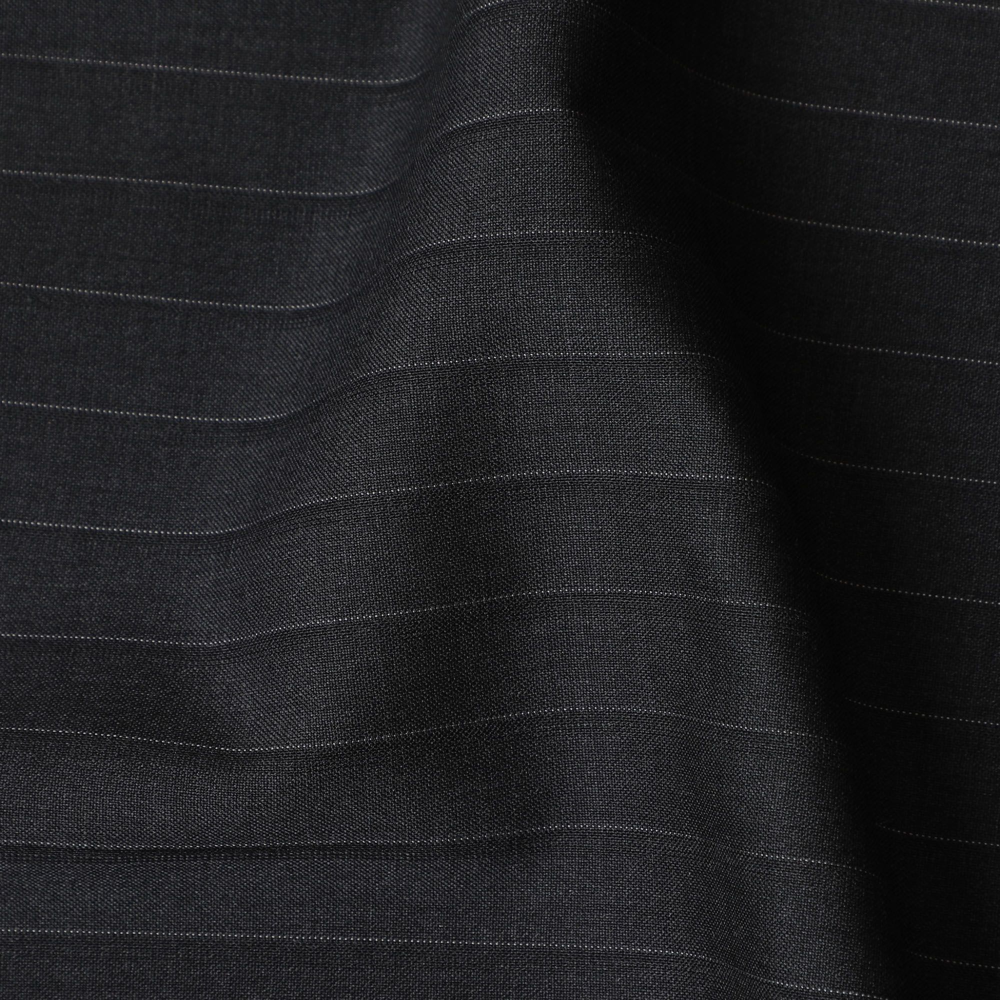 Elevate your wardrobe with our Italian Premium Striped Wool Suiting Fabric, each piece meticulously cut to 4 meters, ideal for creating a full suit. This fabric, crafted in Italy, showcases a classic charcoal color, accented with subtle stripes for a look of distinction and professionalism. The alternating stripe pattern brings a modern twist to the traditional suiting, offering a design that catches the eye while remaining elegantly understated. Made from the finest wool, it promises a soft hand-feel and a superb drape that conforms gracefully to bespoke tailoring. It is a versatile fabric that maintains its shape and offers breathable comfort, making it perfect for year-round use. This suiting fabric is not just a piece of cloth but a canvas for sartorial artistry, ready to be transformed into a garment that exudes confidence and style.