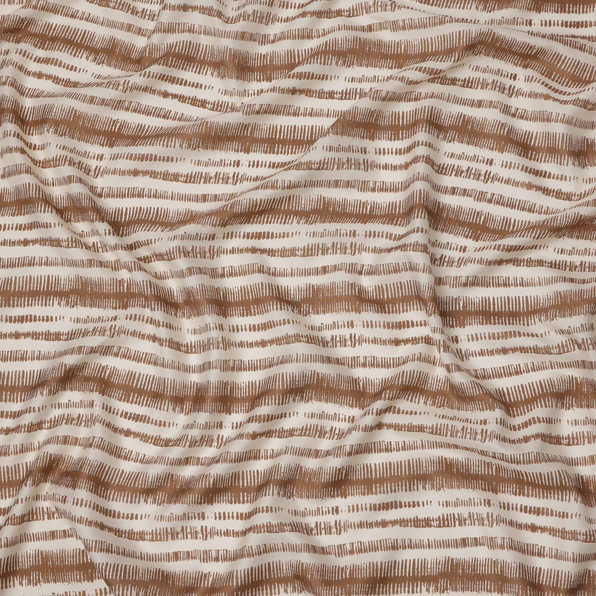 Ivory and Brown Abstract Stripe Print Viscose Crepe Fabric, 110 Cms Width, Made in India-D23591