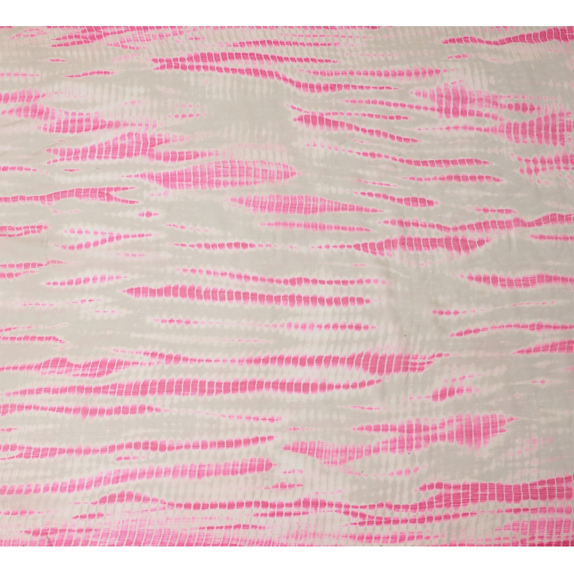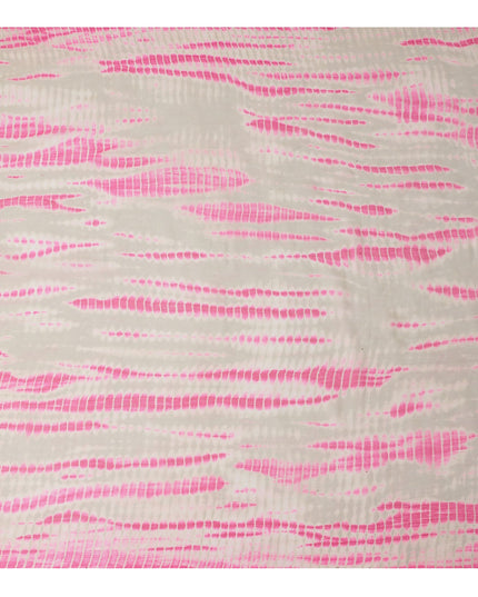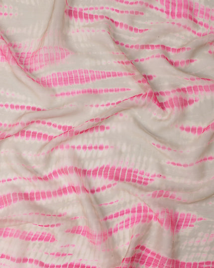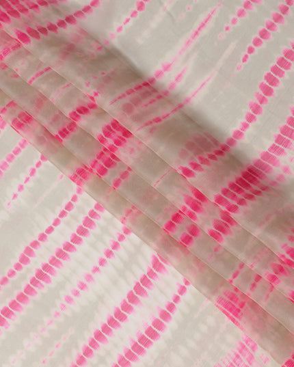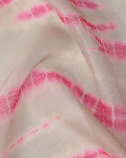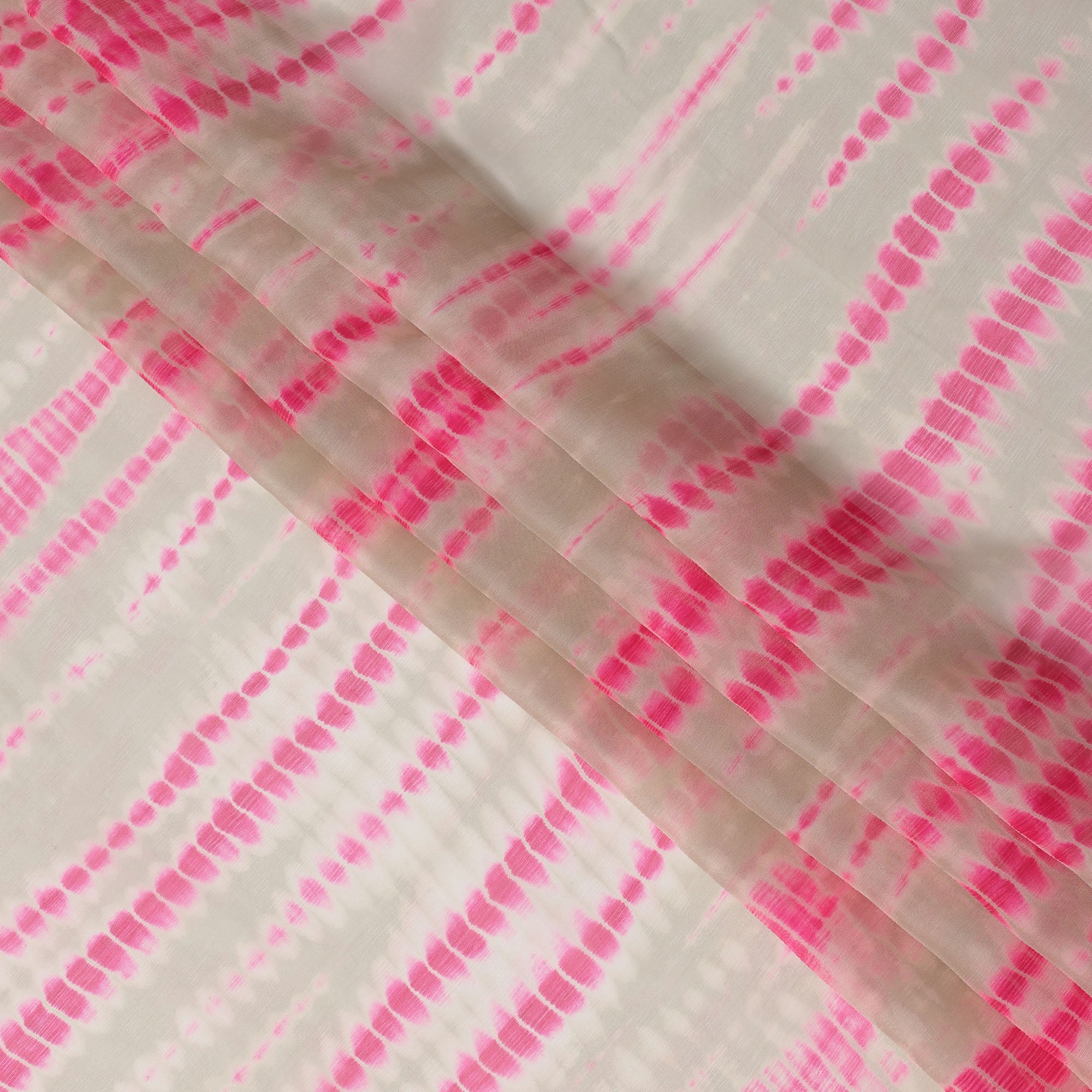 Ivory and Hot Pink Shibori Stripe Pure Silk Chiffon Fabric with Satin Finish, 110 cm Width, Made in India-D23035