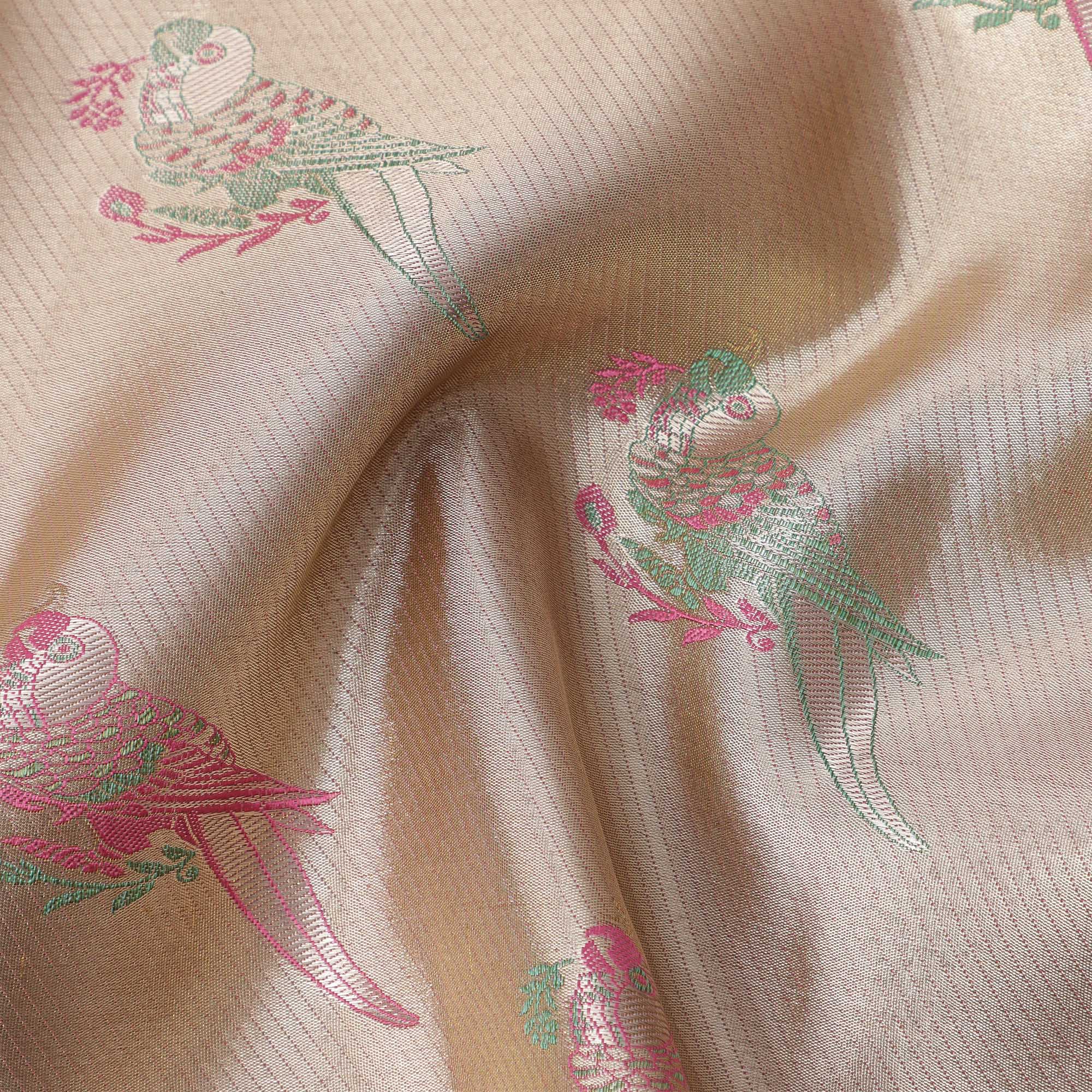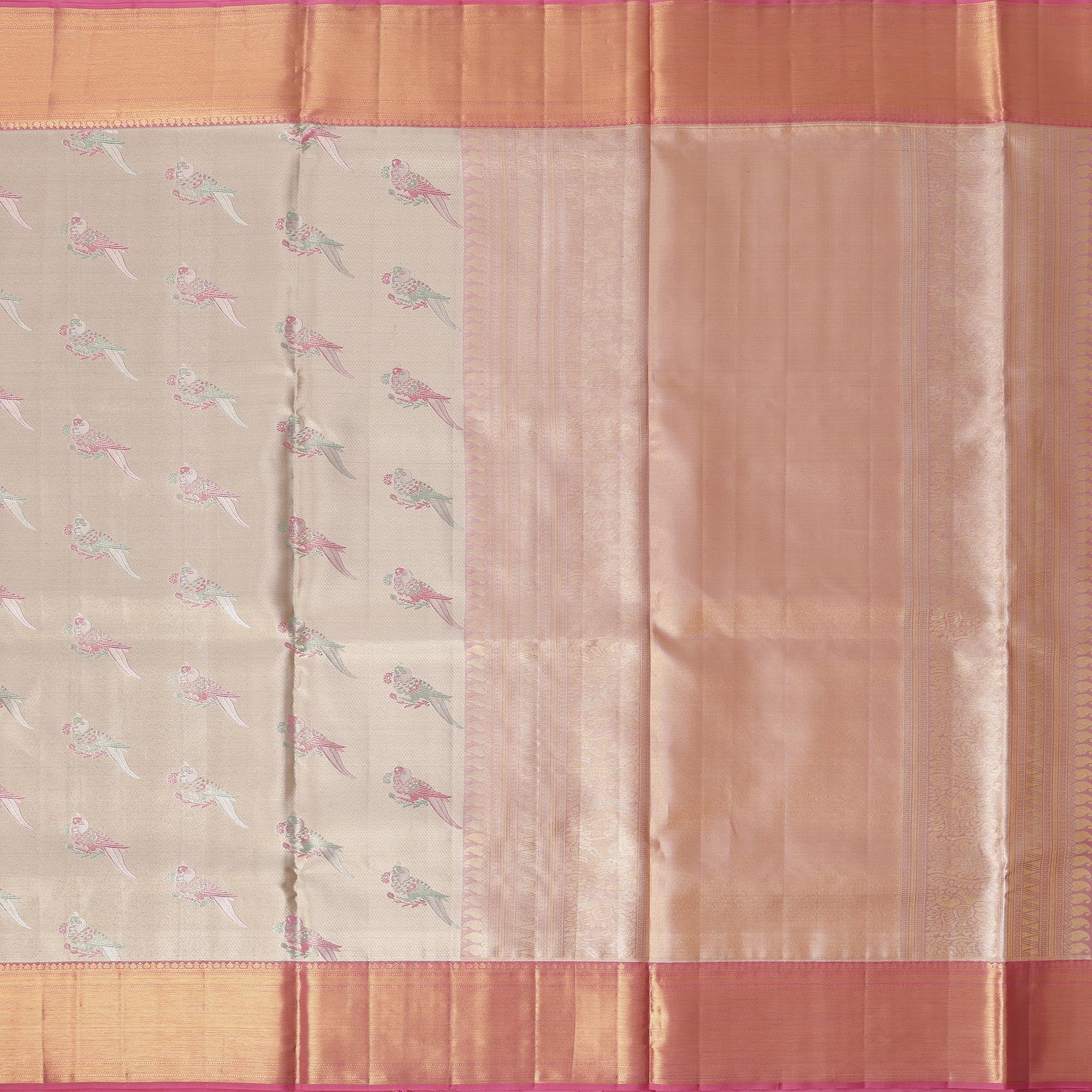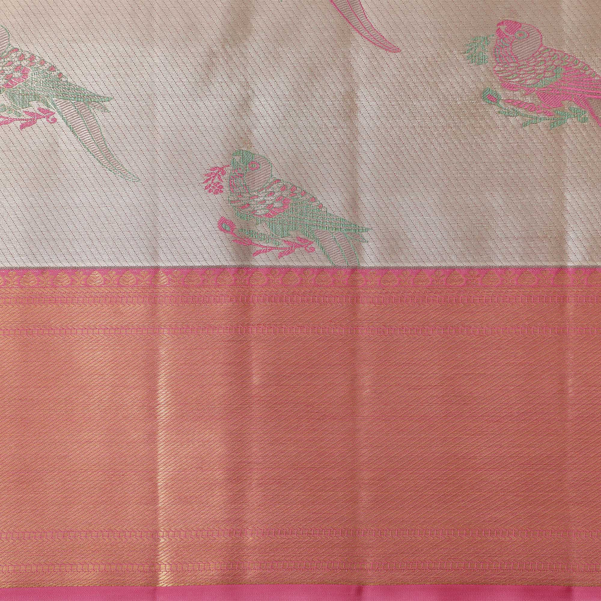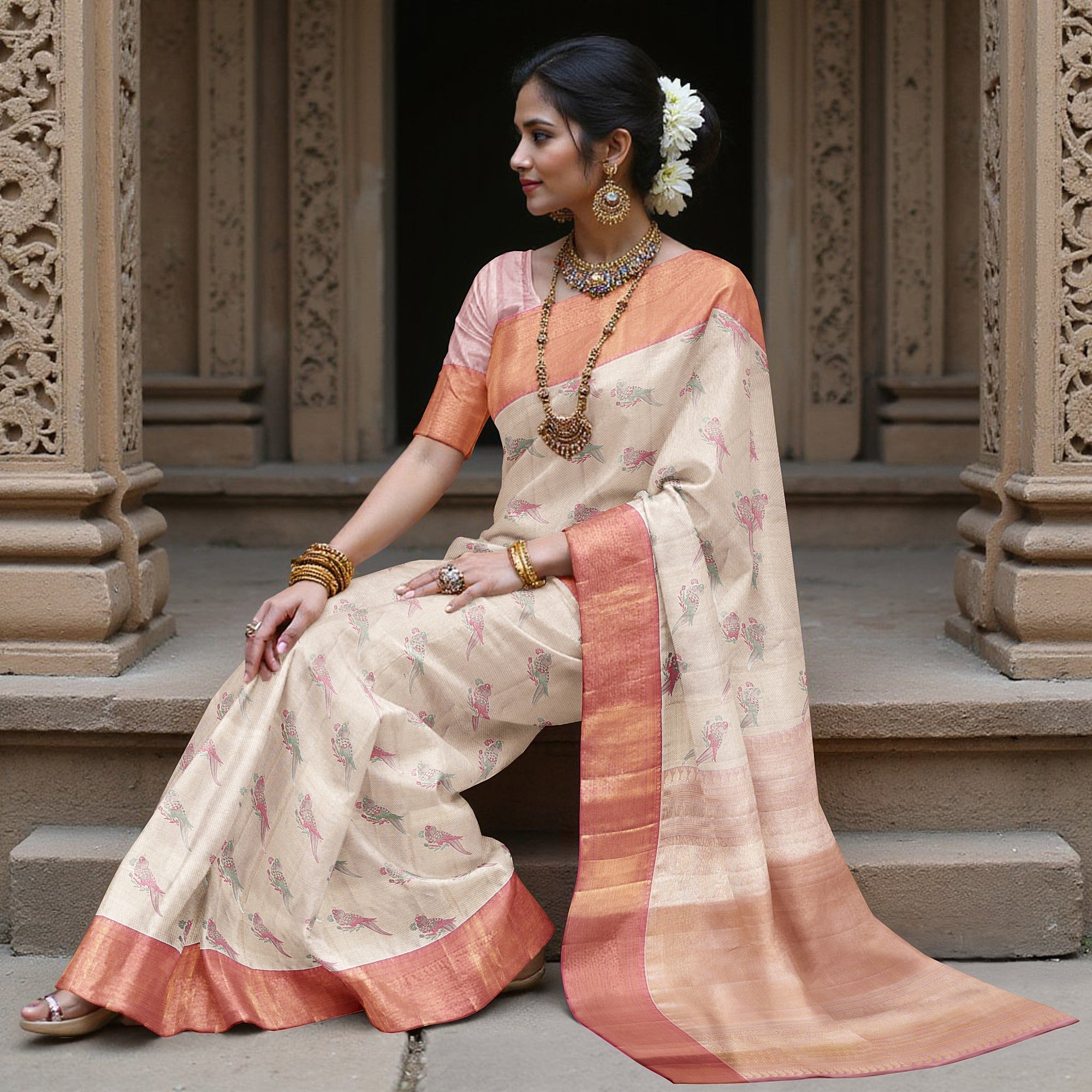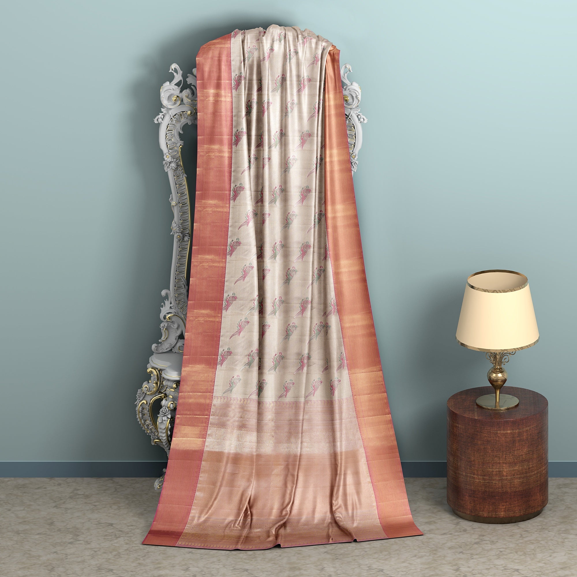 Ivory and Peach Pure Tissue Silk Kanjeevaram Saree with Delicate Handwoven Floral Motifs, 5.5 Meters with Blouse Piece, Originating from India-D22671